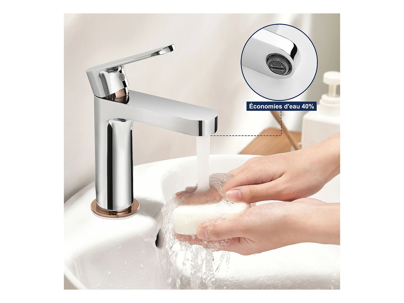 Kraan SaModerne badkamer, AuraLum Max wastafelmengkraan met roségouden afwerking, messing wastafelkraan met vervangende bubbelaar, verchroomd, EU model