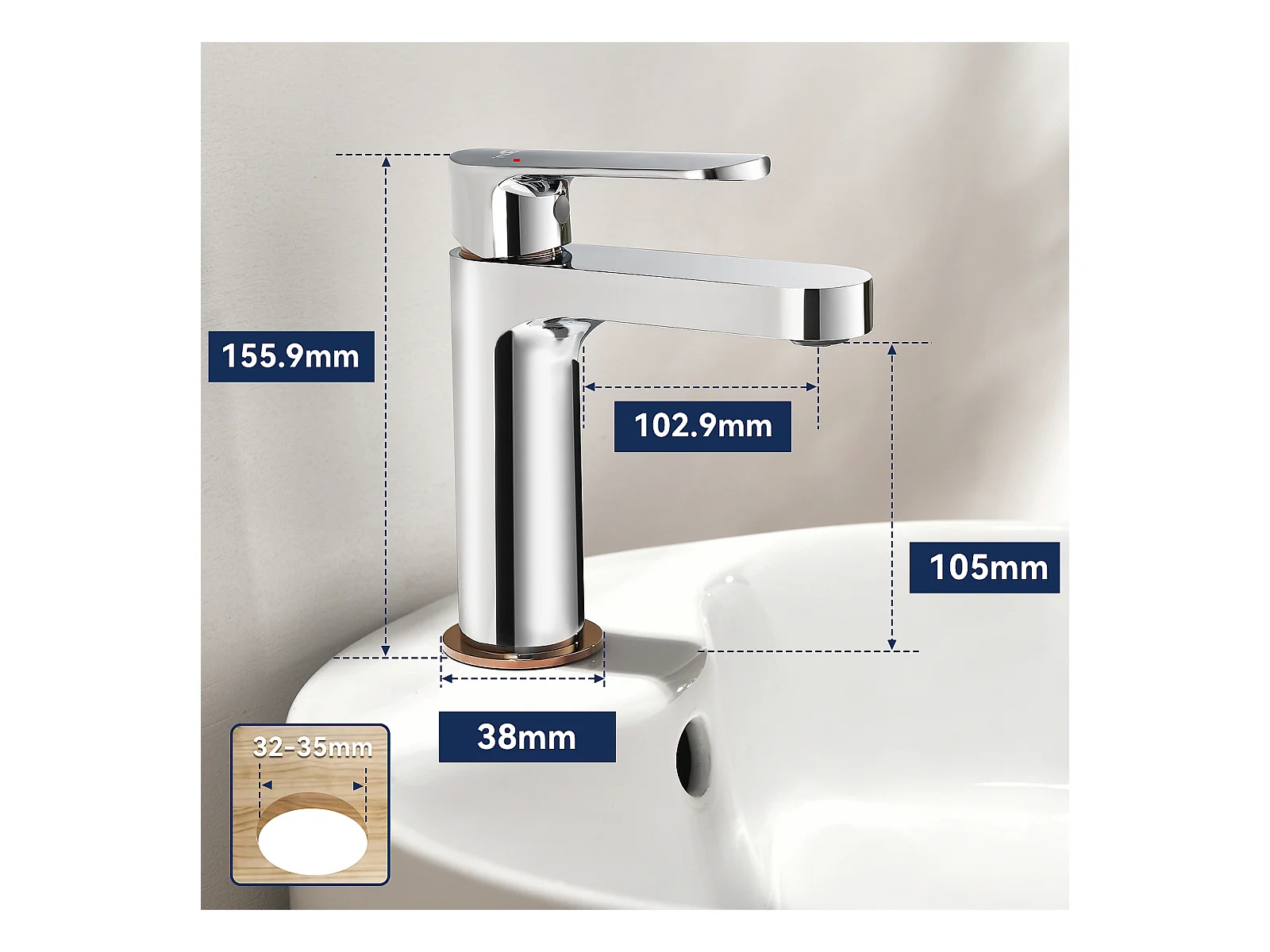 AuraLum Max Moderne Badkamerkraan, Stijlvolle Wastafelkraan, Messing Mengkraan, Warm/Koud Water Beschikbaar, Verchroomde Kranen, EU Model