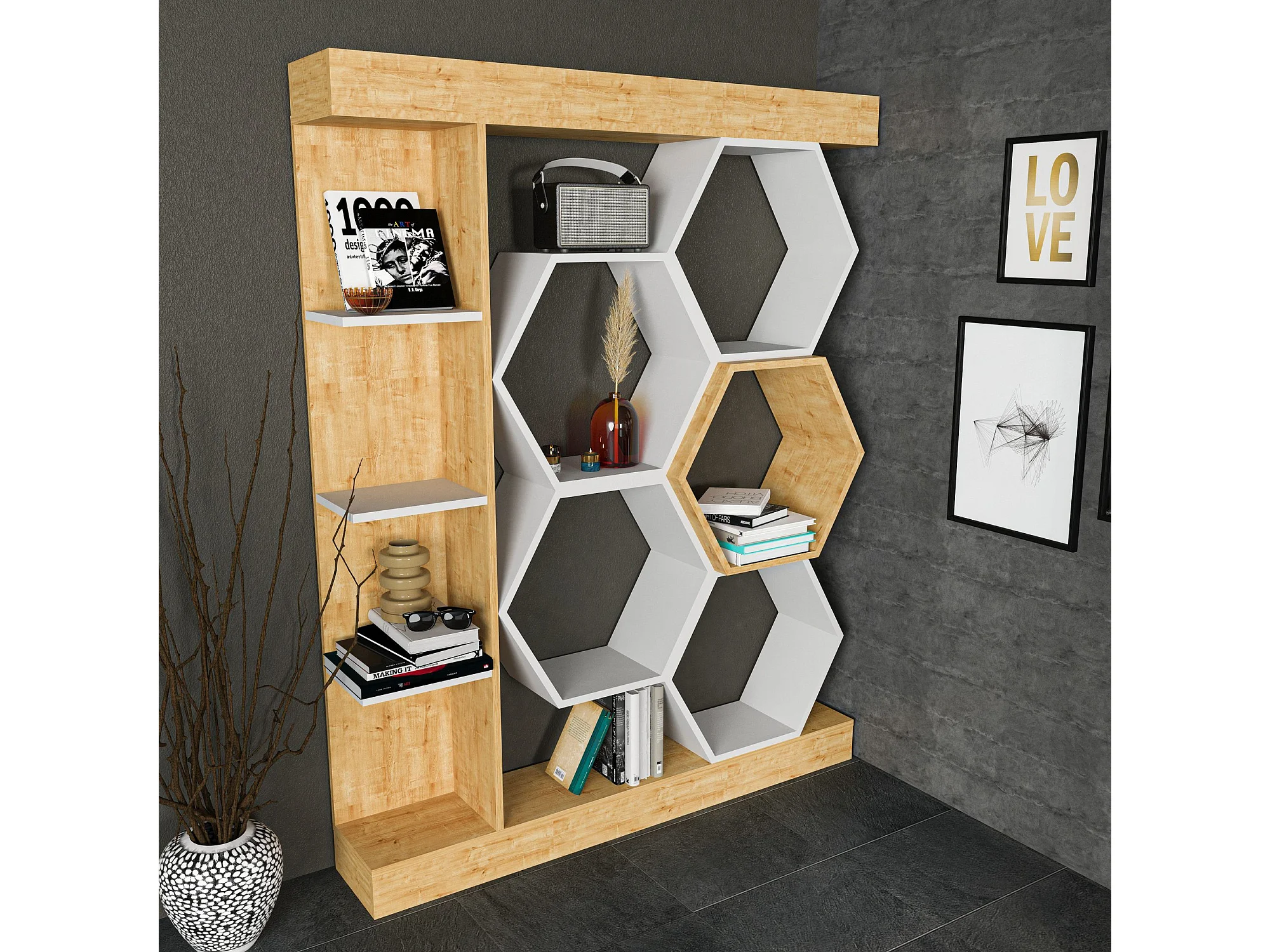 Moderne boekenkast – 124,6 x 170 x 24,2 cm – Notenhout en wit – melamine gecoate spaanplaat