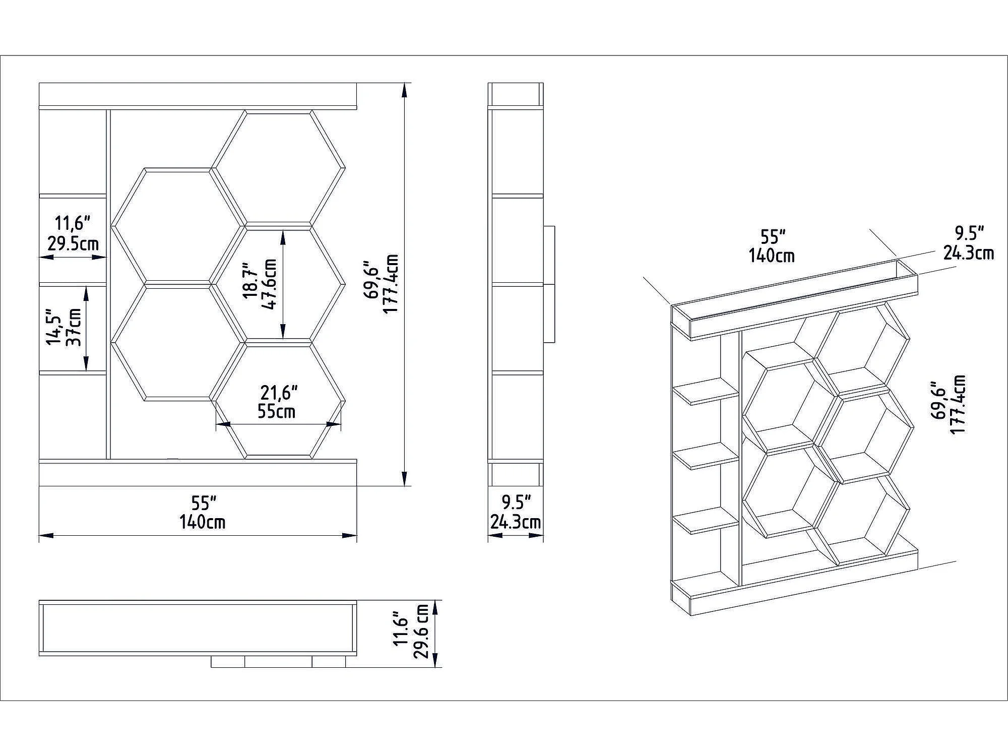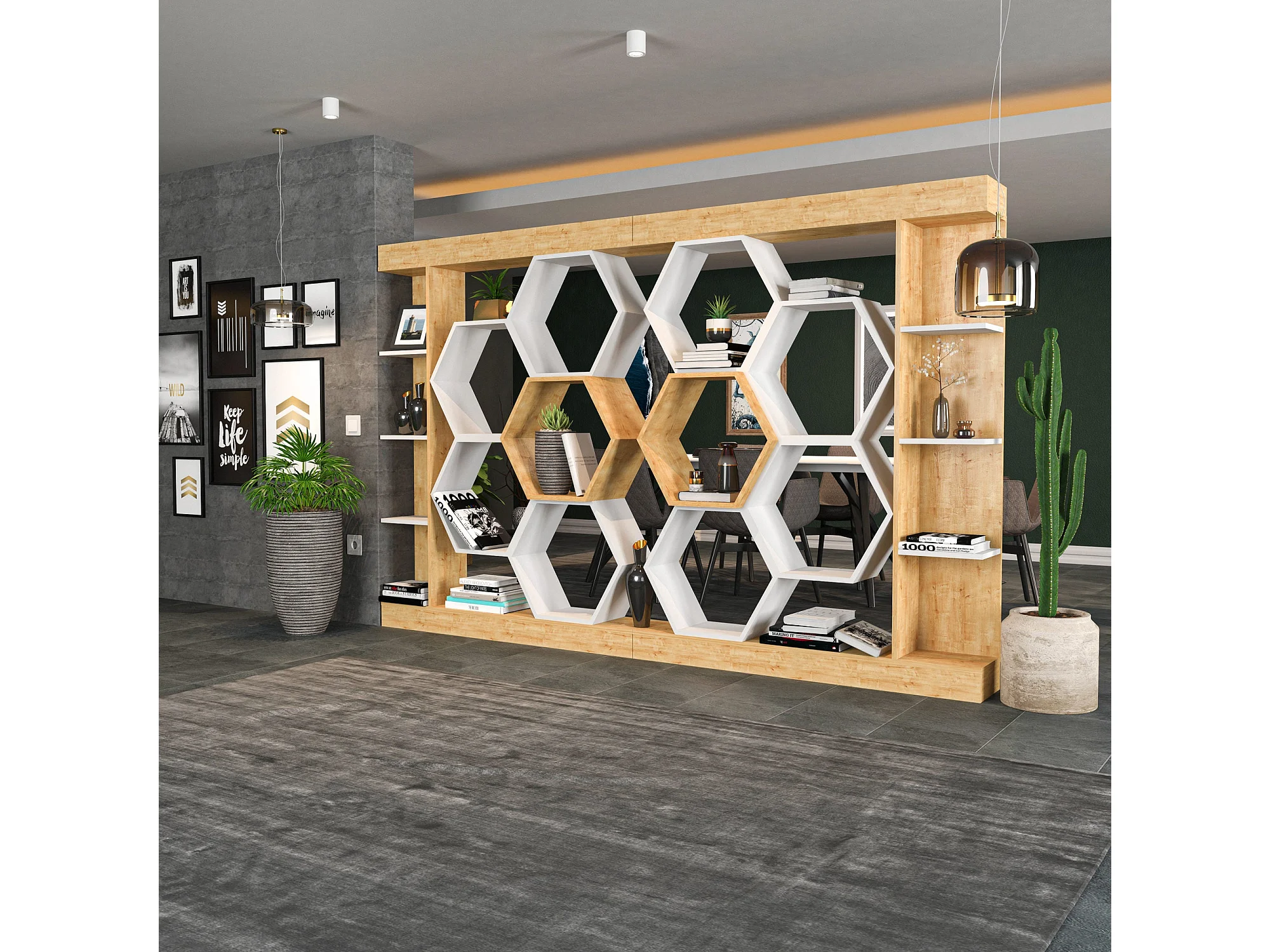 Moderne boekenkast in wit en eikenhout, 140 x 29,6 x 177,4 cm | 100% melamine spaanplaat, 18 mm dik | Stijlvolle opbergruimte voor thuis en
