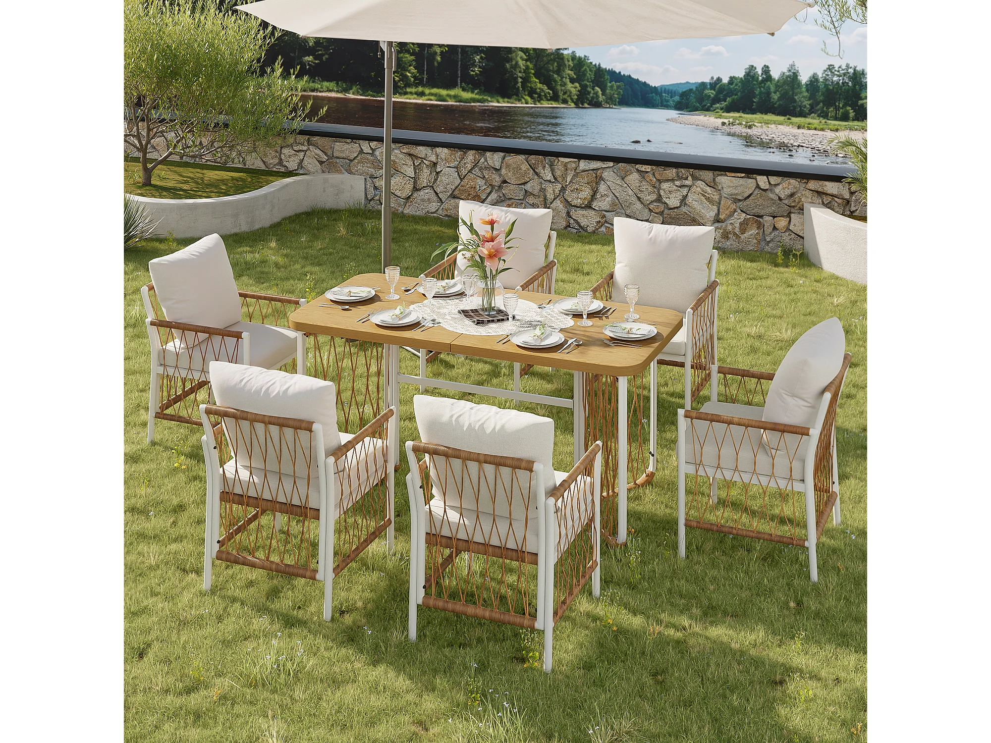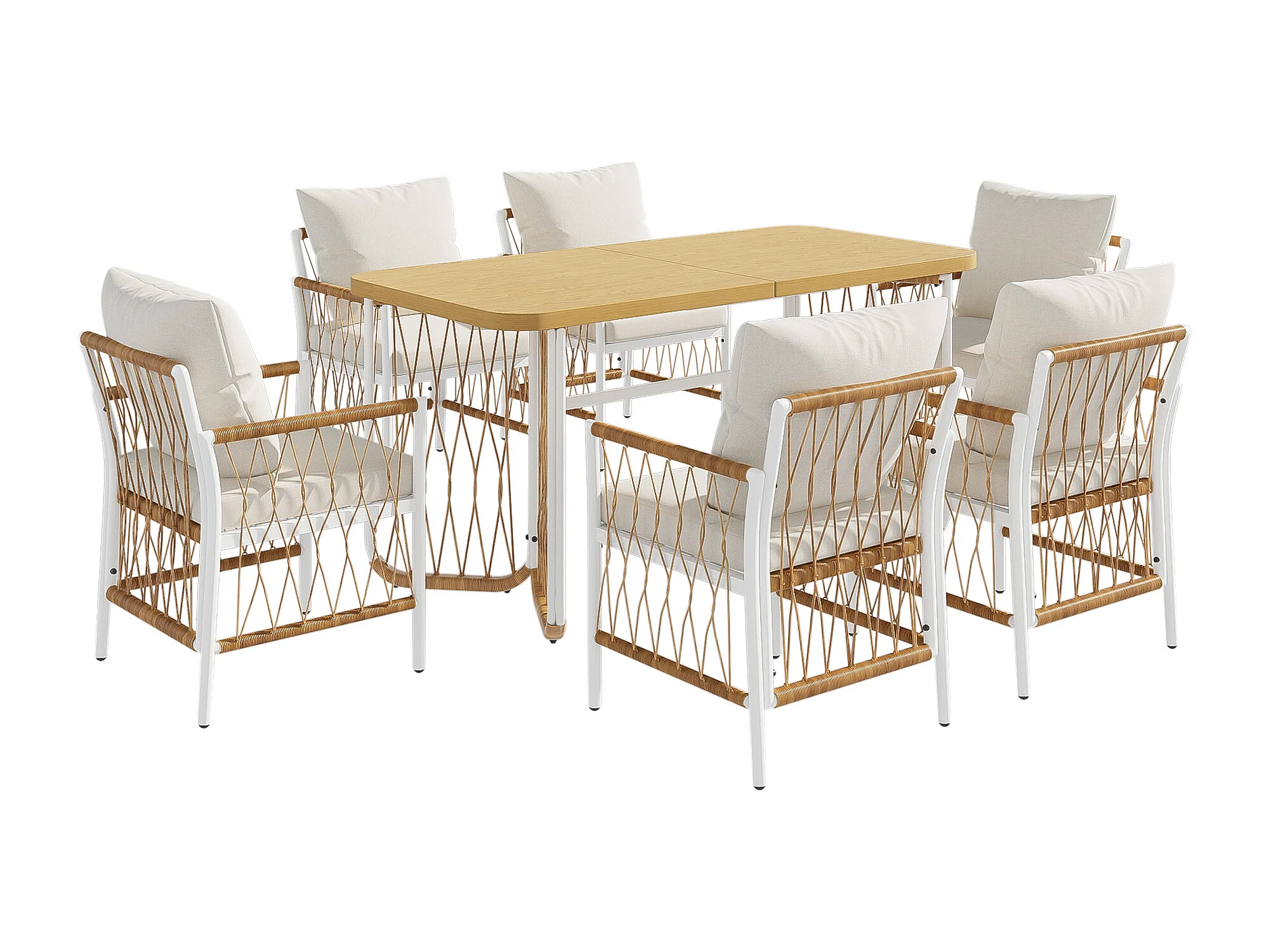 Moderne buitenloungeset, stalen frame, gevlochten armleuningen, inclusief kussens, beige