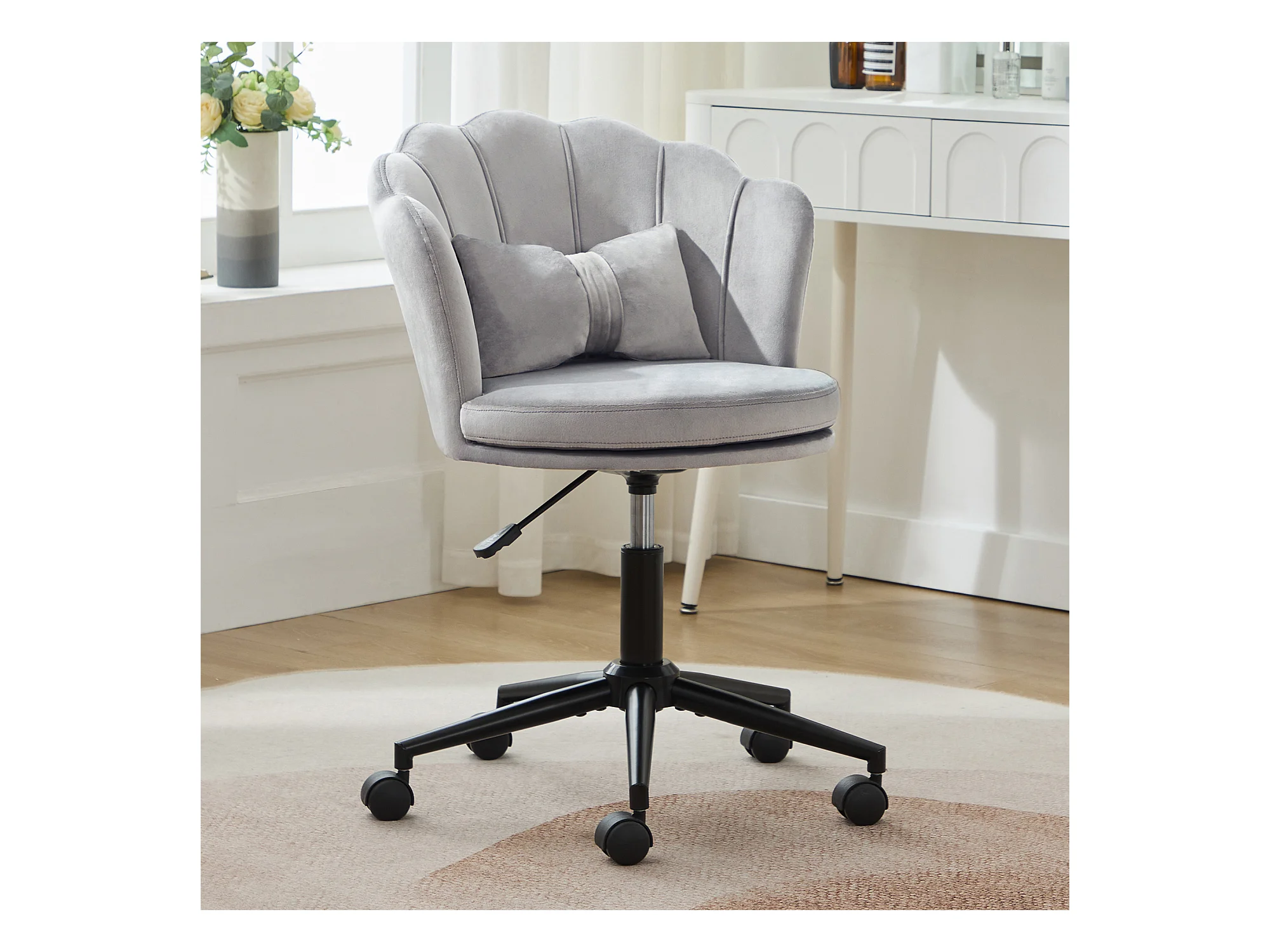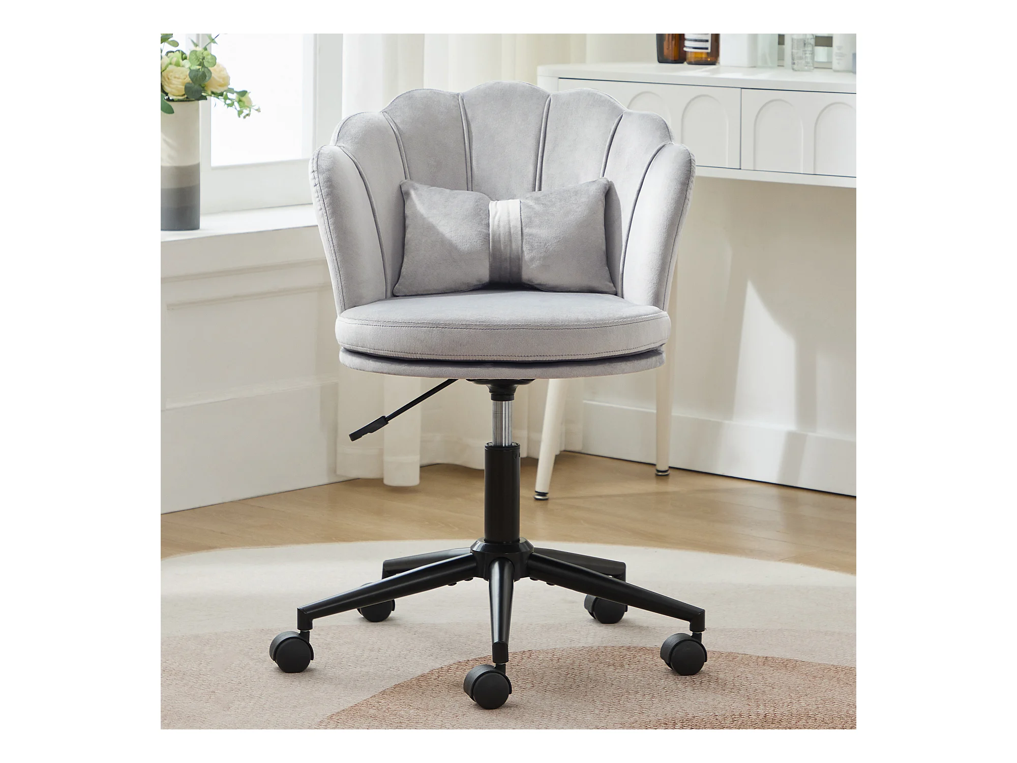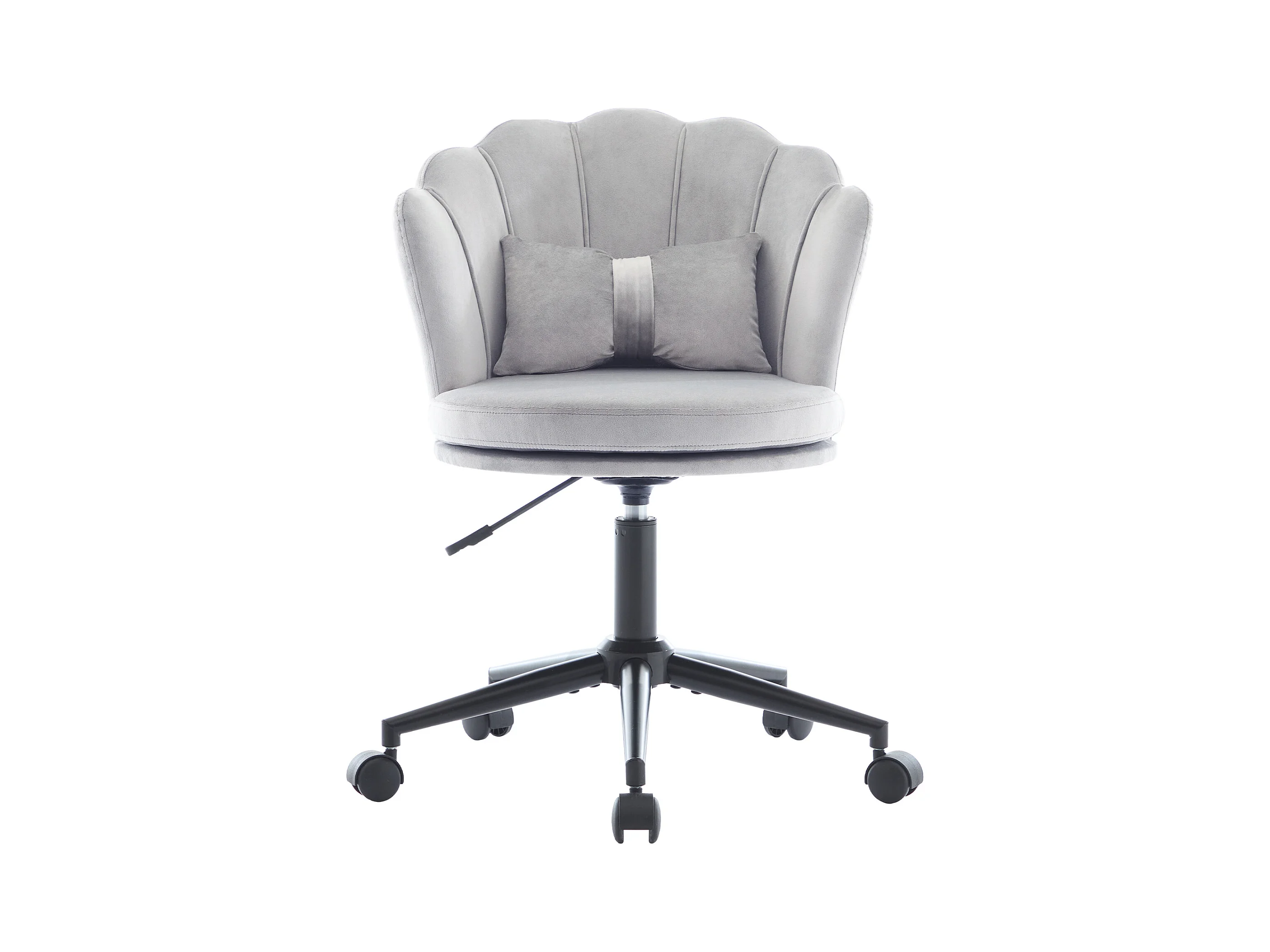 Moderne bureaustoel, elegant design, rugleuning in bloemblaadjesvorm, vlindervormig lendenkussen, in hoogte verstelbaar, grijs (55x62x73-83 cm)
