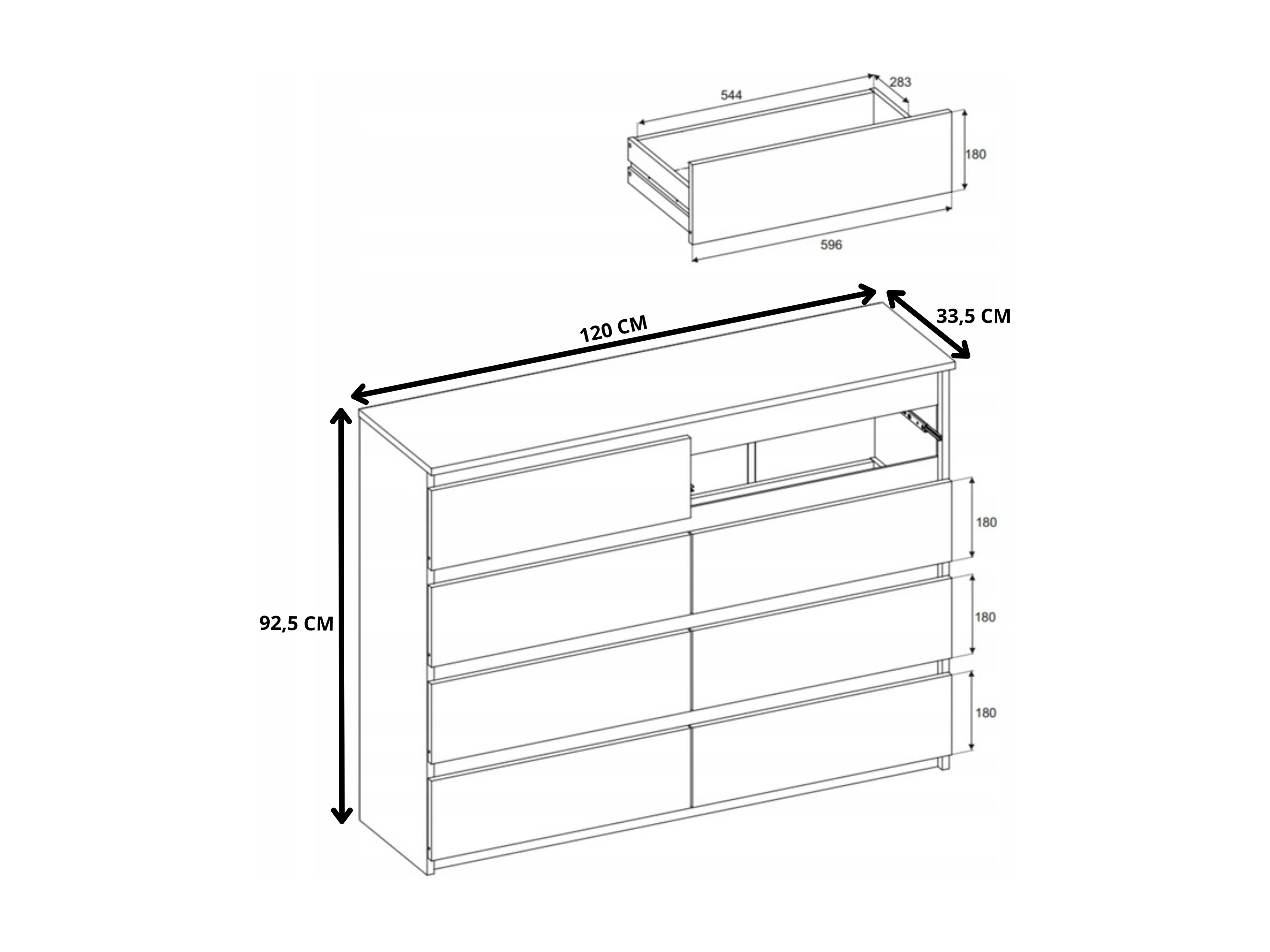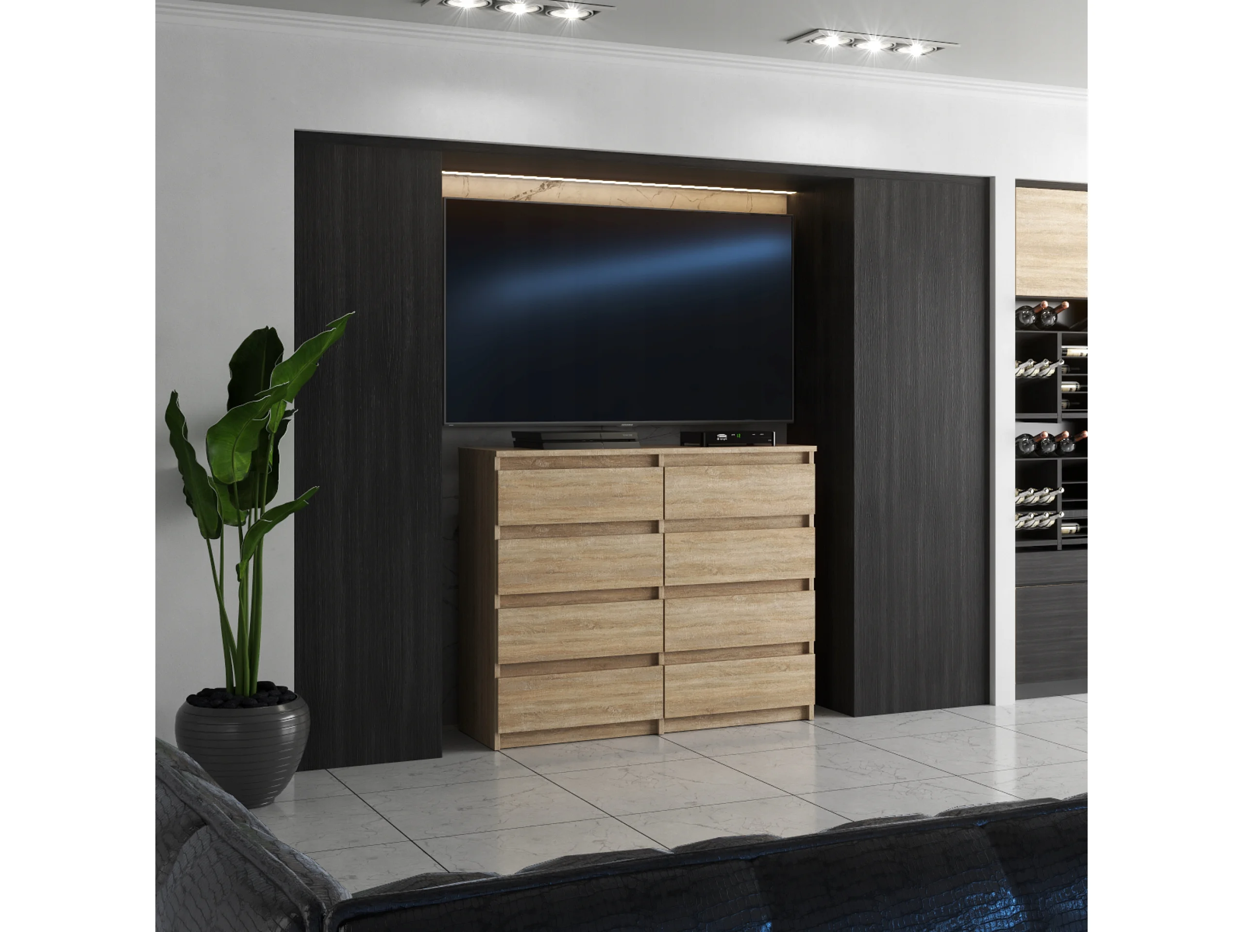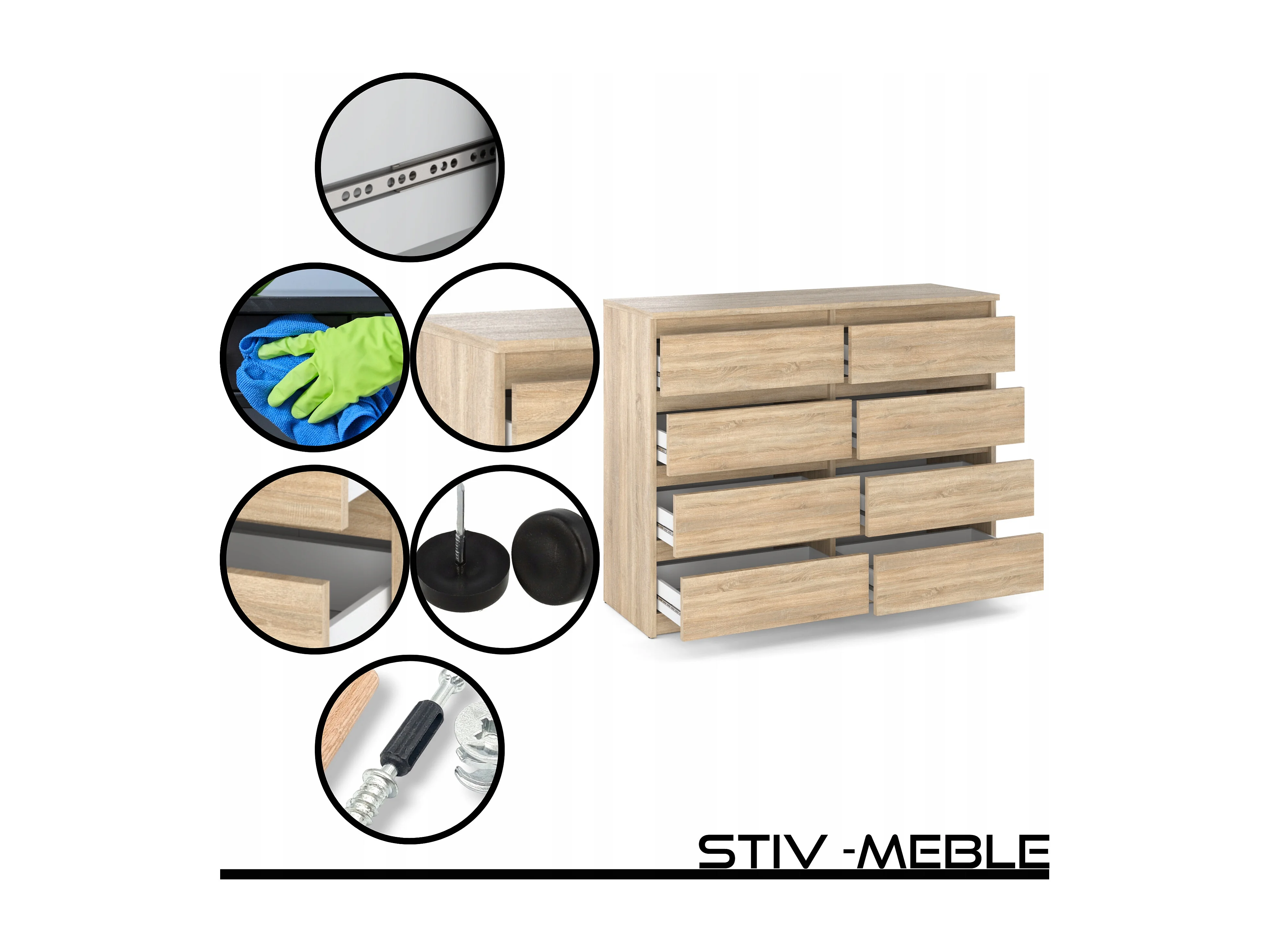 Moderne commode van 120 cm in Sonoma eiken met 8 lades – Groot opbergmeubel voor de woonkamer