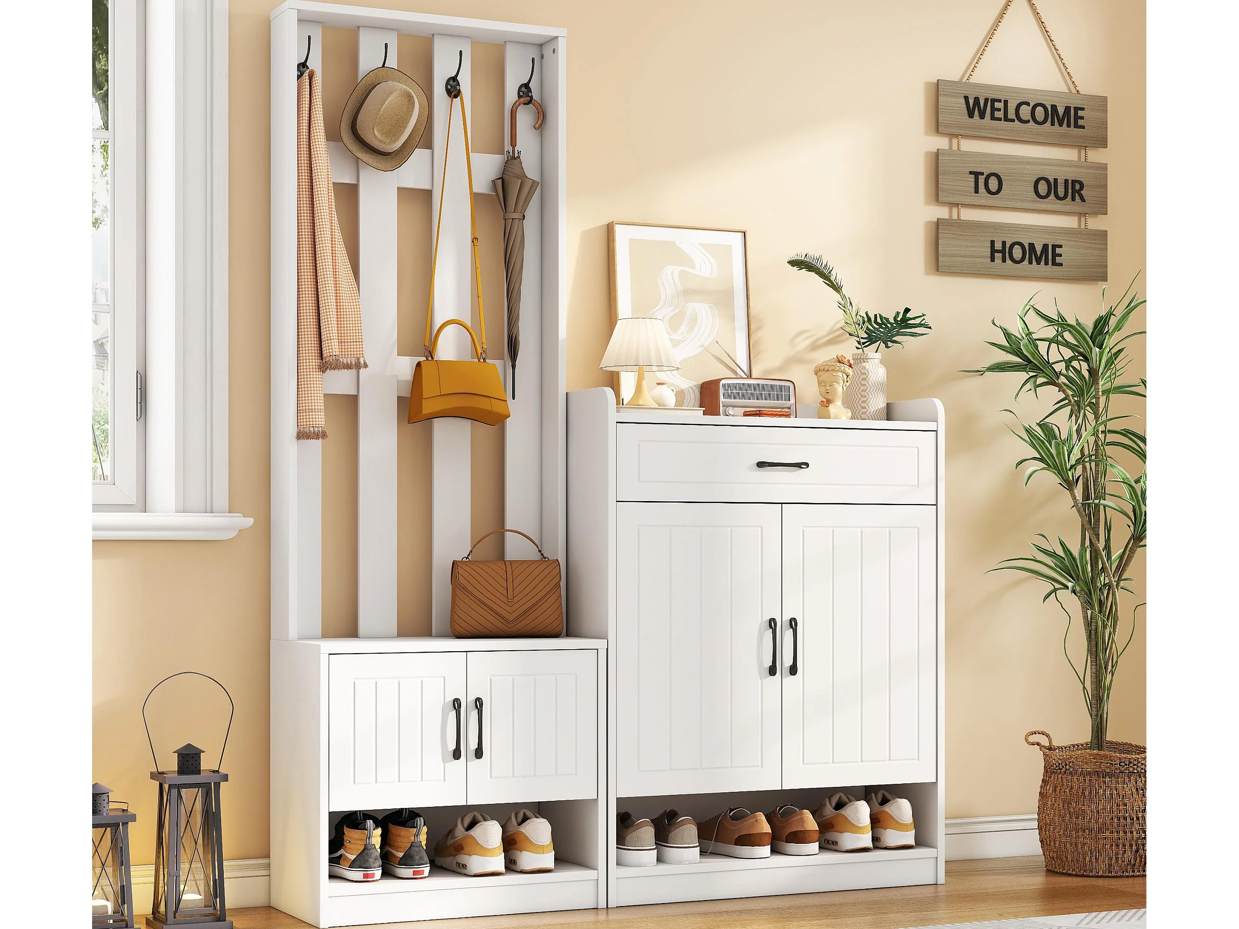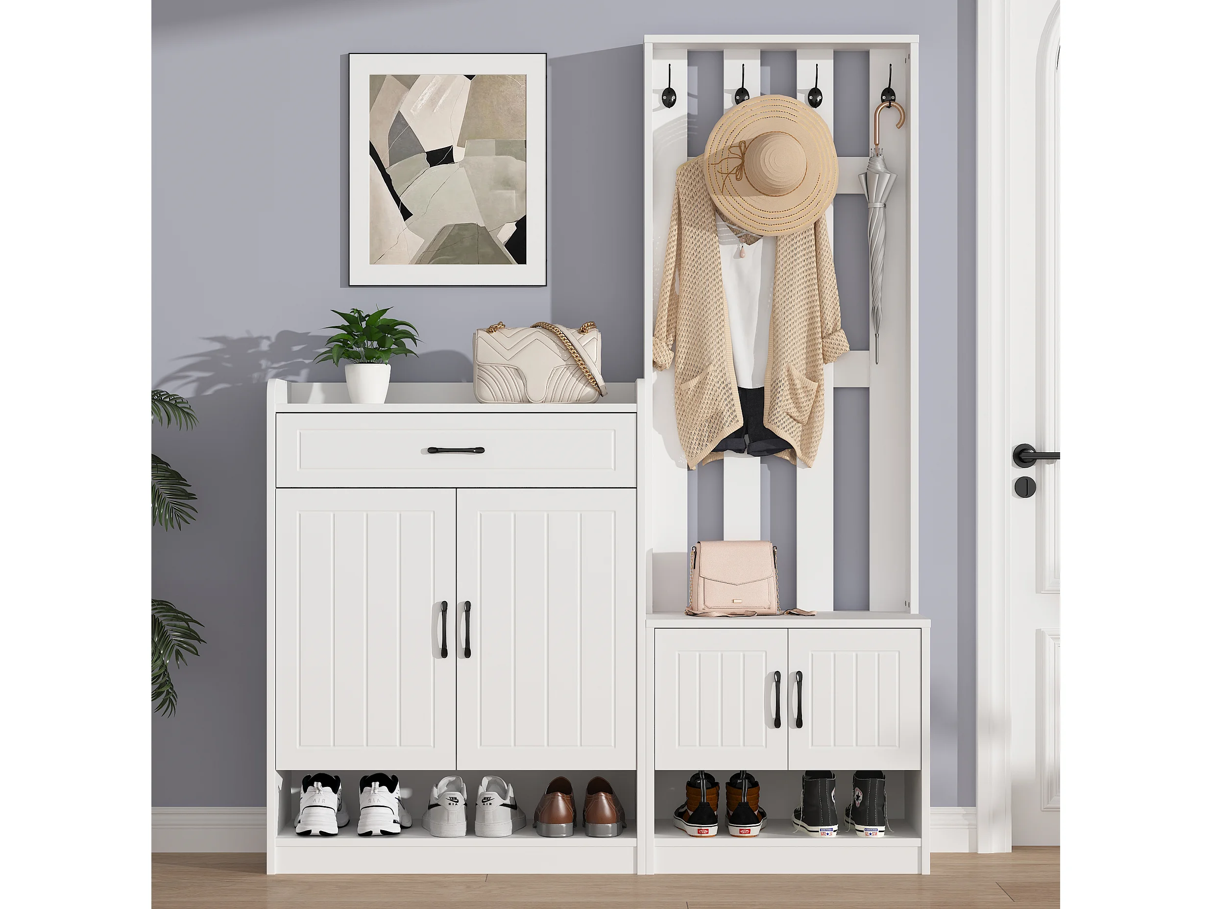 Moderne garderobe - met kapstok en schoenenkasten - met haken en lade - Wit