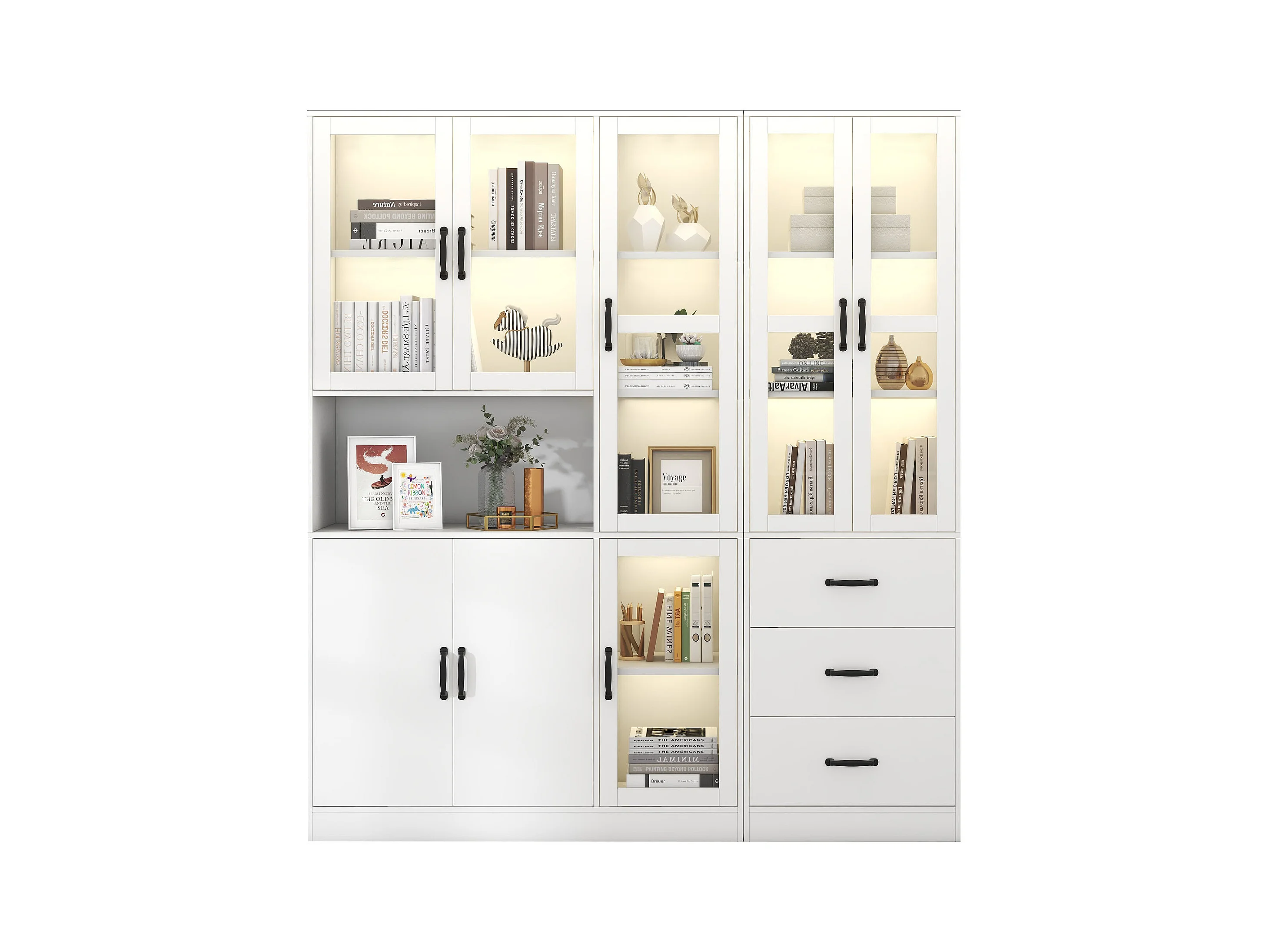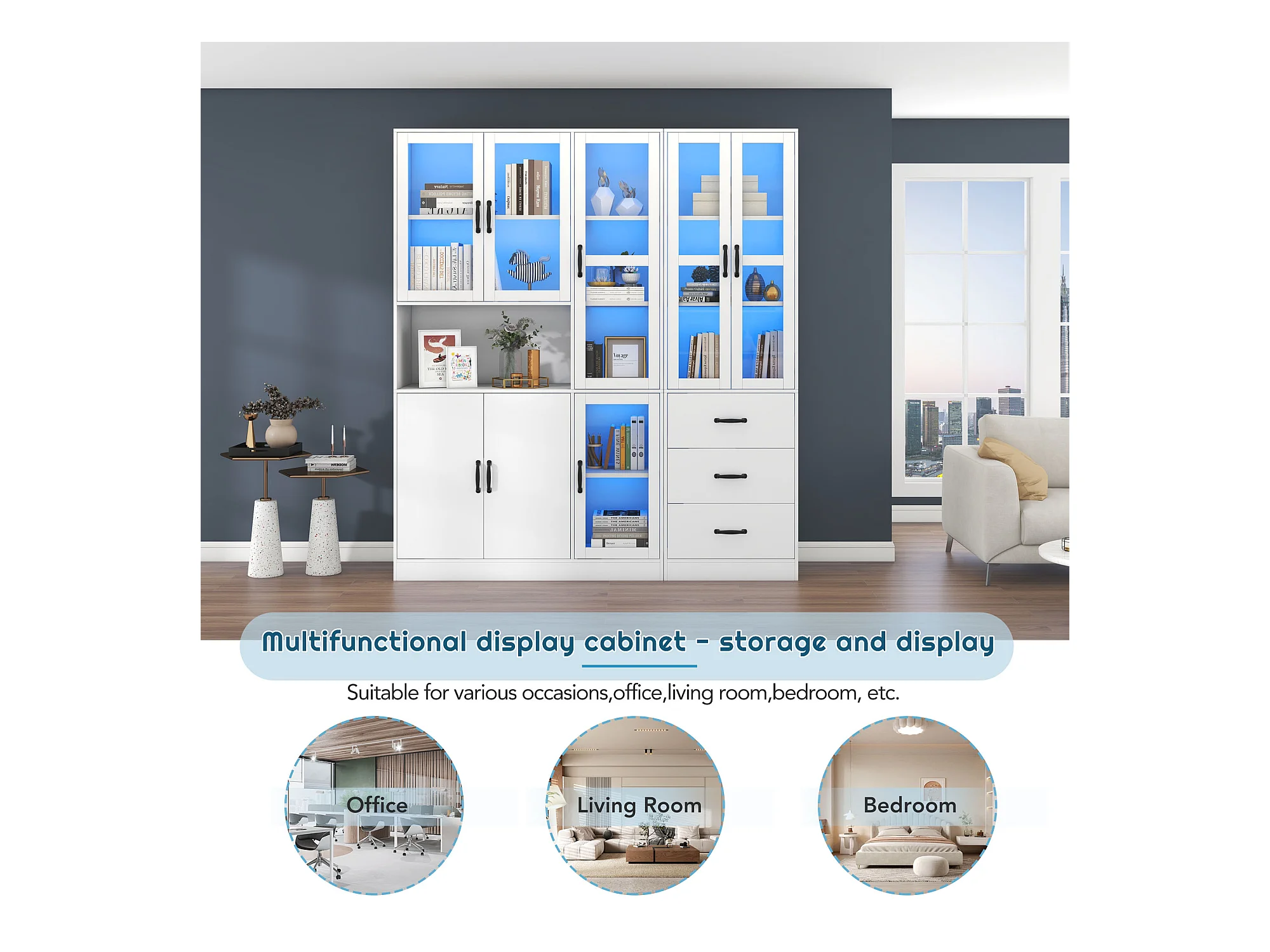 Moderne gecombineerde vitrinekast met 8 deuren en 3 laden - LED's - MDF hout - wit gelakt - 180 x 40 x 200 cm