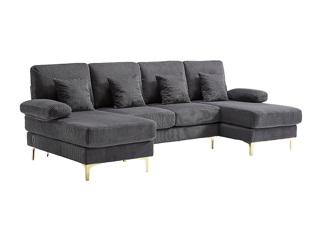 Moderne hoekbank met ledverlichting USB-C-poort massief houten frame 4 kussens ergonomische rugleuning maximaal comfort grijs