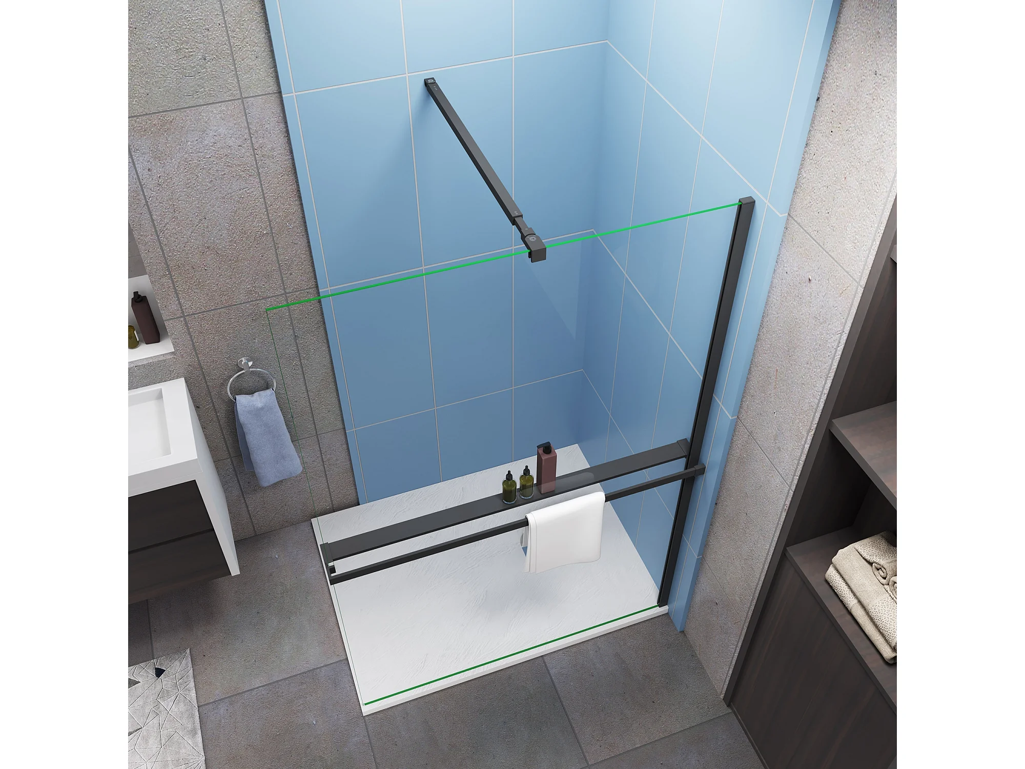 Moderne inloopdouche 120x200cm-8mm easy clean glas met planchet-Stabilisatiestangen 73–120cm-Mat zwart