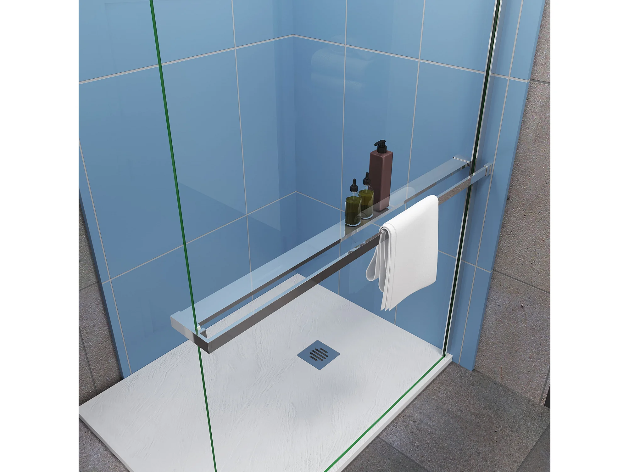 Moderne inloopdouche 140x200cm-8mm easy clean glas met planchet-F-stabilisatiestang 140cm-Snijbaar-glanzend chromen