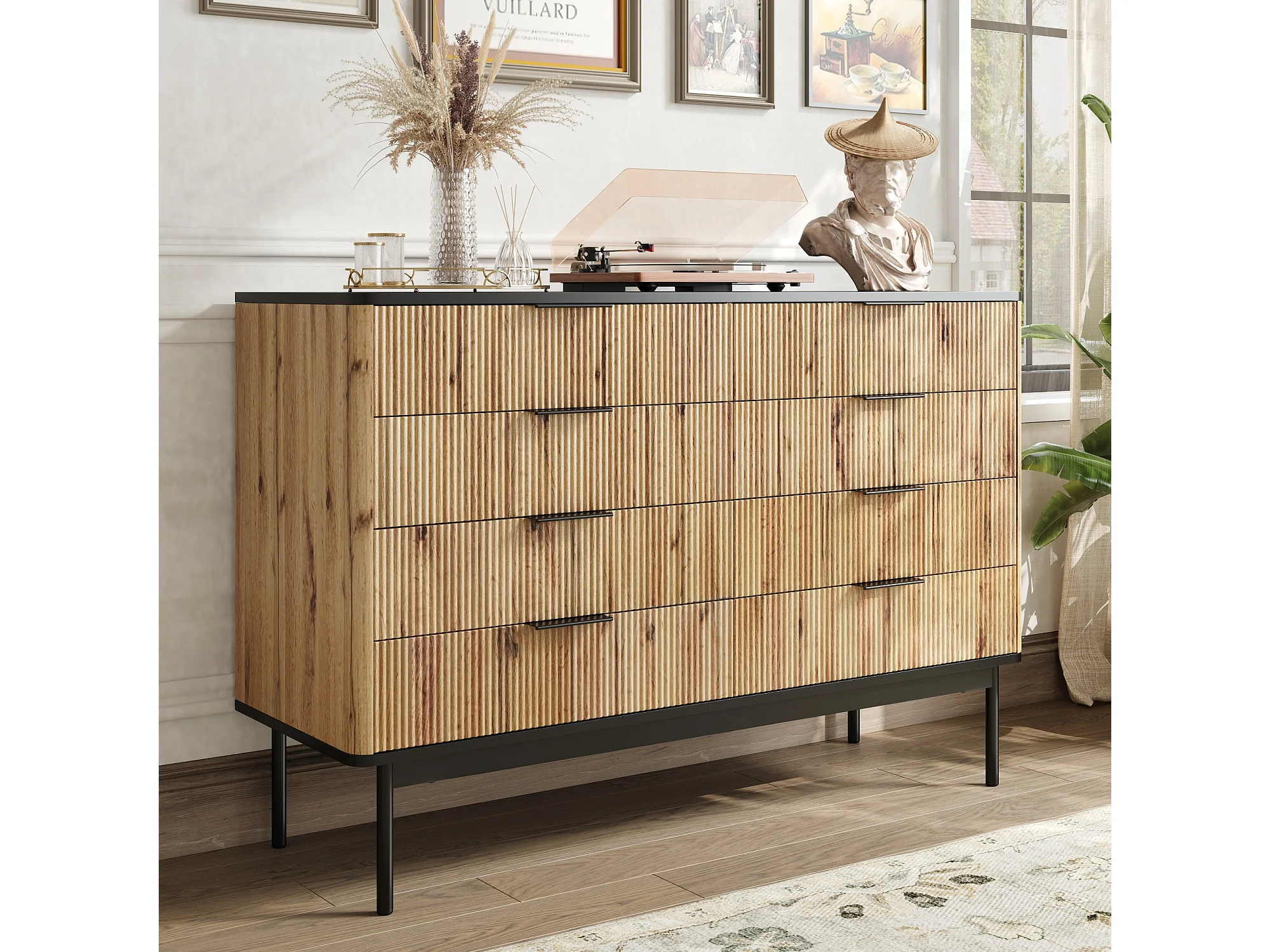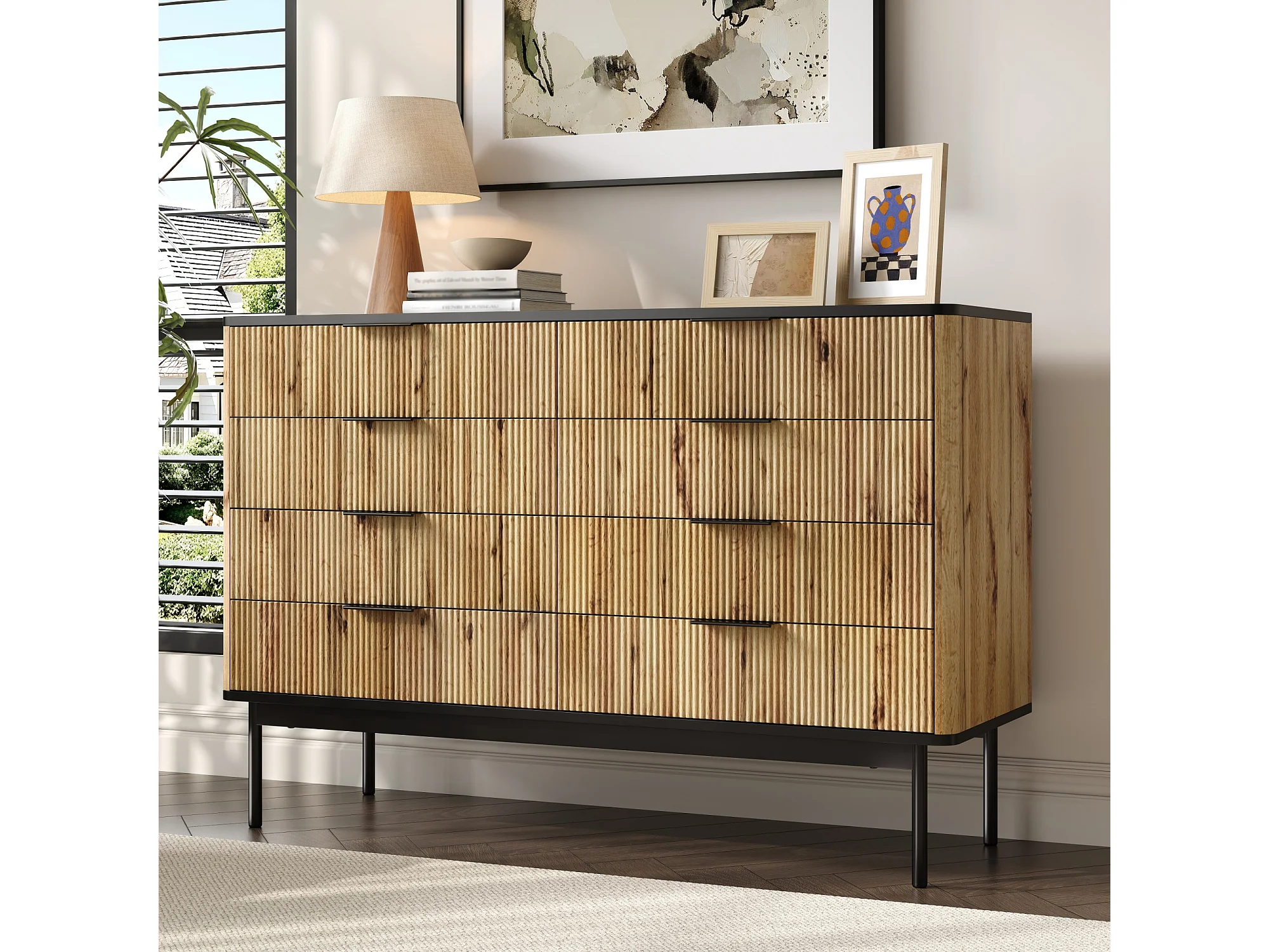 Moderne ladekast met 8 laden - 120 x 39,5 x 80 cm - voor woonkamer/eetkamer/hal - MDF - zwart + naturel