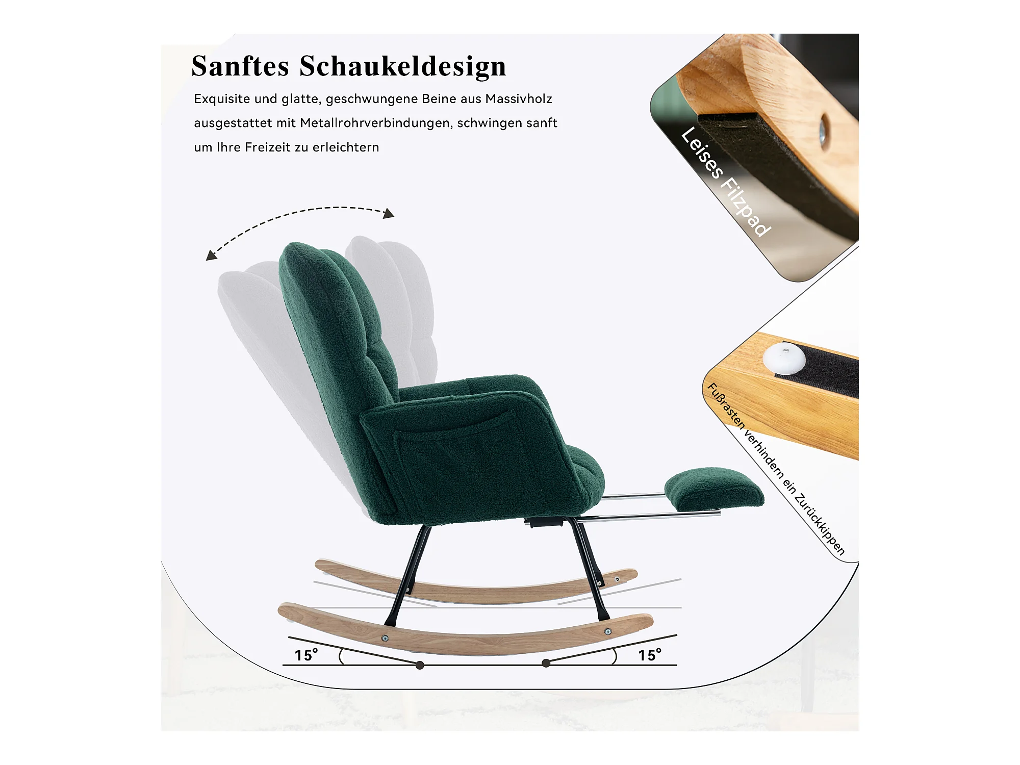 Schommelstoel met voetenbankje Donkergroen Fluweel