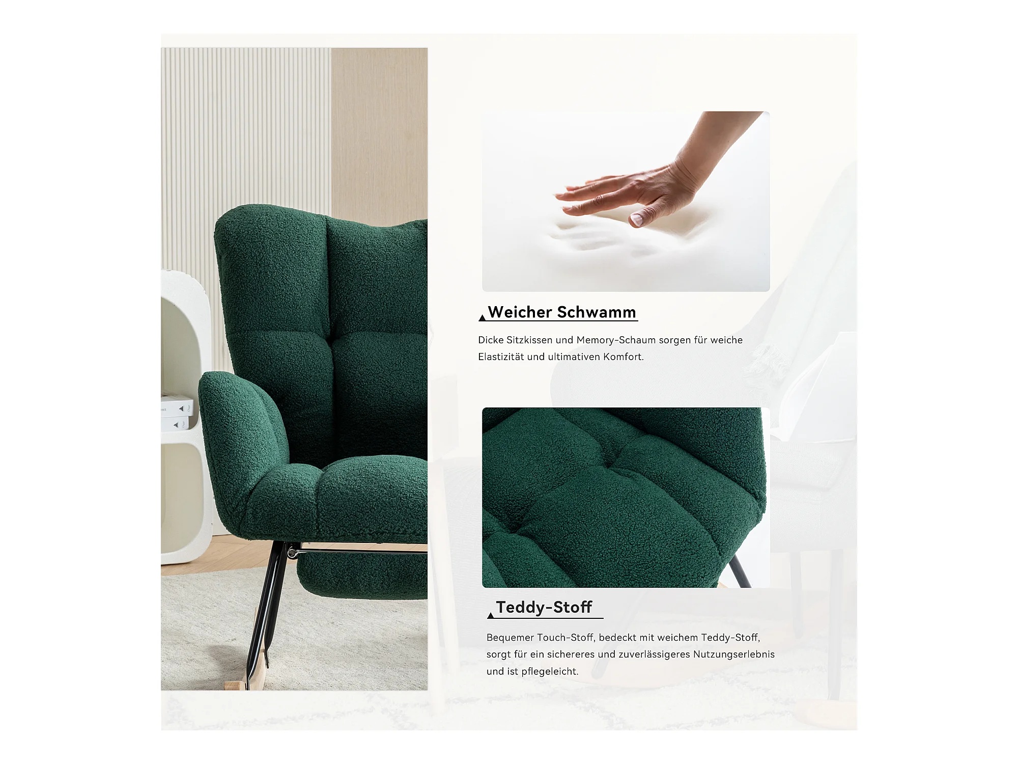 Moderne schommelstoel in pluche stof, met vleugelrug, met armleuningen, gestoffeerd, donkergrijs (96,5 x 71 x 101 cm)