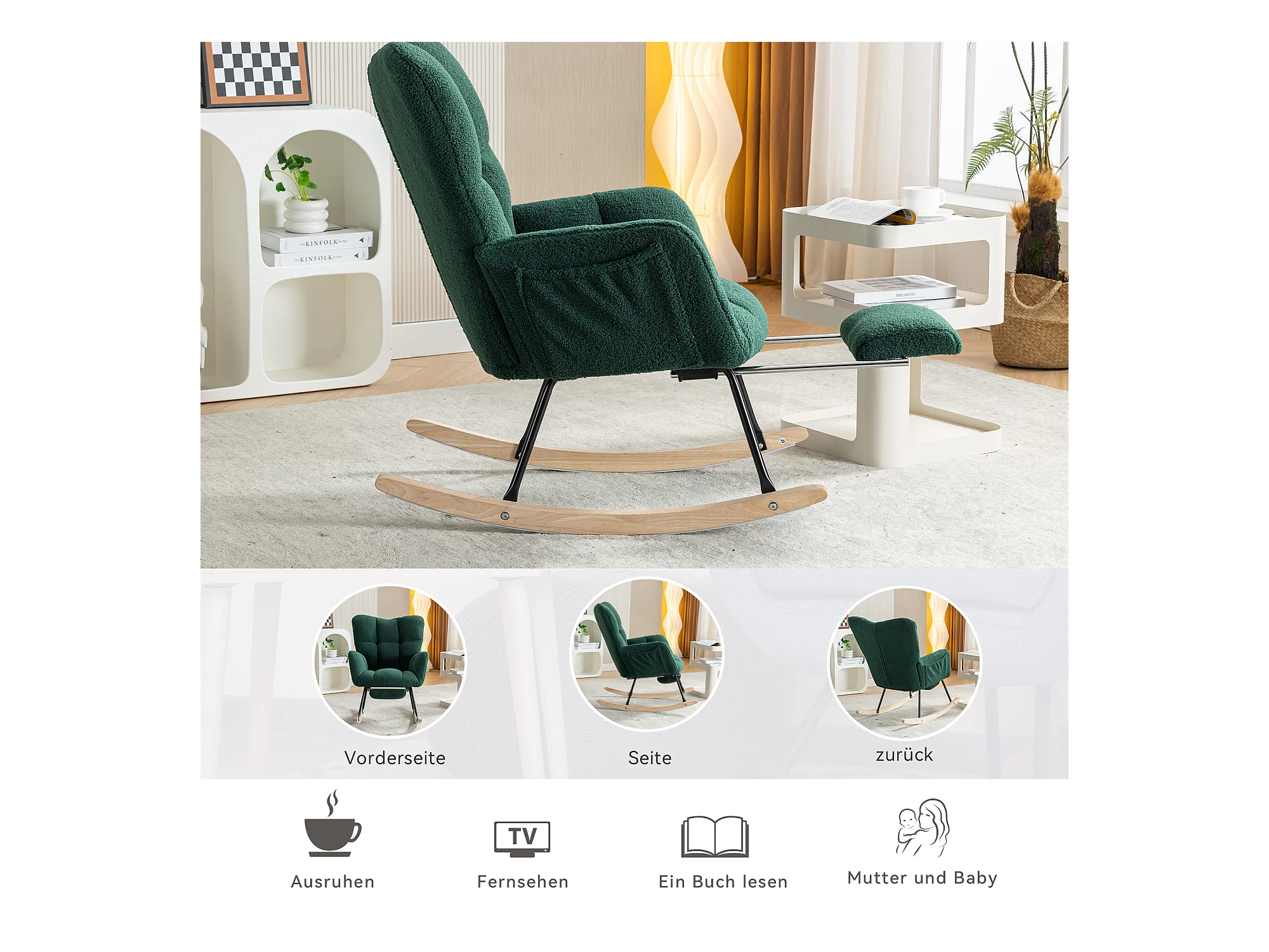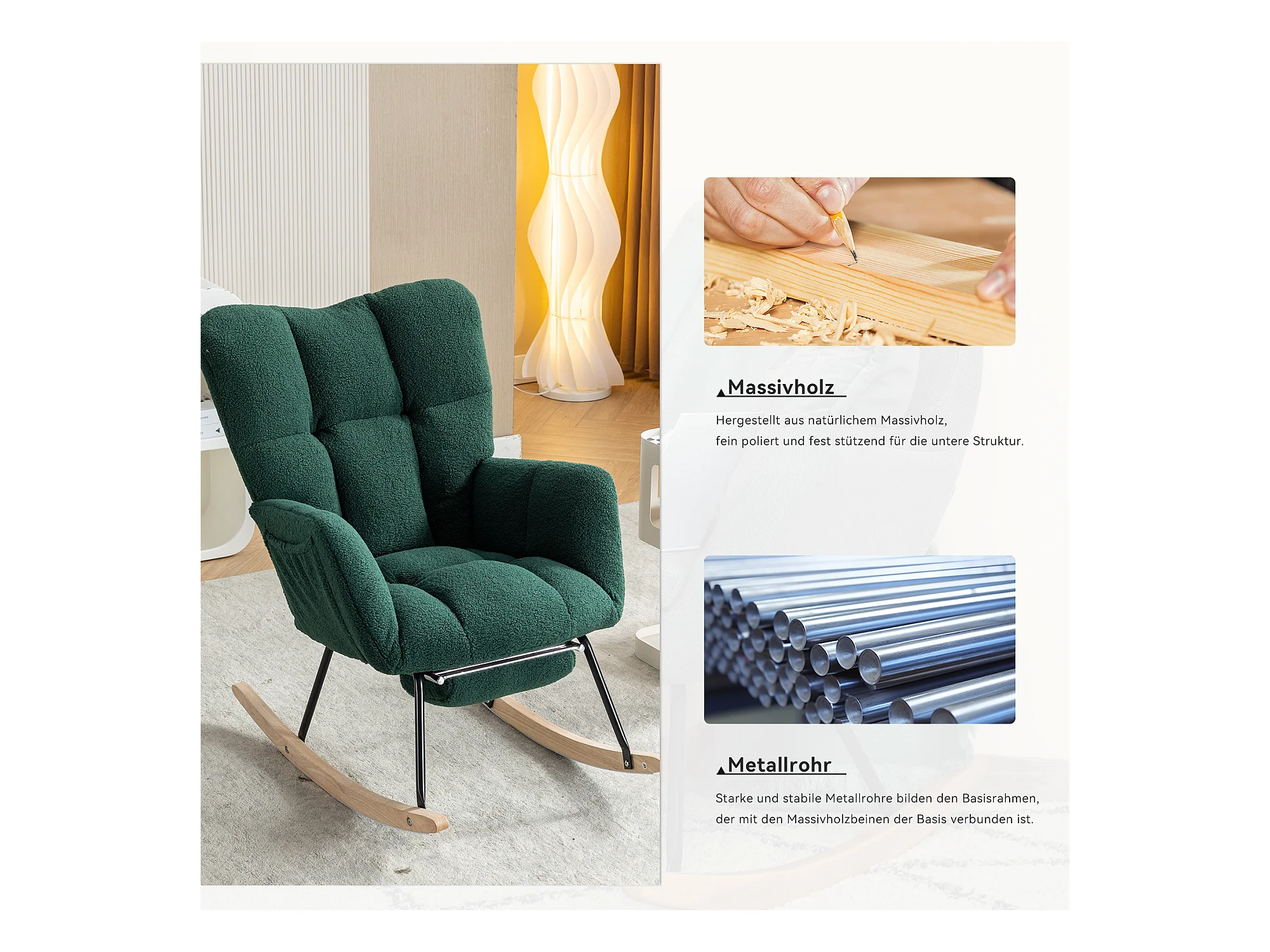 Schommelstoel met rubberhouten poten Donkergroen fluweel