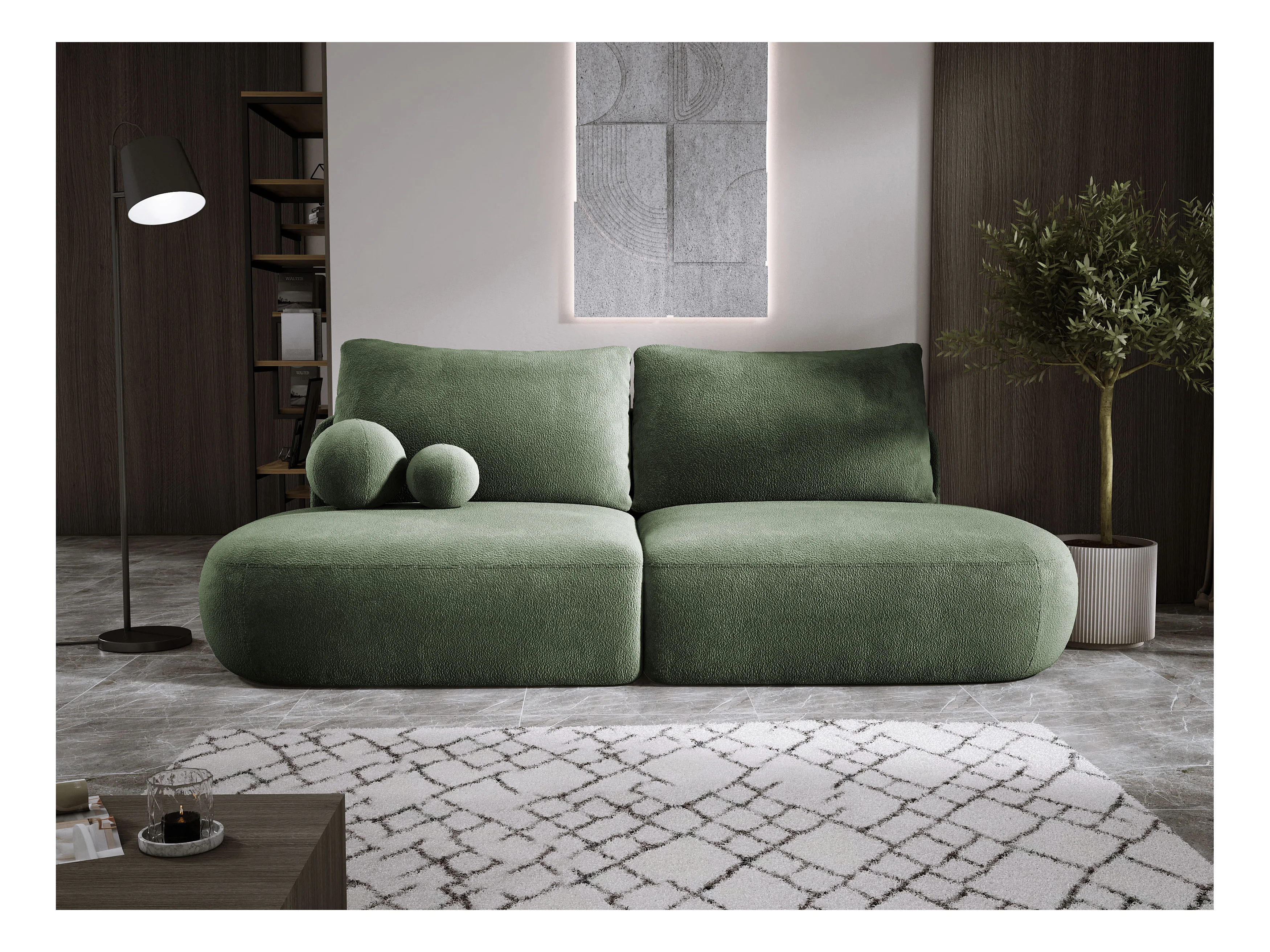 Sofa COCO Slaapbank met bedfunctie, CLOUD stof, 2-zits, vrijstaand, Afmeting: 250x105x90cm Kleur: Groen