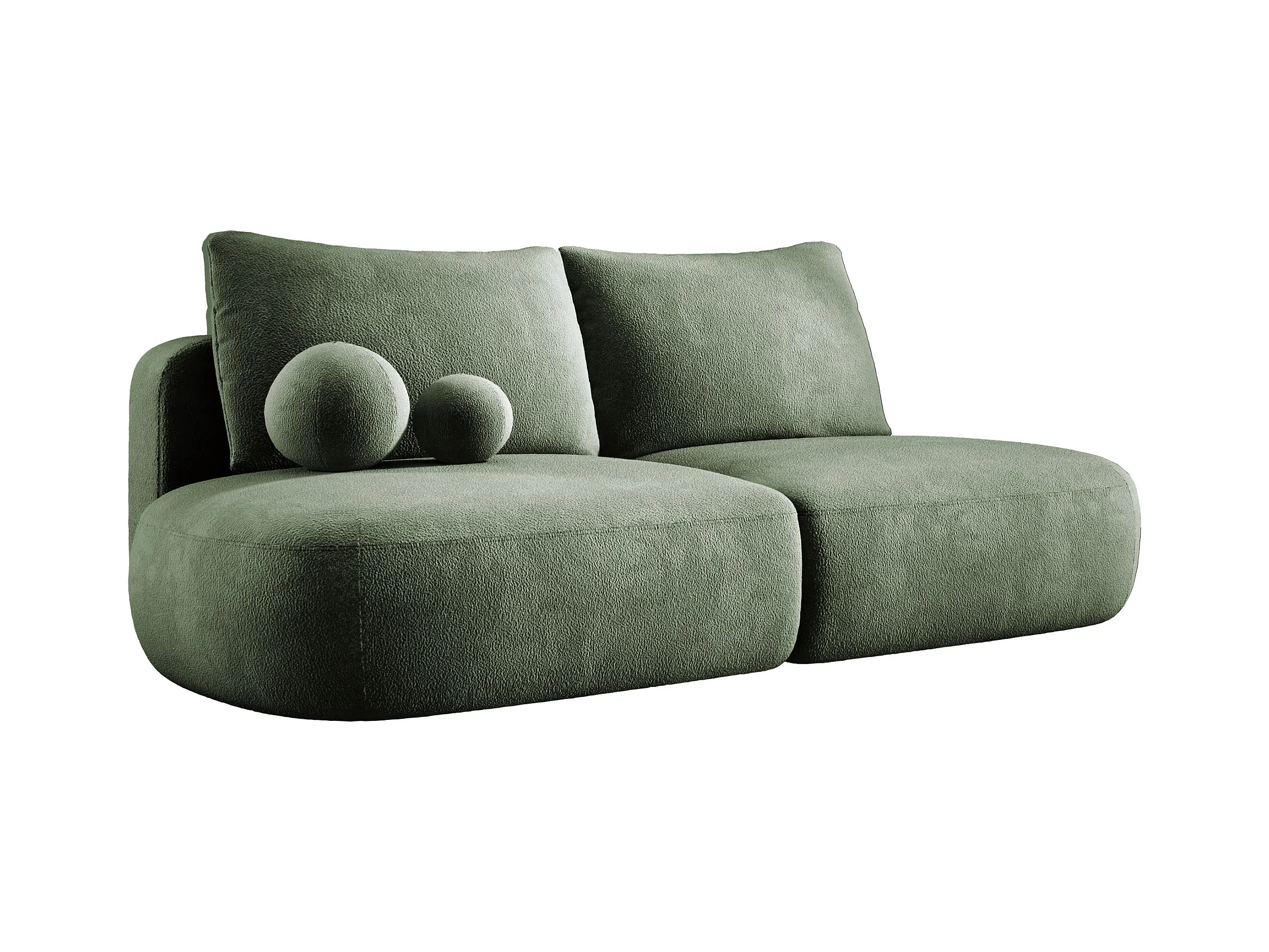 Hoekbank MOLLY met Slaapfunctie – Halfrond, Vrijstaand, Slaapoppervlak 140x207cm, 3 Grote Kussens, Curio Stof, 277x157x88cm, Rechts Groen