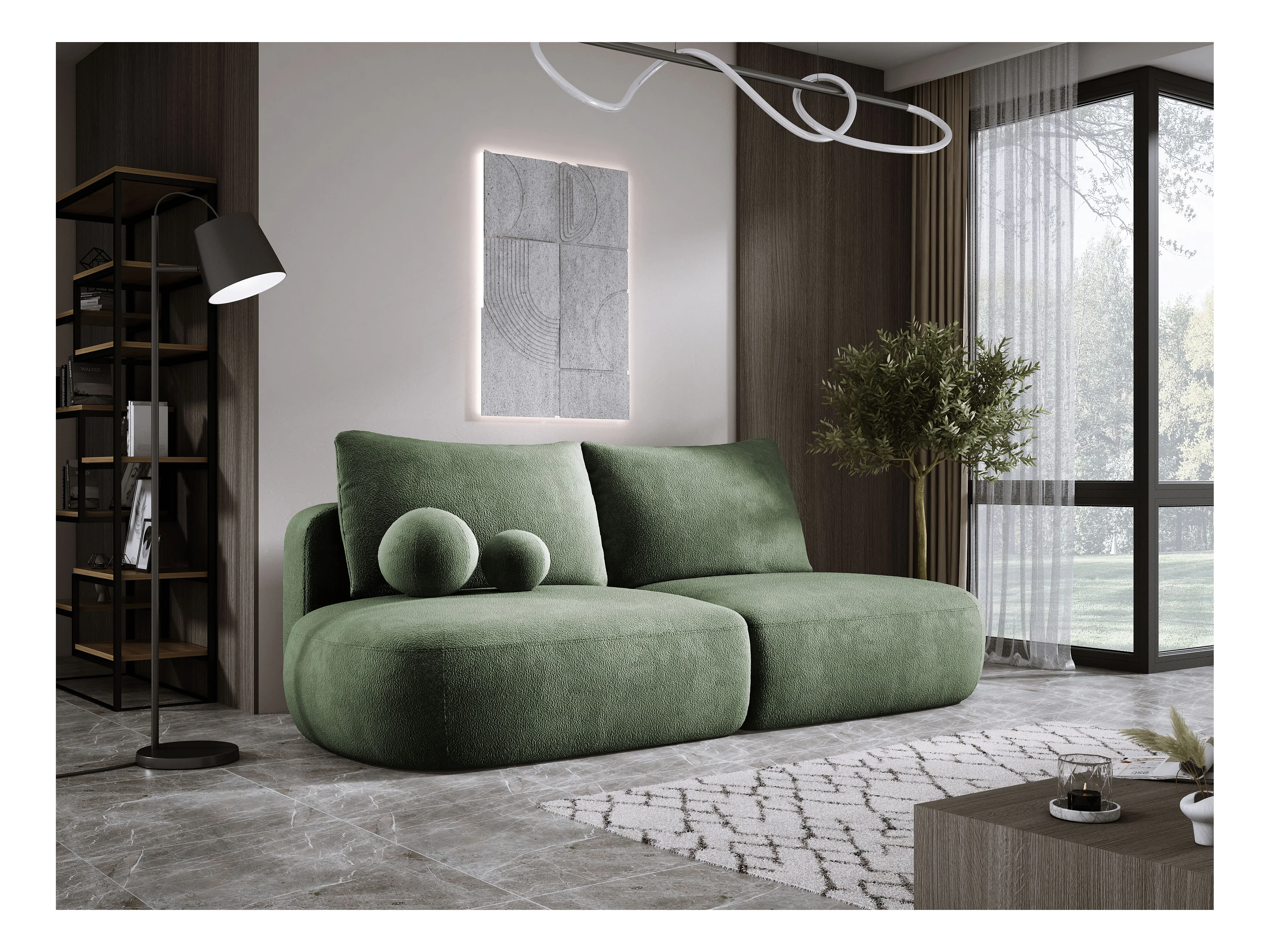 Sofa COCO slaapbank met bedfunctie, bekleding Anthology stof, 2-zits, vrijstaand, afmetingen: 250x105x90cm kleur: groen