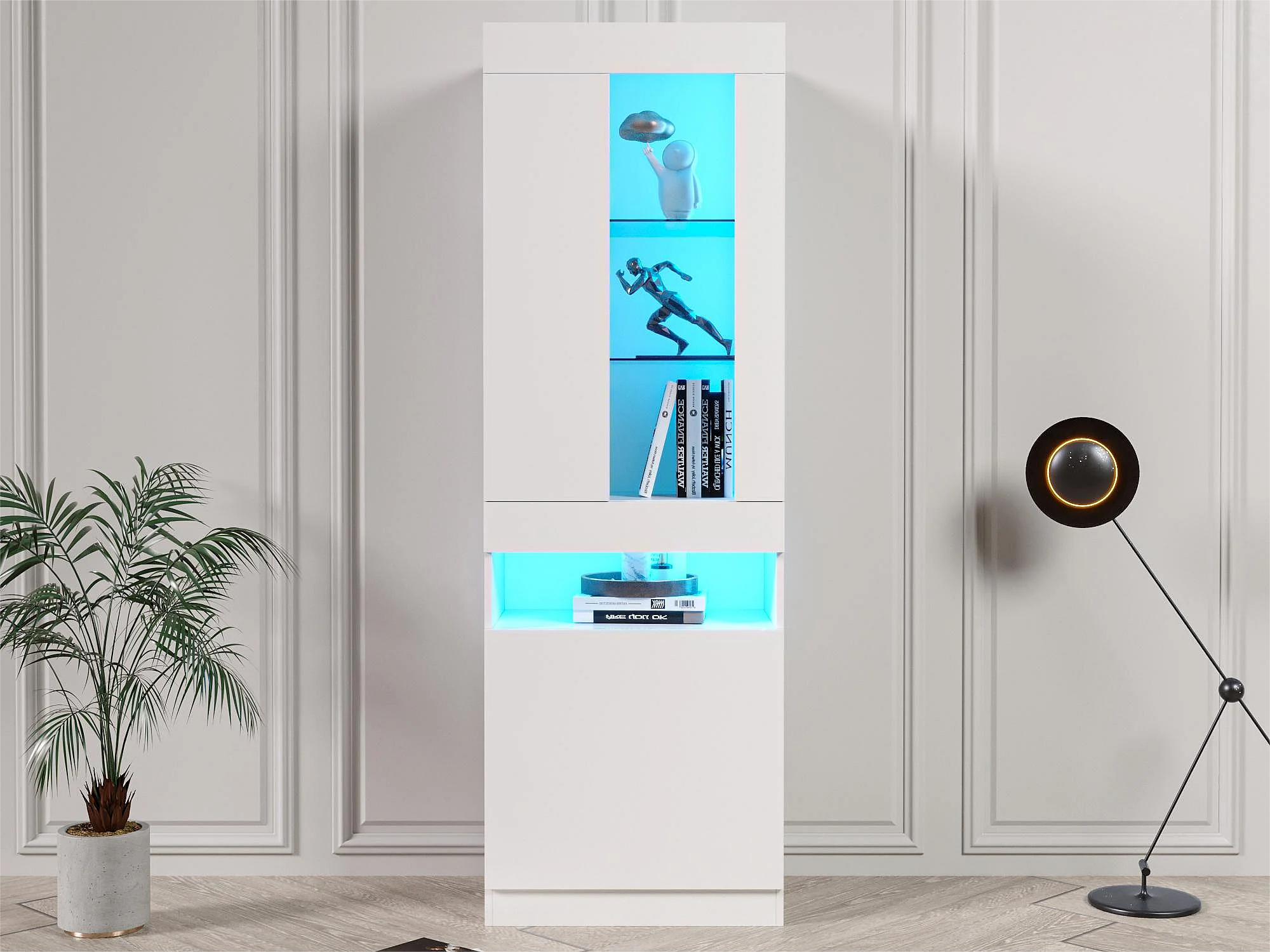 Hogglans vitrinekast 60×40×180 cm - met LED-verlichting - 1 deur - wit