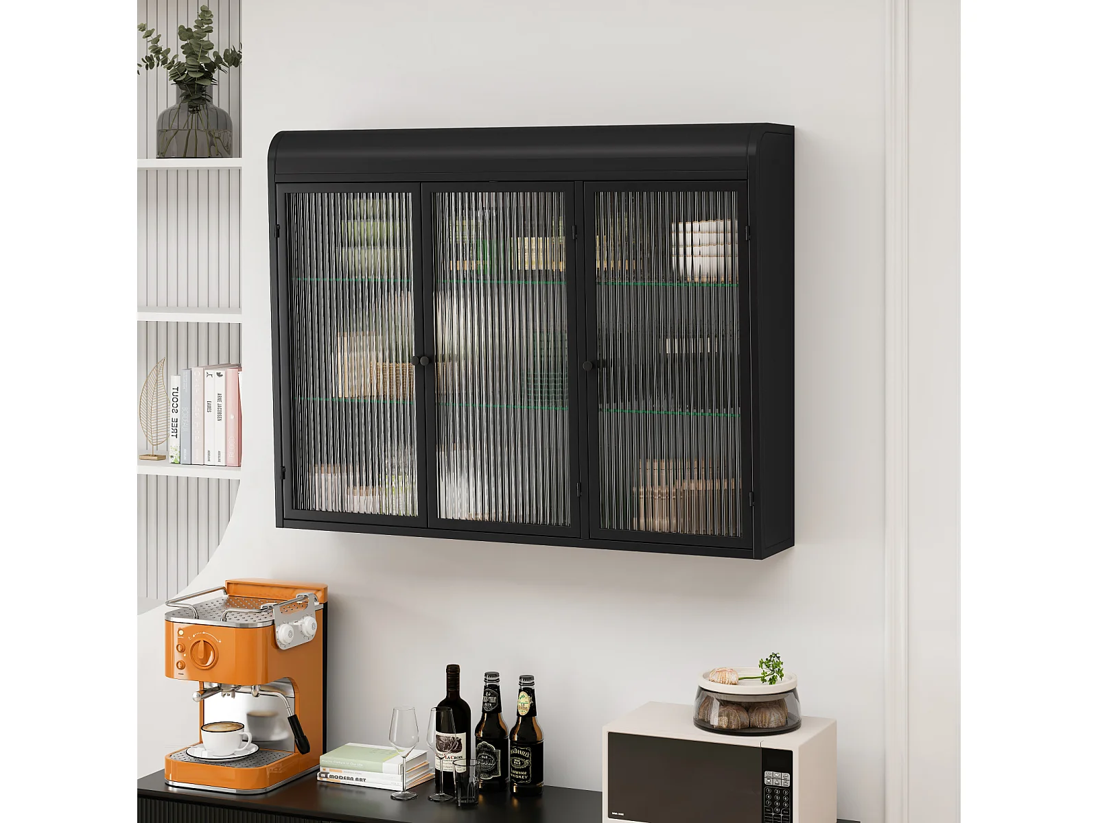 Moderne wandkast met glazen deuren - voor keuken en badkamer - 90 × 20 × 70 cm, zwart