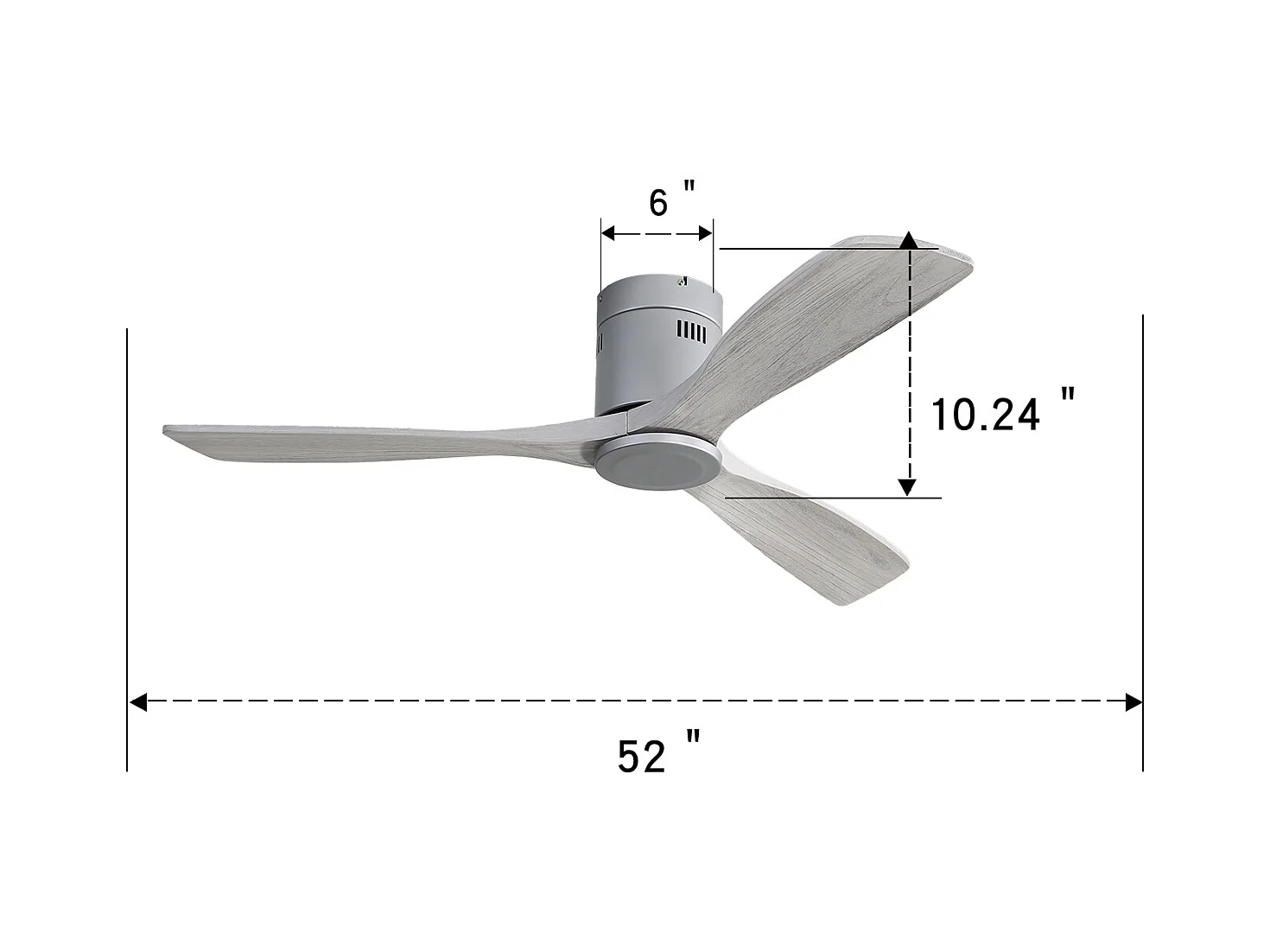 52 inch plafondventilator, DC 3 ventilatorbladen van bewerkt hout, geruisloze omkeerbare motor, afstandsbediening zonder licht (132 x 132 x 24,5 cm)