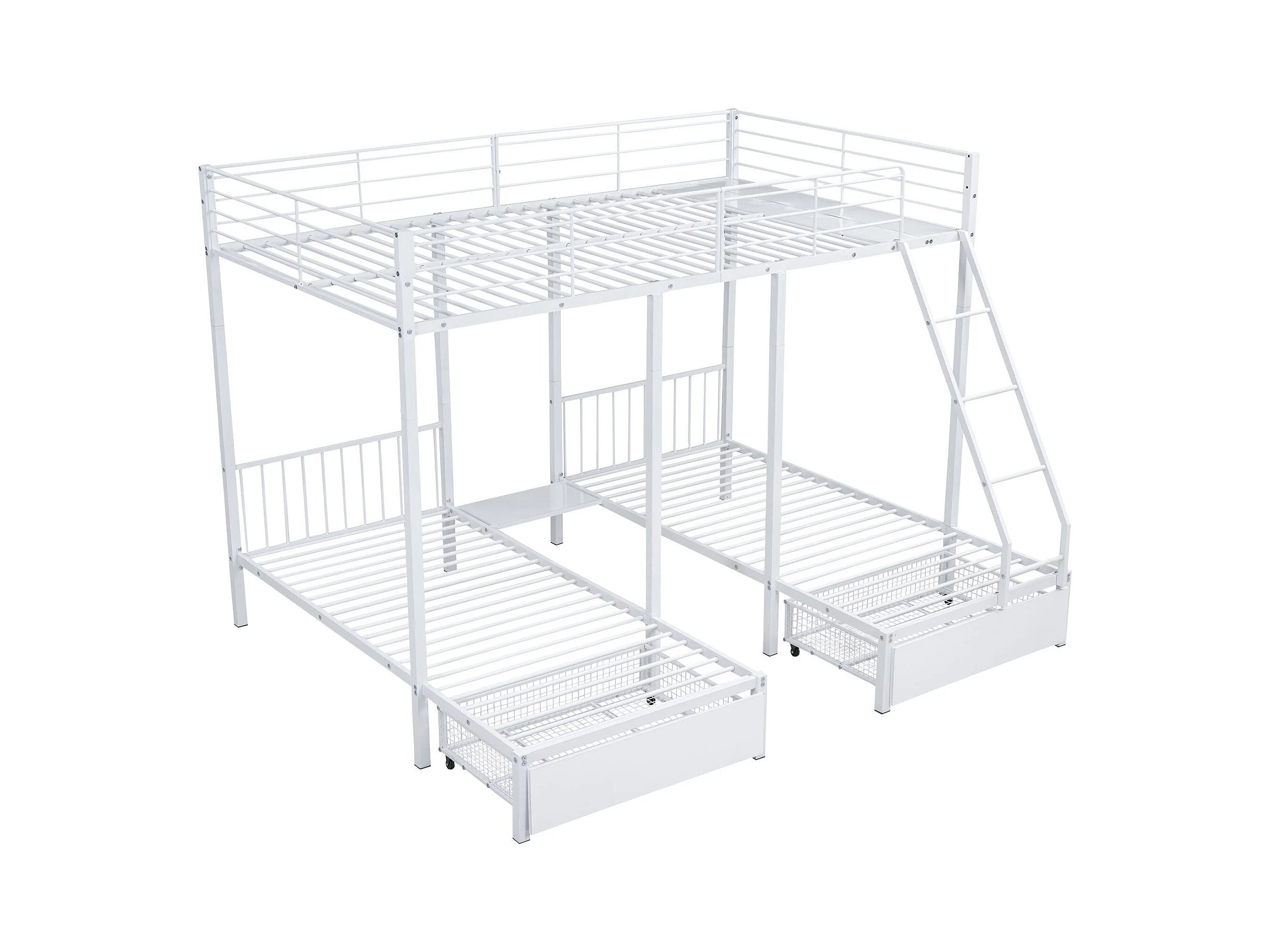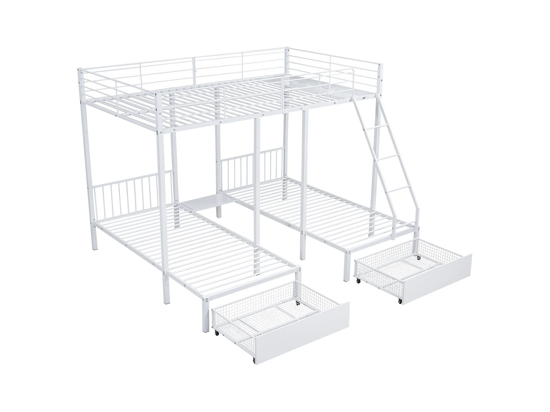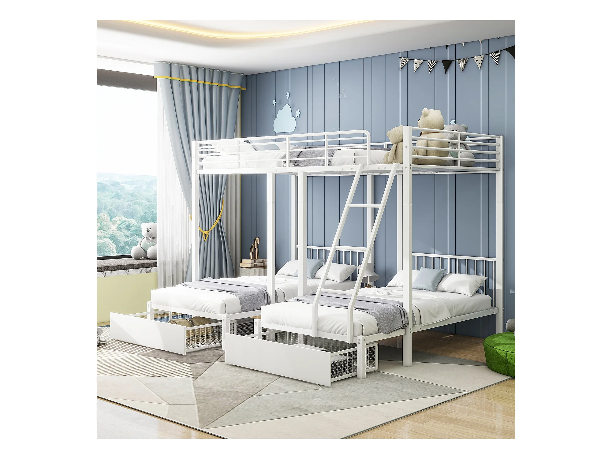 Modulair stapelbed met lades, metalen frame, omvormbaar tot tweepersoonsbed 140x200 en twee eenpersoonsbedden 90x200, multifunctioneel, wit (246x206x177,8 cm)