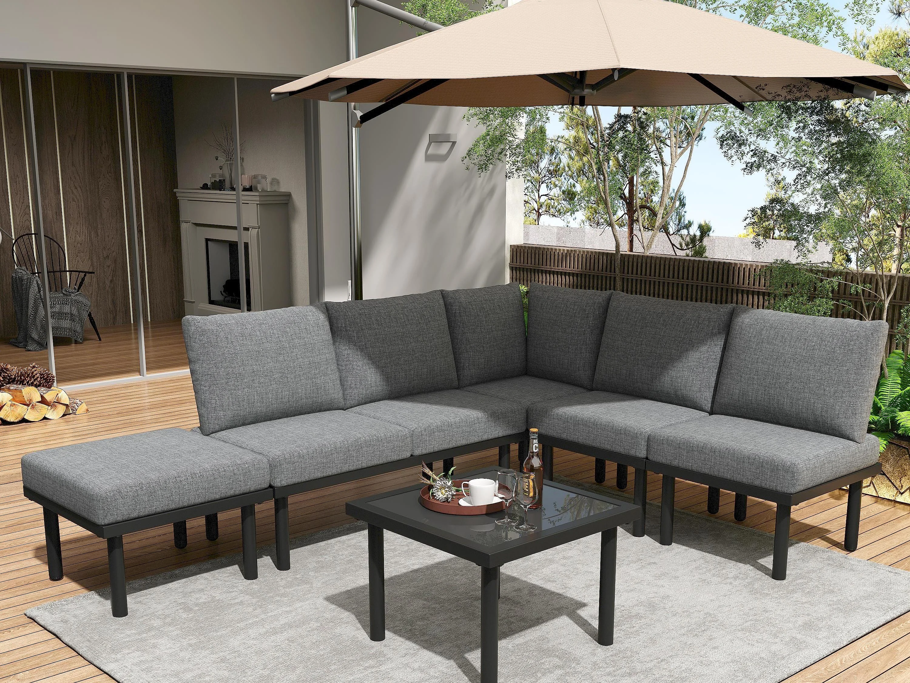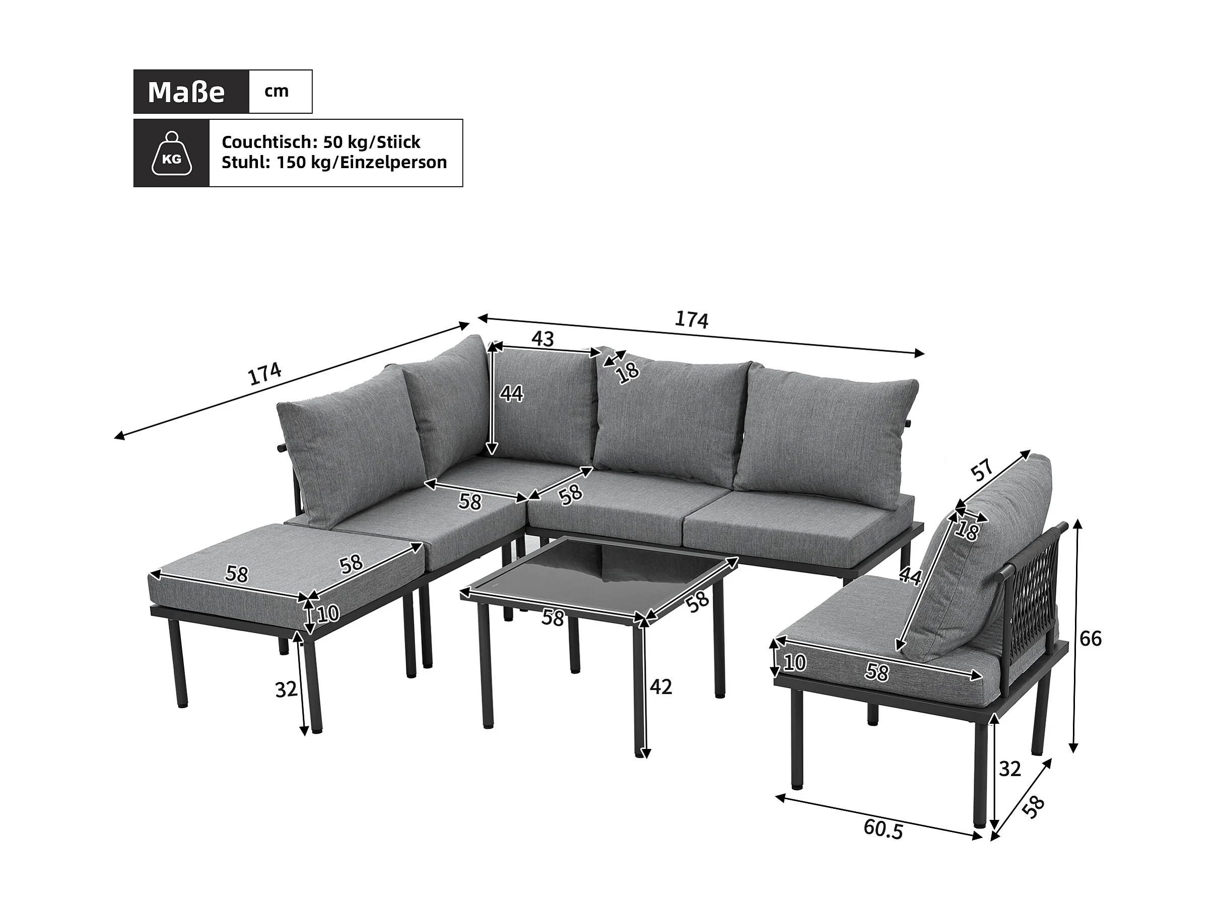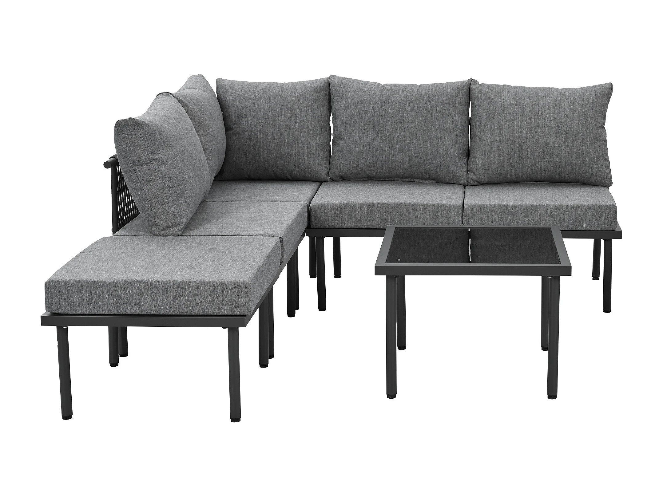 Modulair tuinmeubel in gegalvaniseerd staal - geschikt voor 6 personen - versierd met touw - Grijs