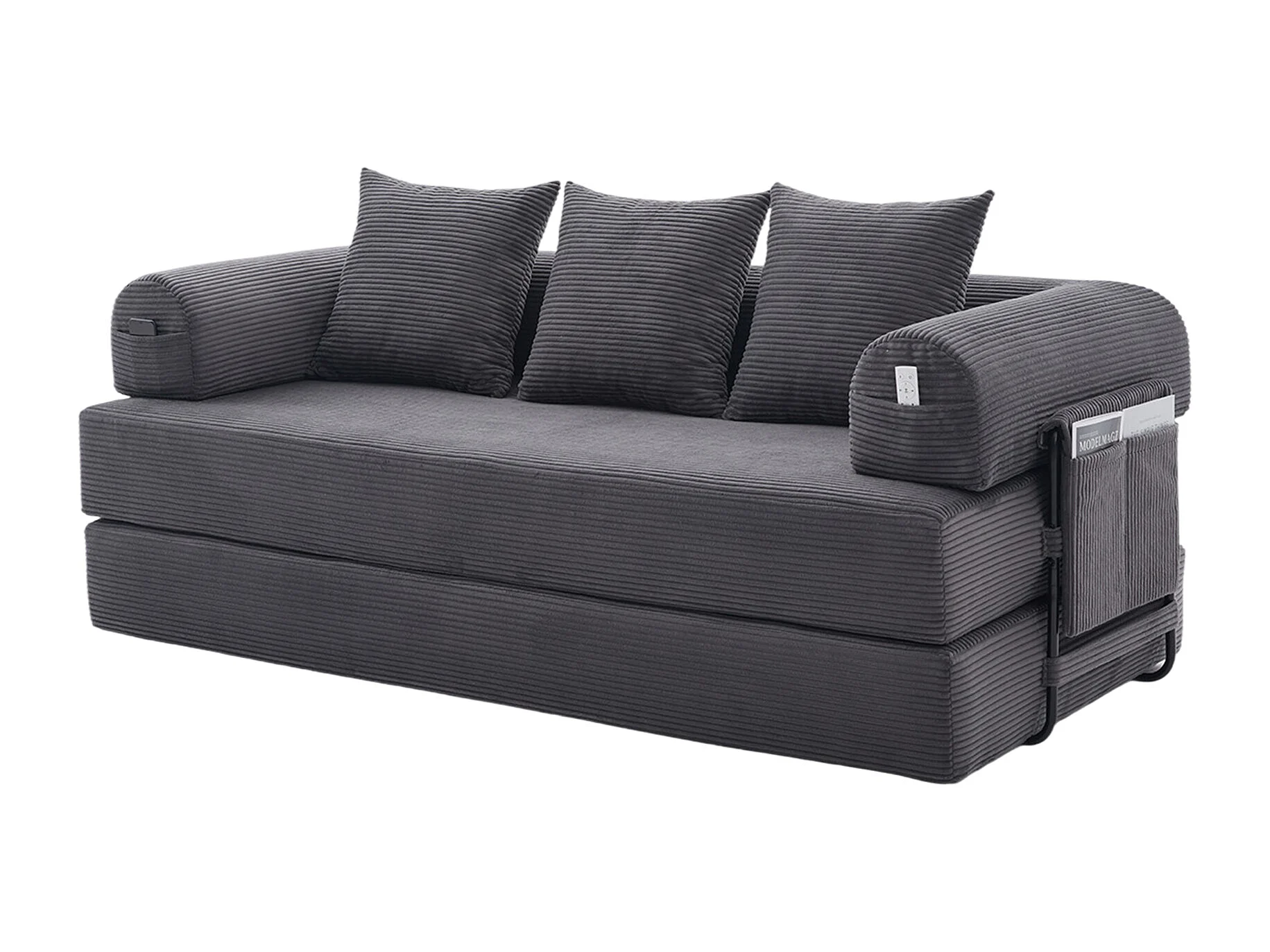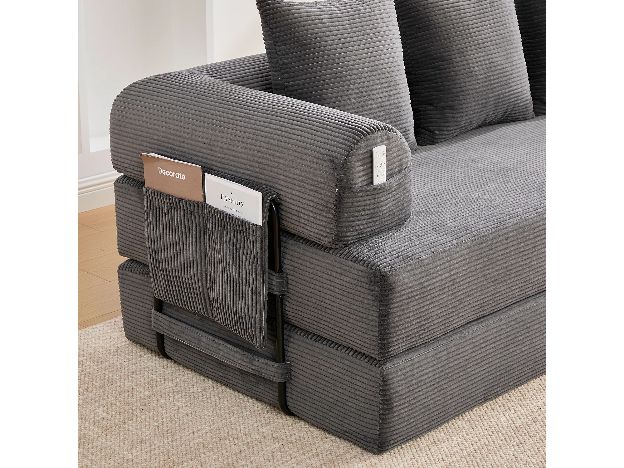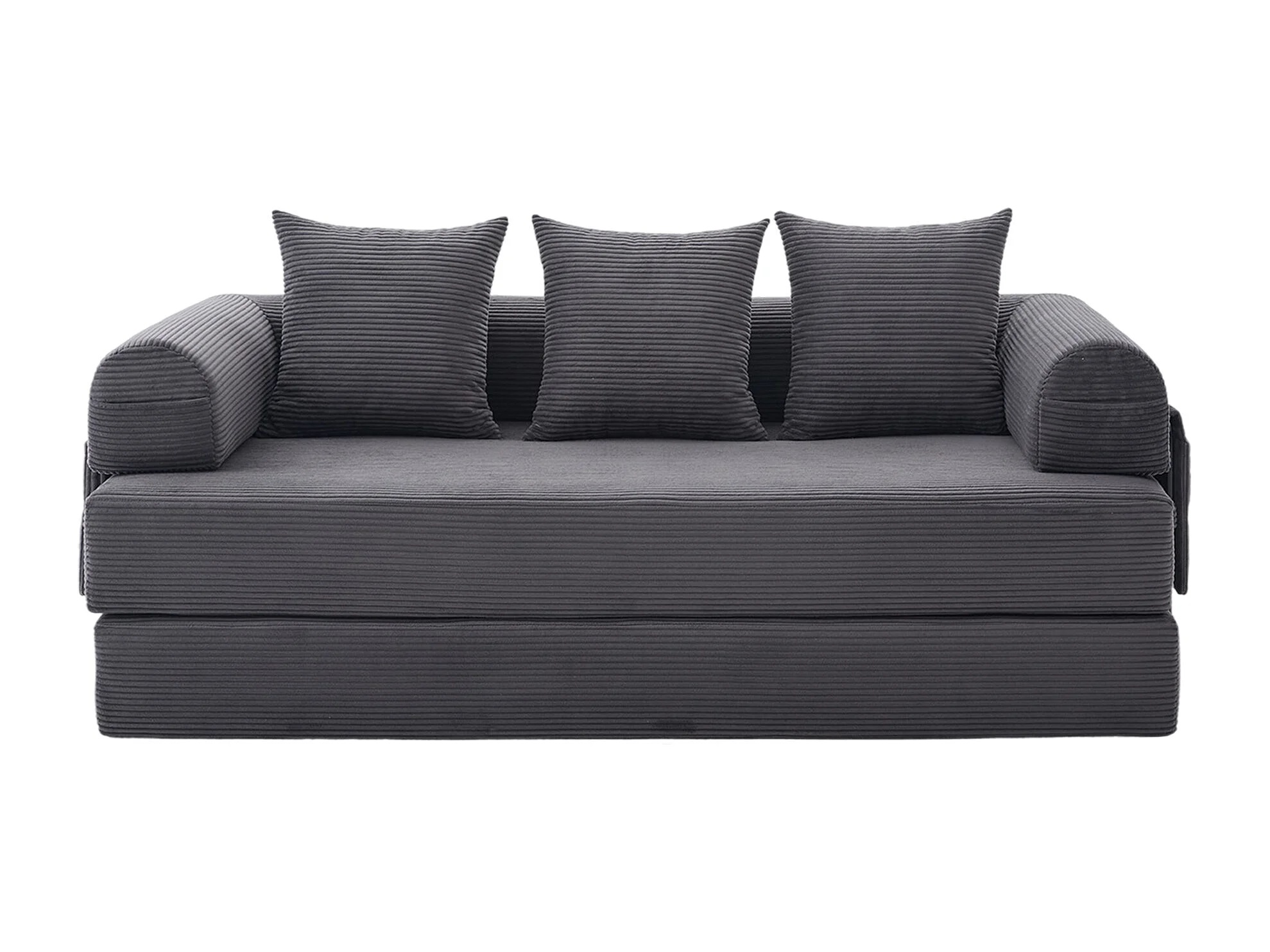 Modulaire 3-zits slaapbank met 3 kussens en zijvak - Donkergrijs corduroy