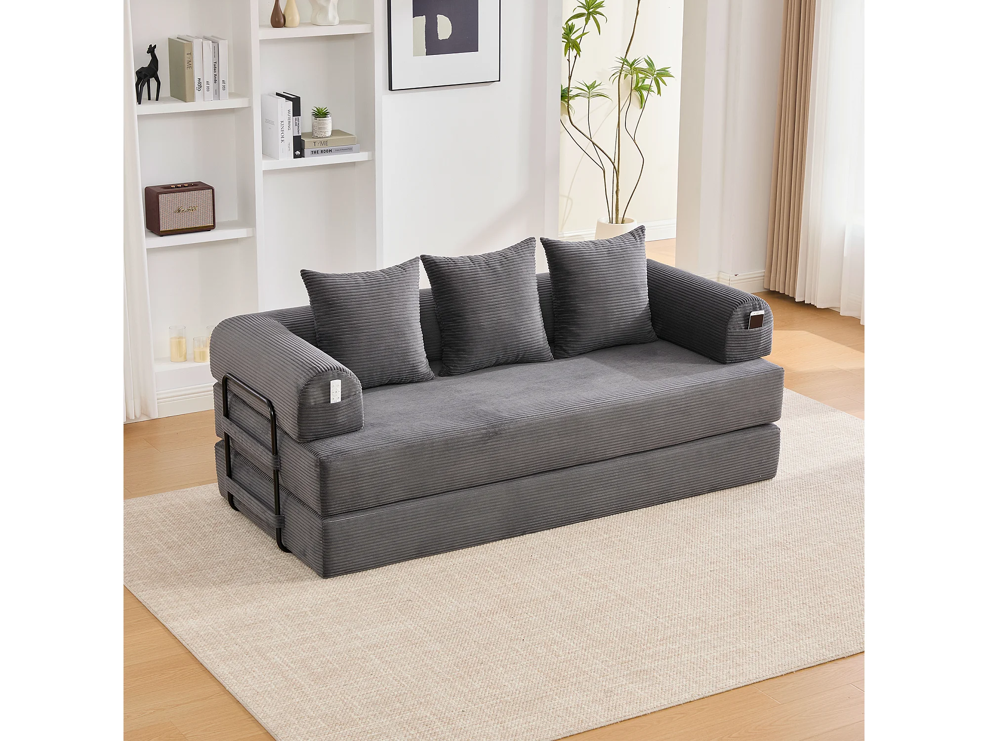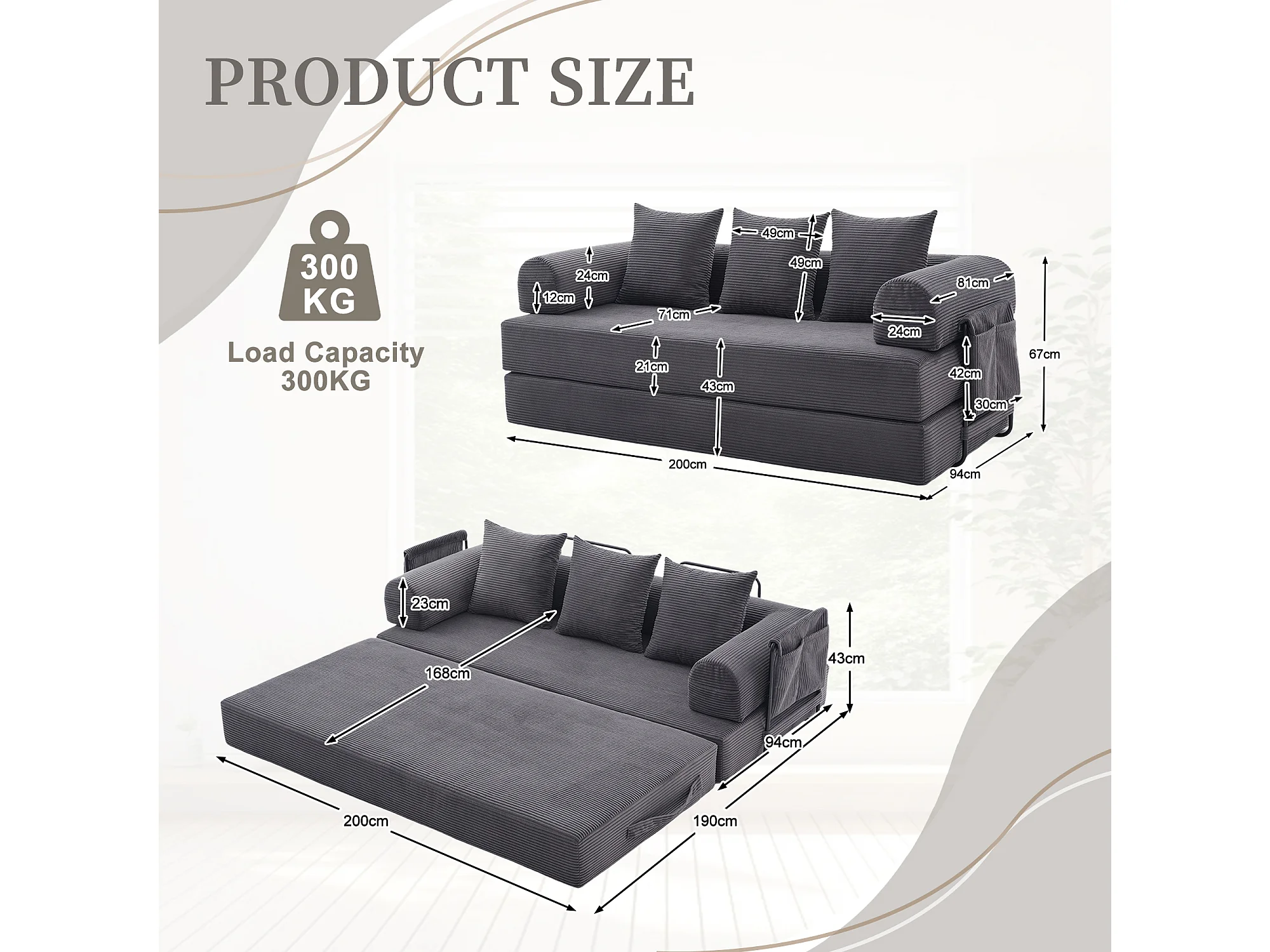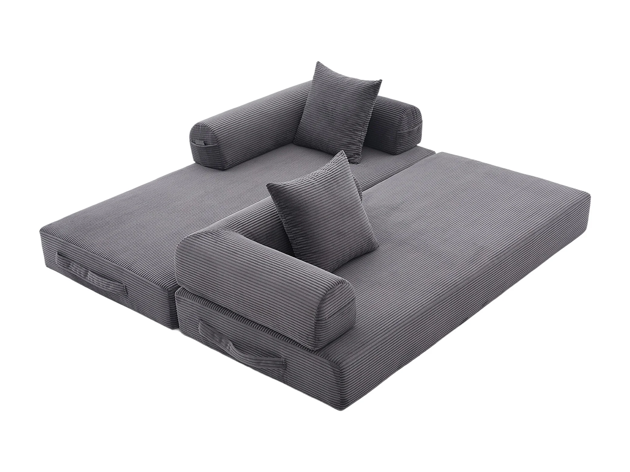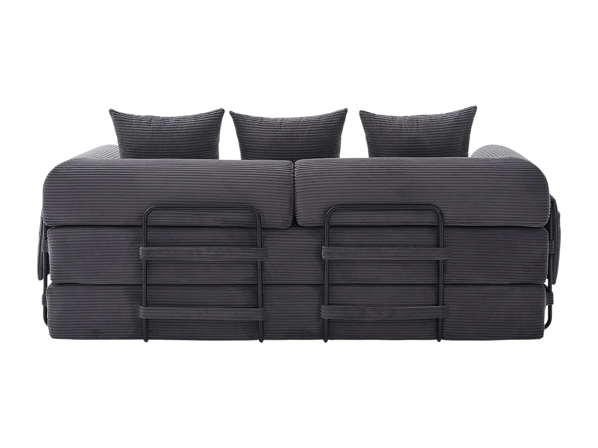 Modulaire 3-zits slaapbank met 3 kussens en zijvak - Donkergrijs corduroy
