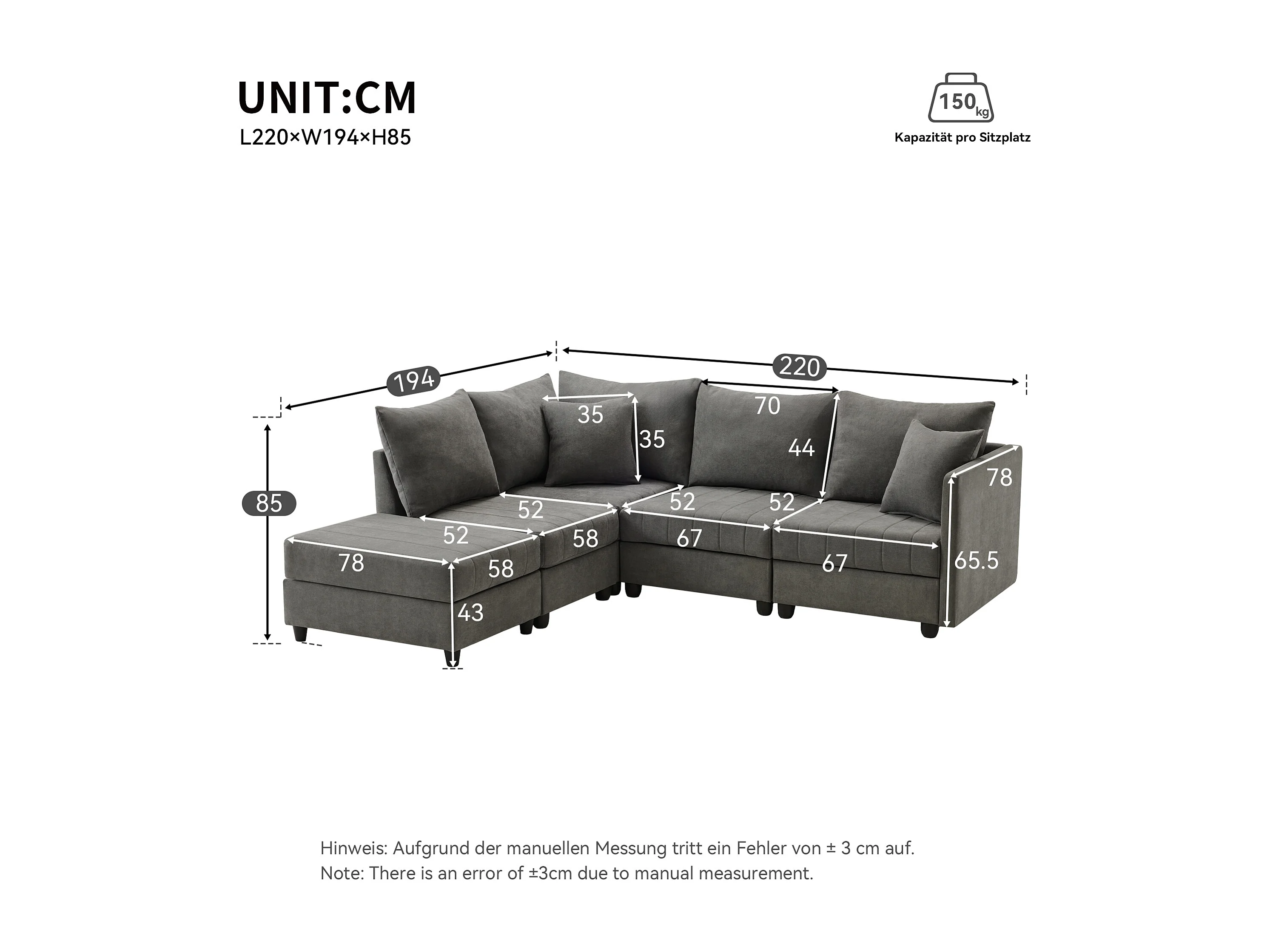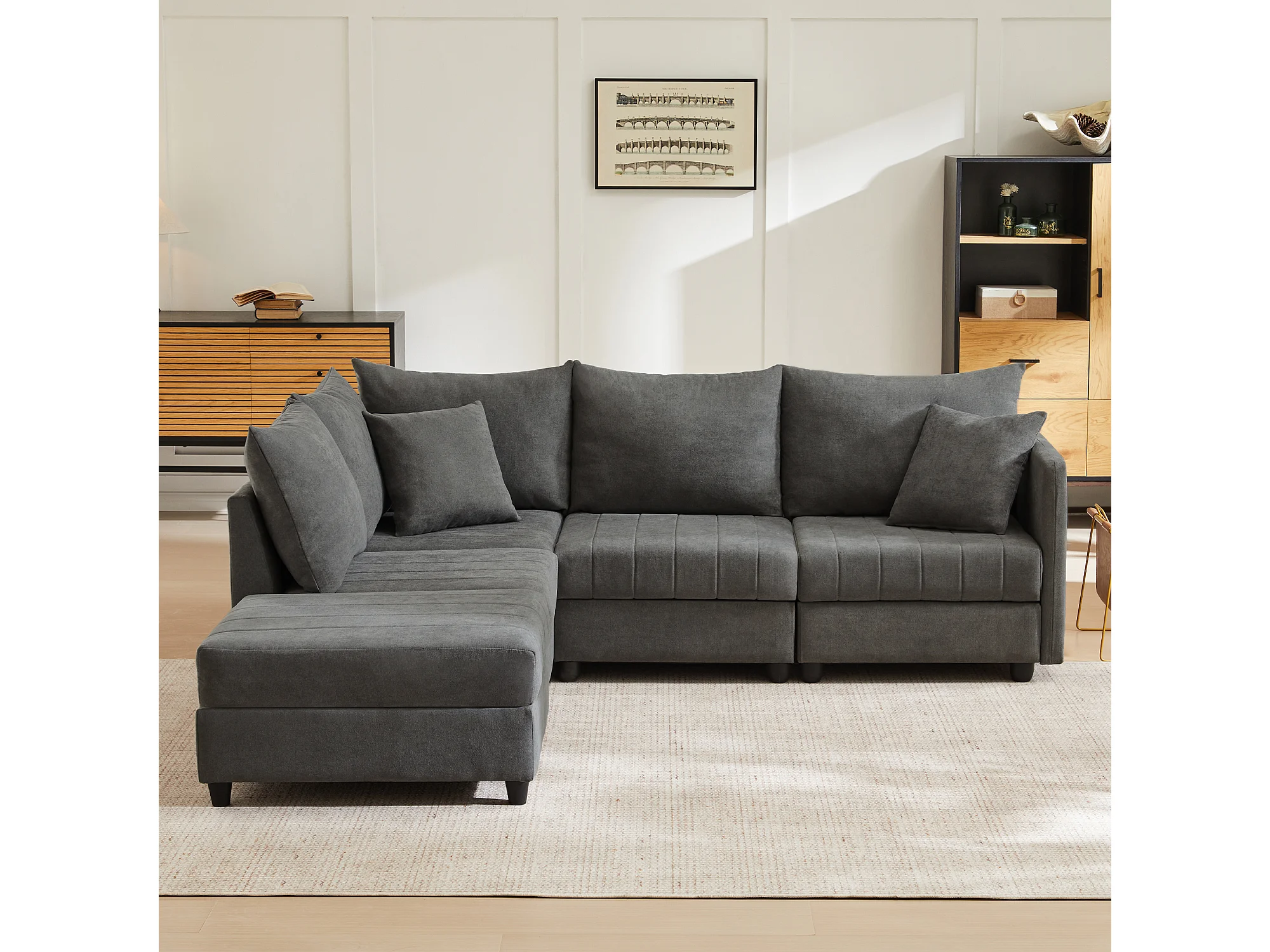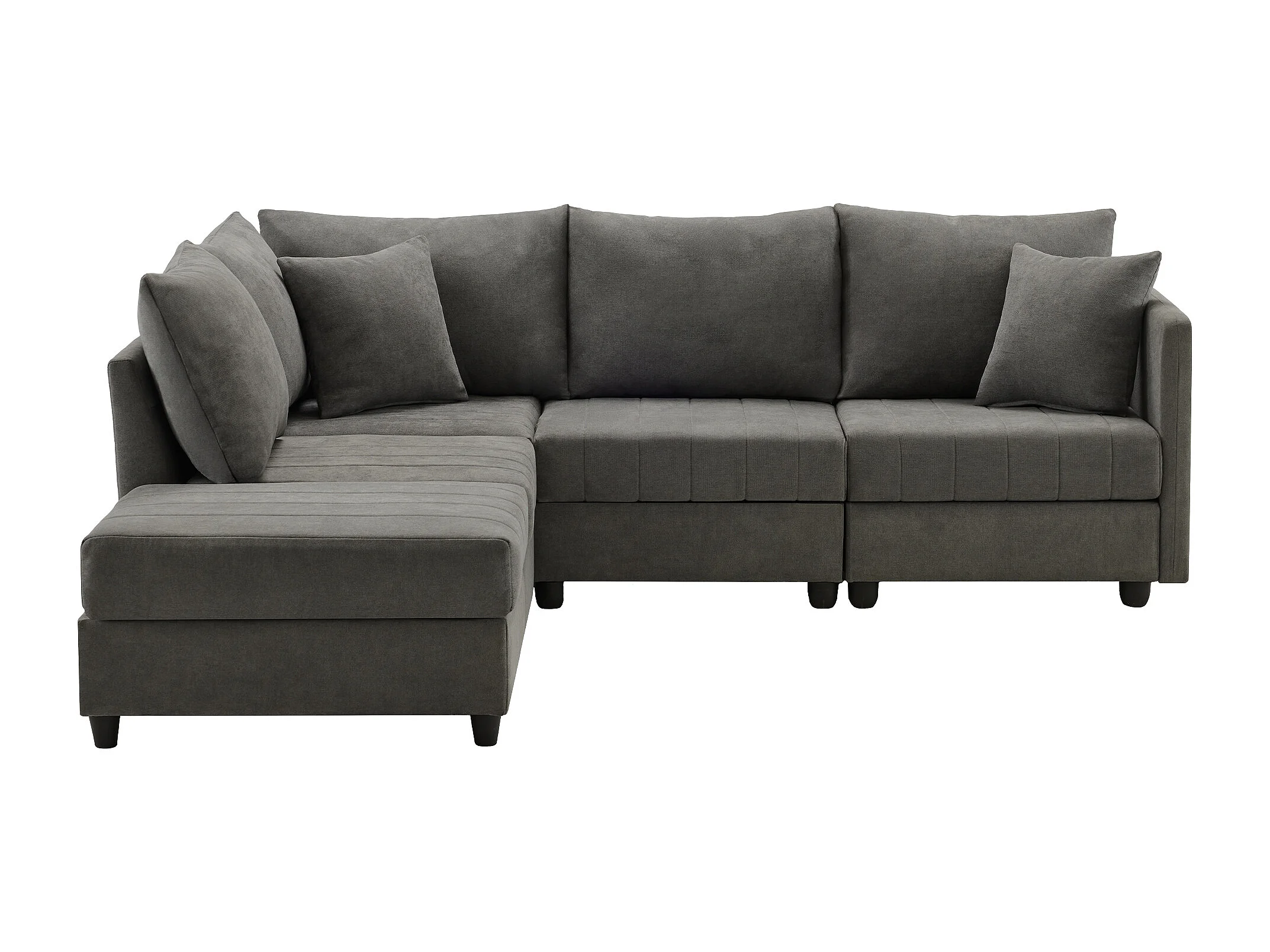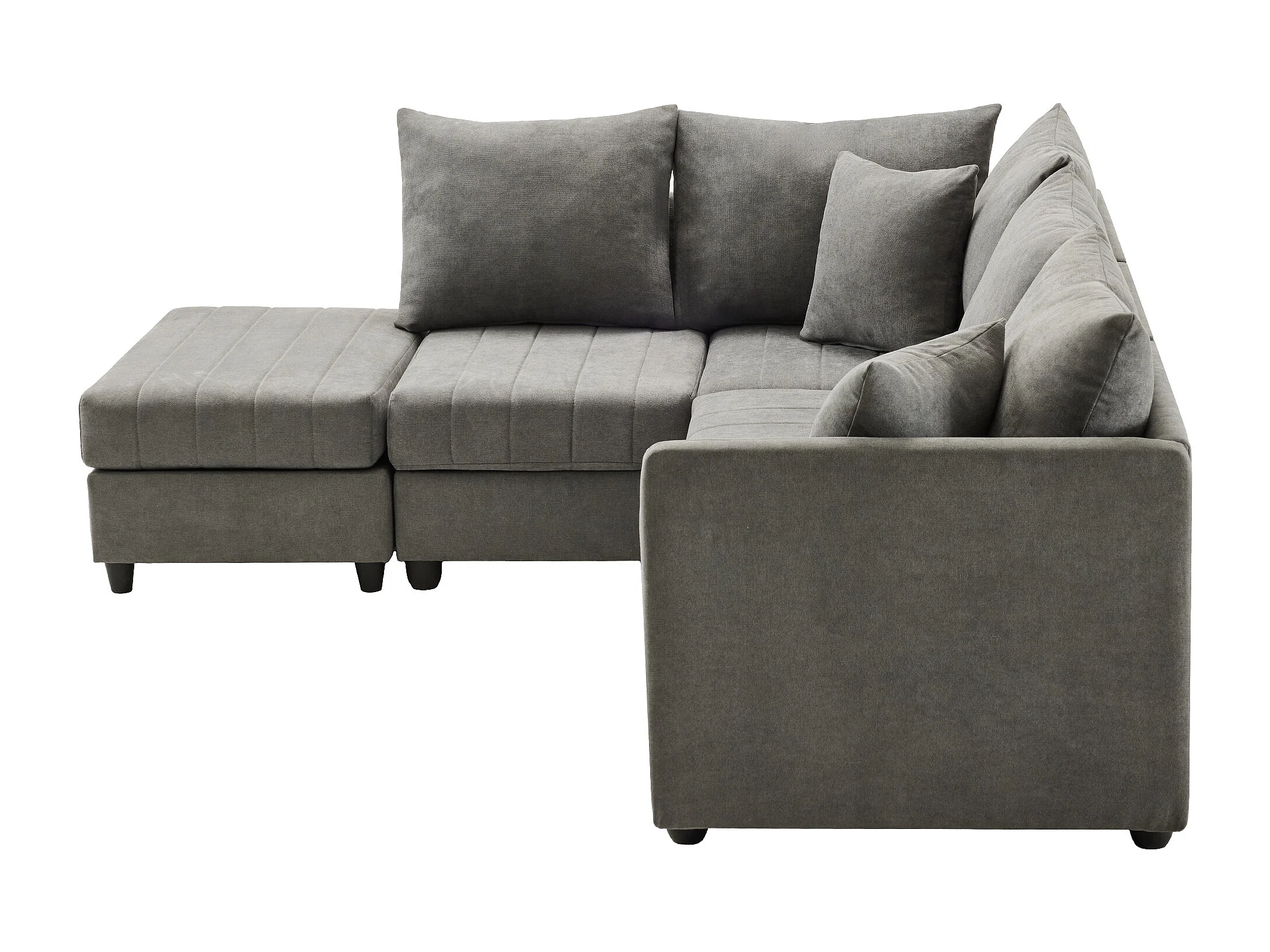 Modulaire 5-zitsbankset - 220 x 194 x 85 cm - met ombouwbare voetenbank - Katoen en linnen - grijs