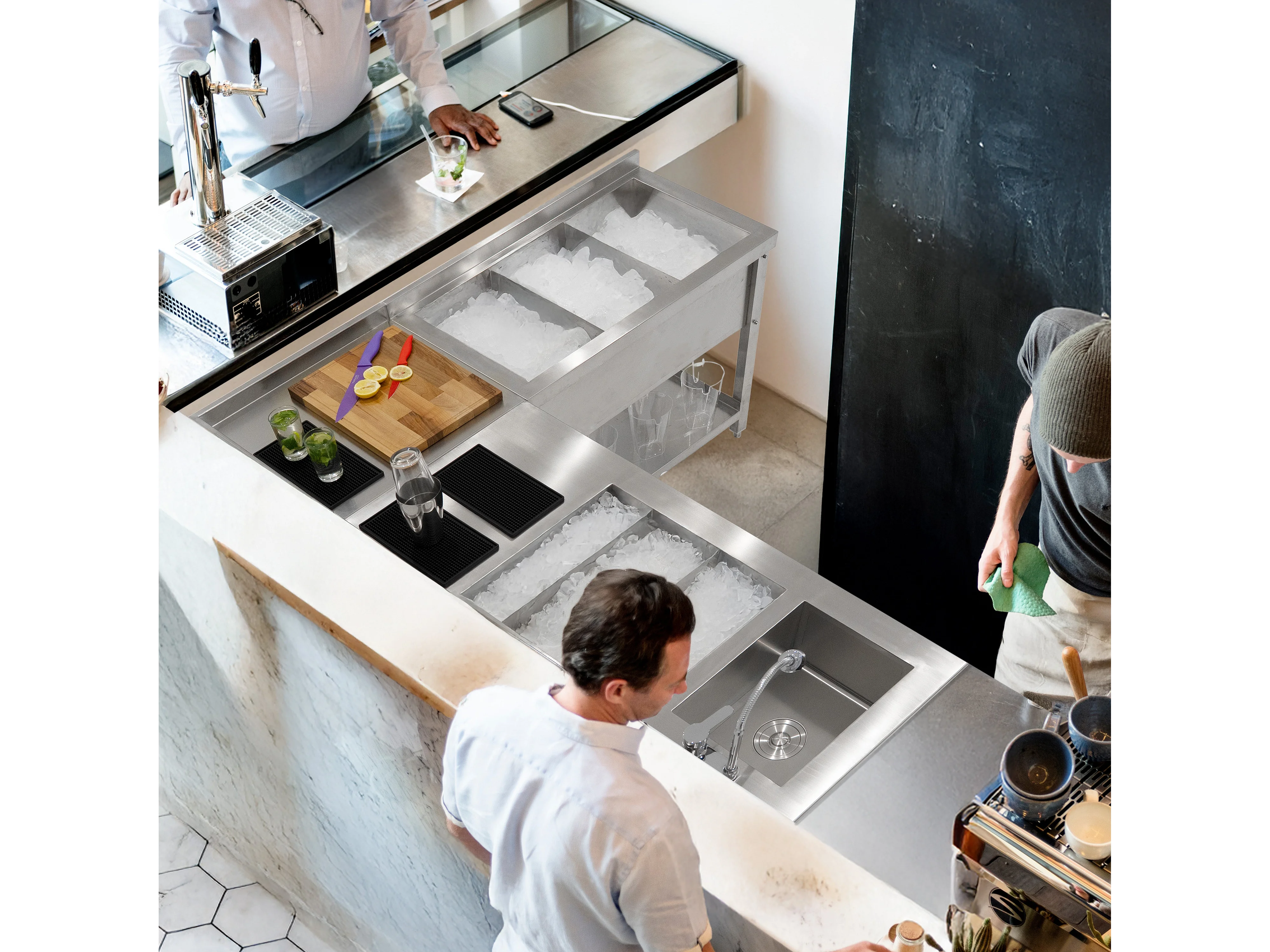 Cocktail Bar Station Ijsbak & Modulaire Hoekeenheid Roestvrij Staal Werkstation