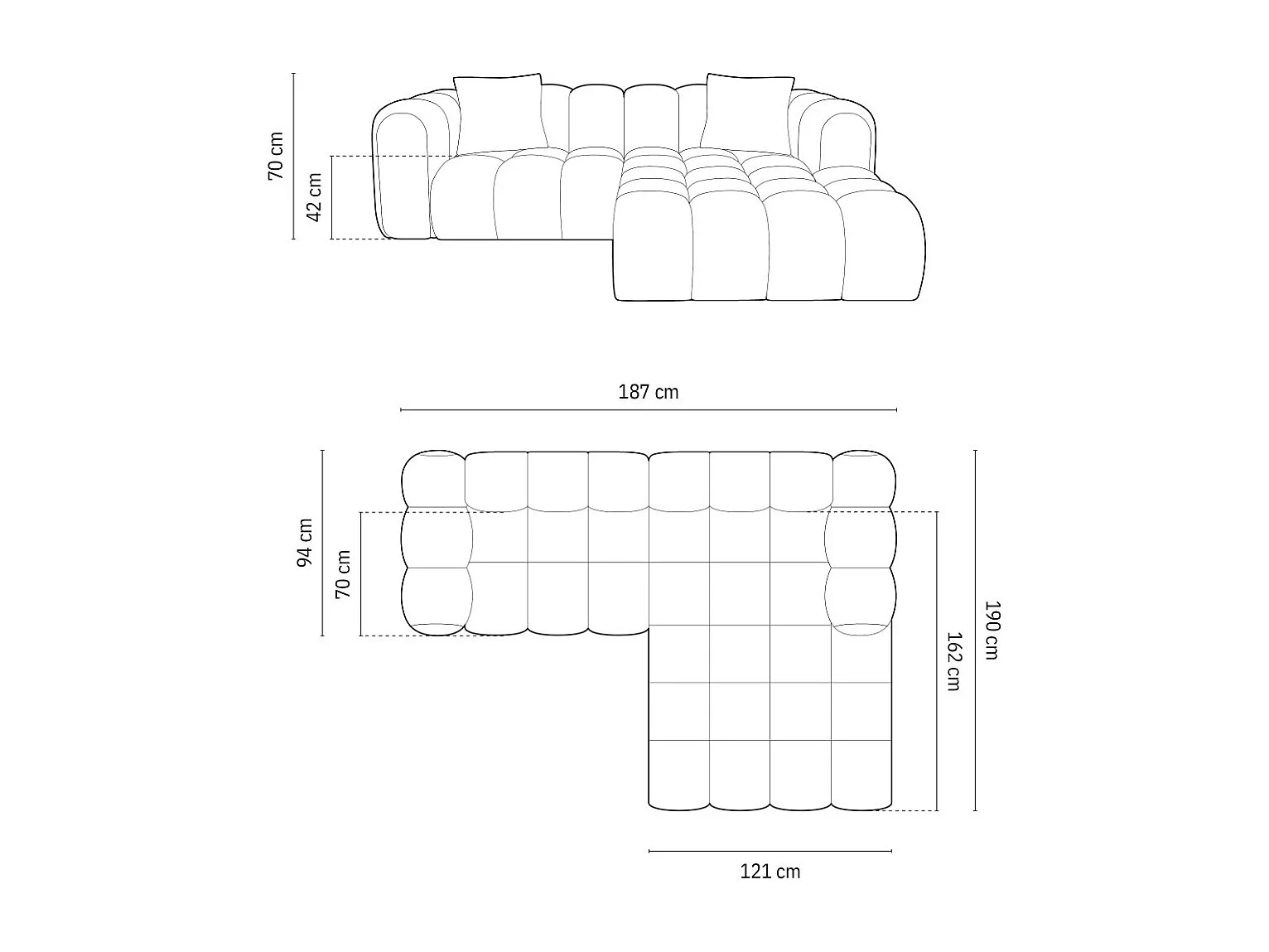 CXL by Christian Lacroix - Modulaire hoekbank rechts "Clotilde" 3 zitplaatsen, Structurele stof, Lichtgrijs - 187x190x70cm