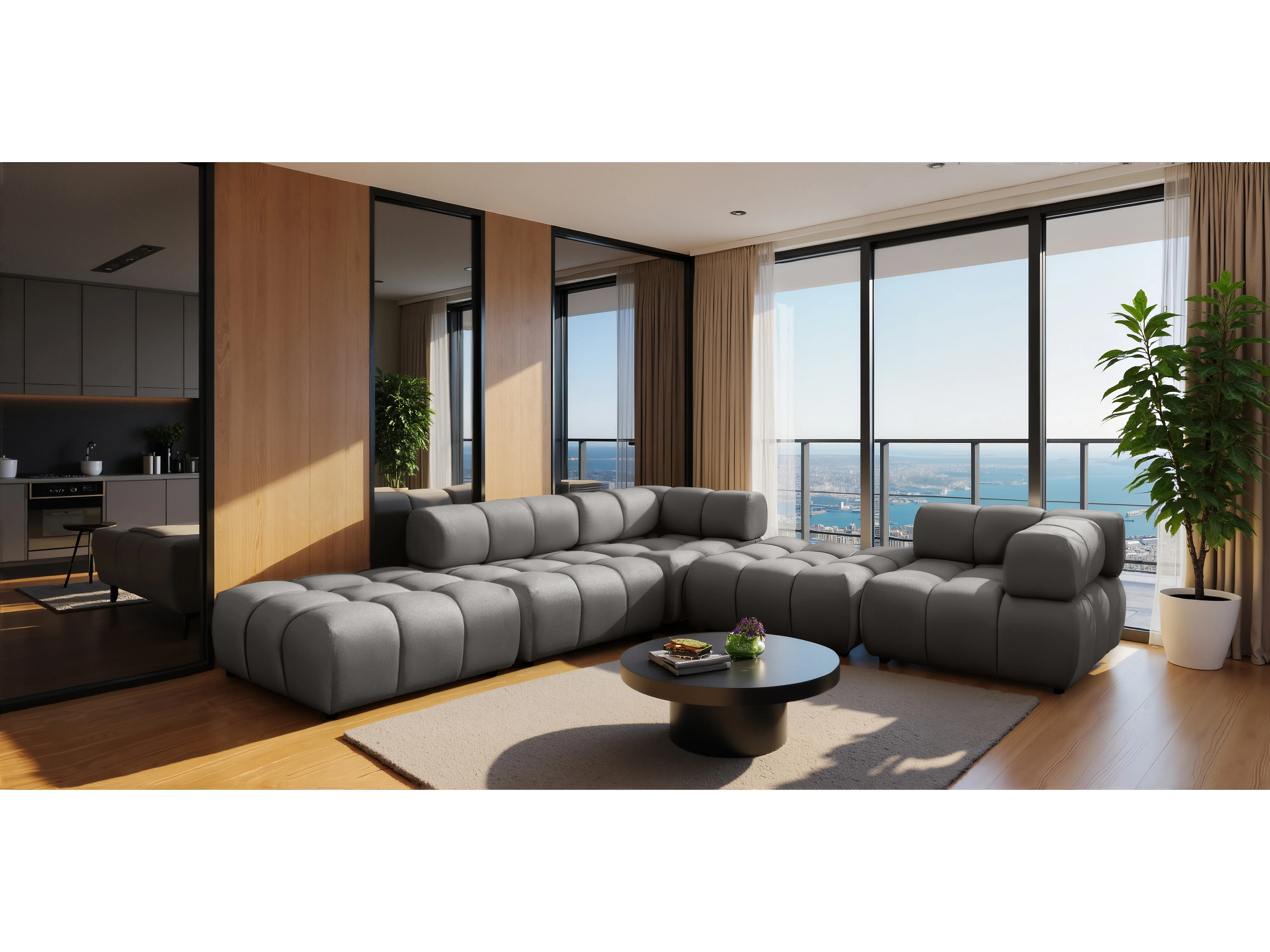 Modulaire hoekbank, Veloursstof Bluvel, Asgrijs, Links, Bolla
