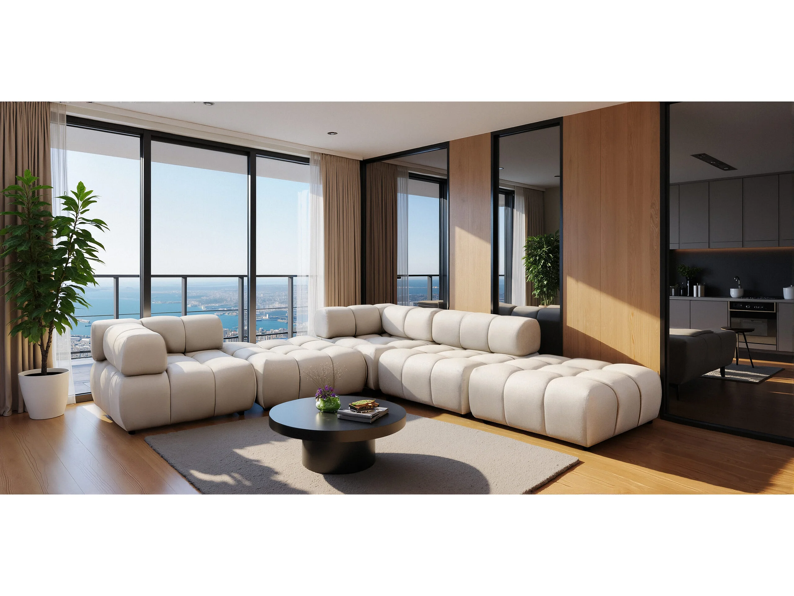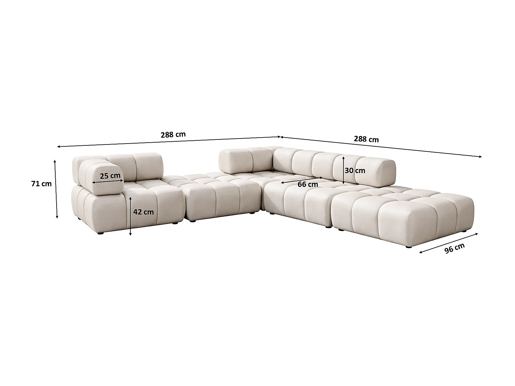 Modulaire hoekbank, Veloursstof Bluvel, Crème, Rechts, Bolla
