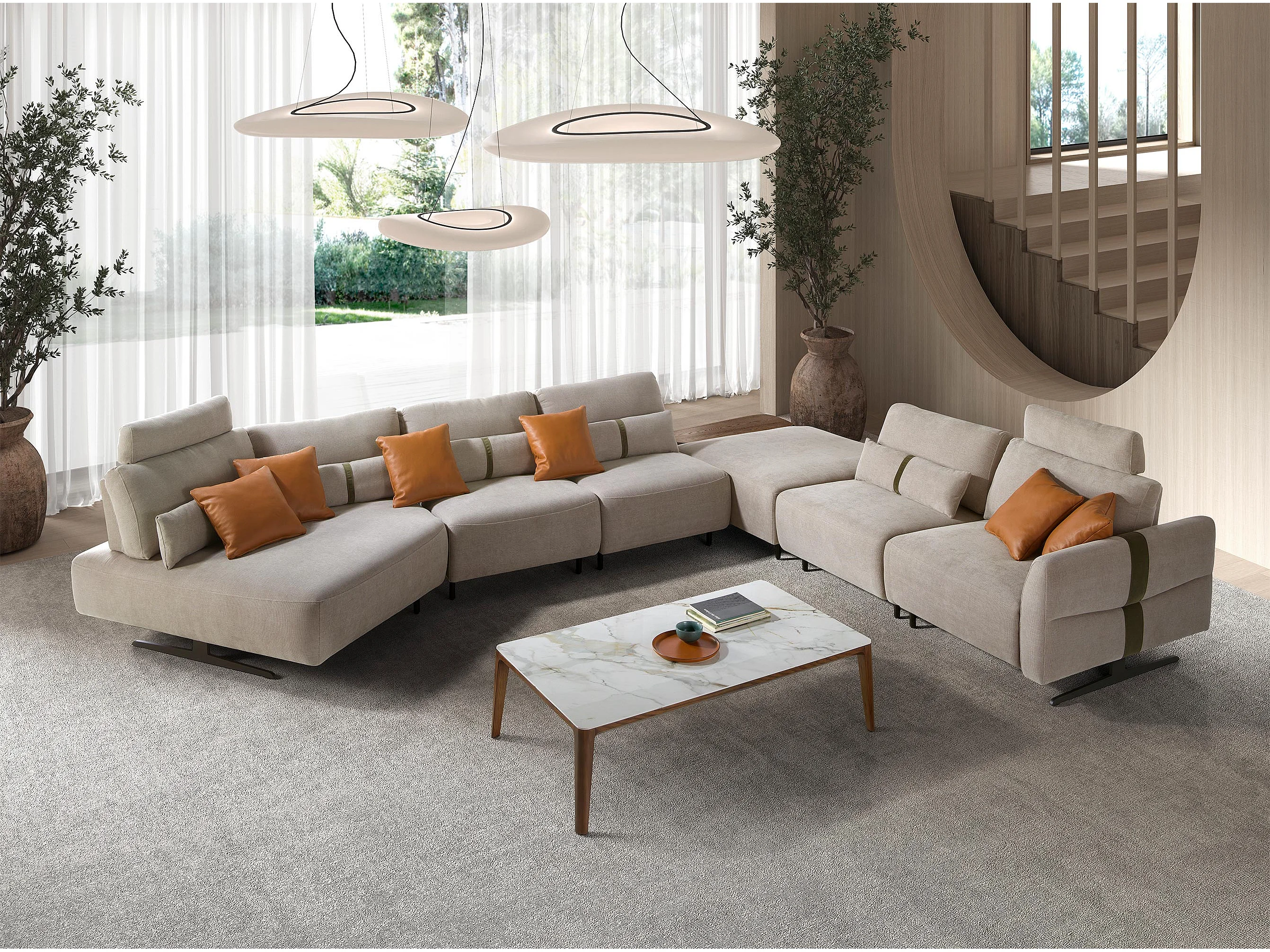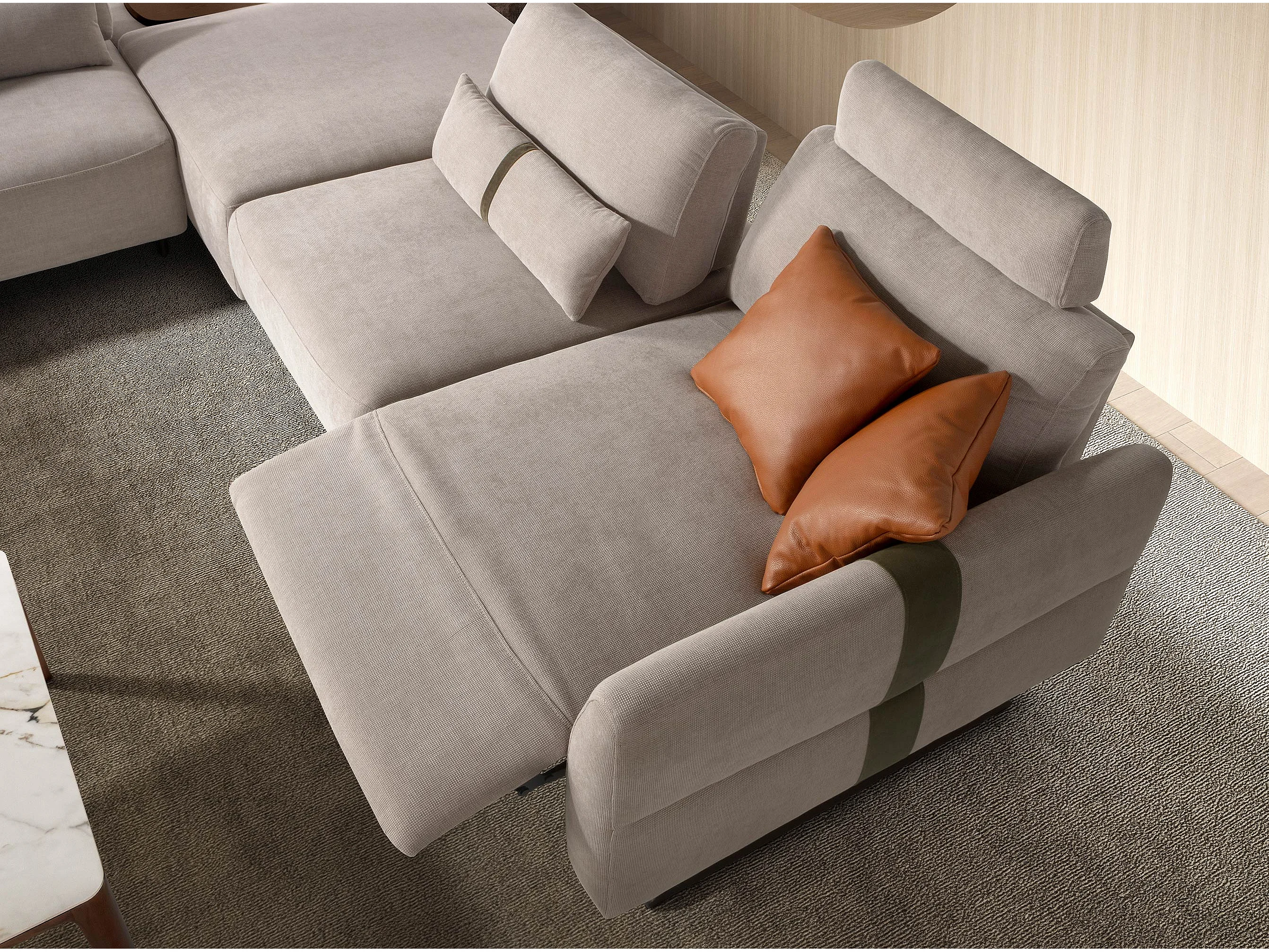 Modulaire relaxbank met chaise longue links, stof zandkleurig 6274 ANGEL CERDA