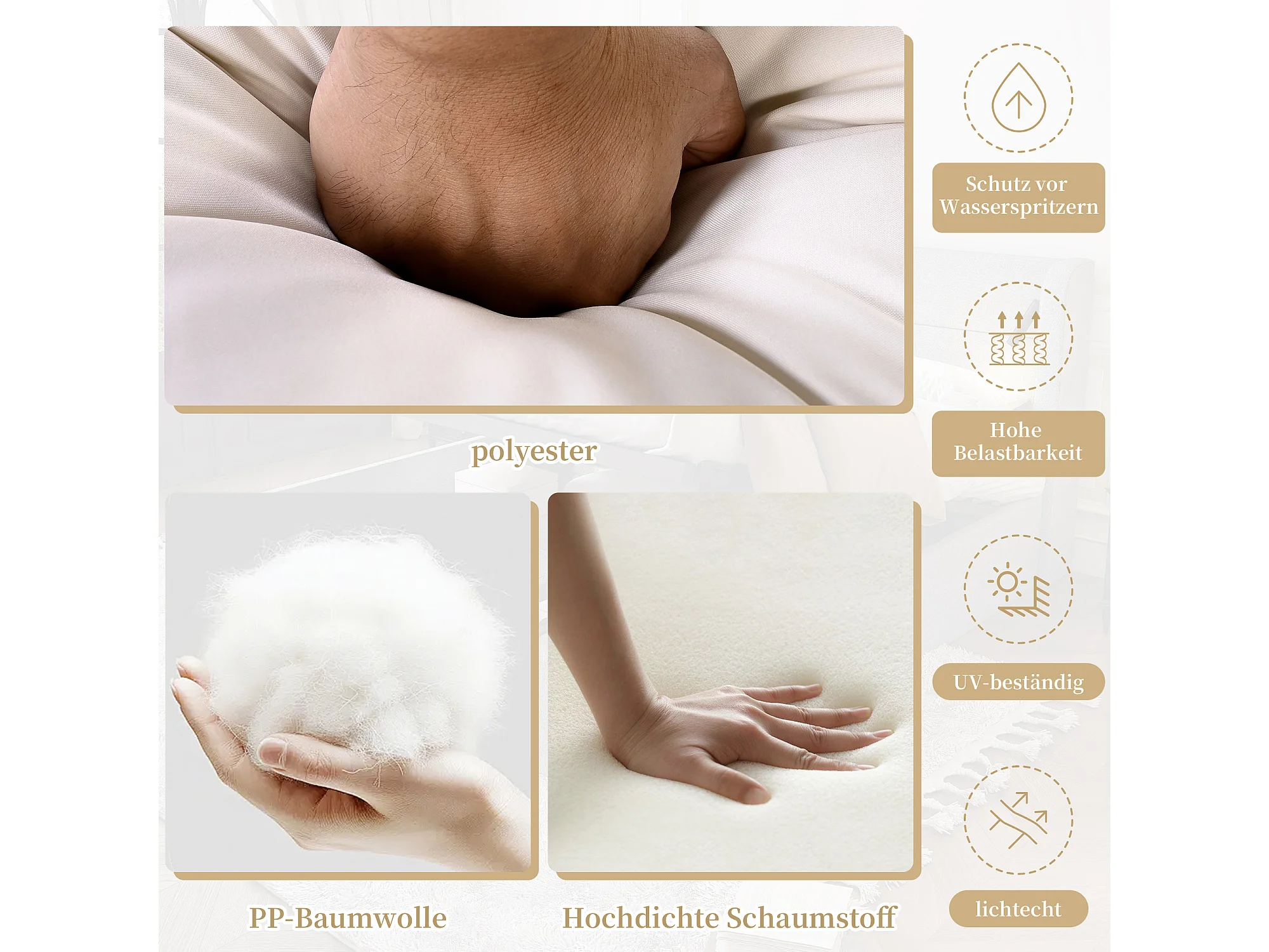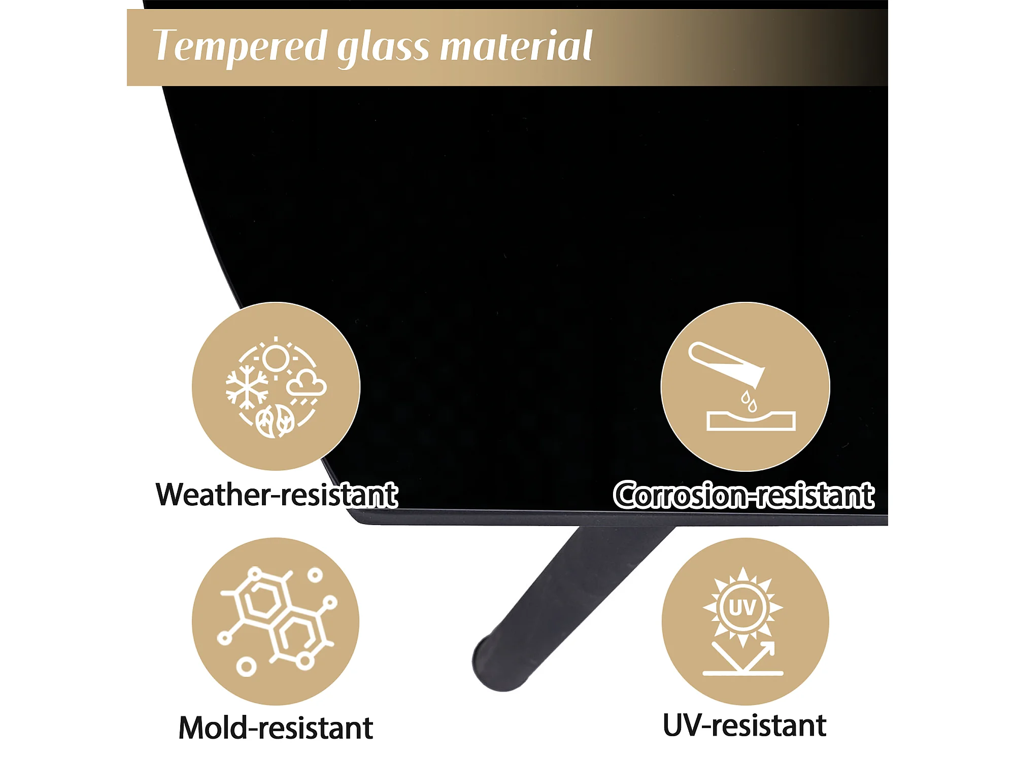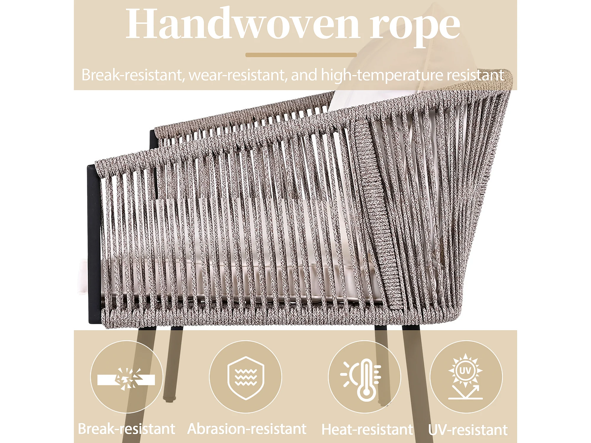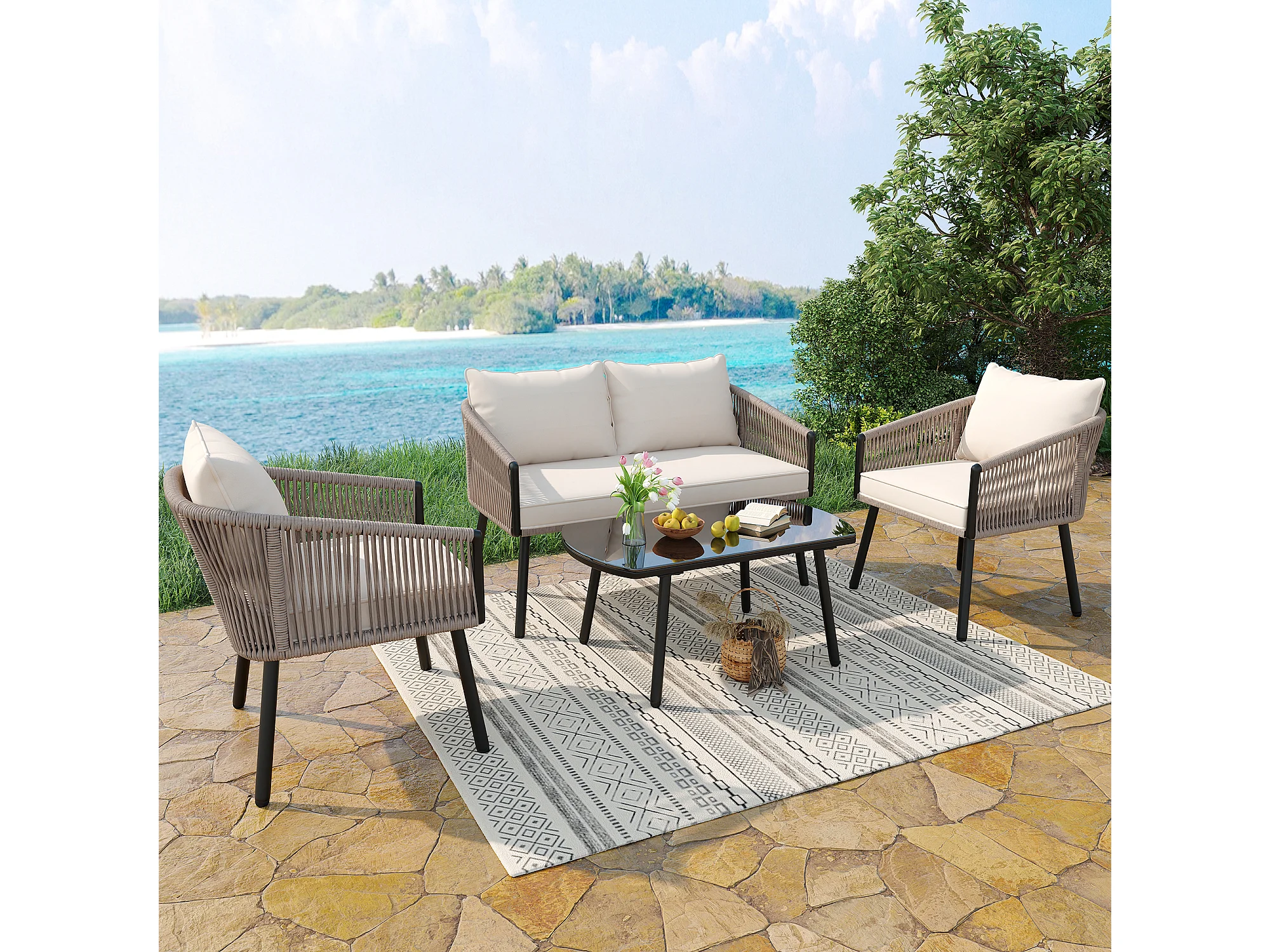 Modulaire tuinset van gegalvaniseerd staal voor 4 personen - 2-zitsbank en 2 eenpersoonsbanken + glazen salontafel - beige