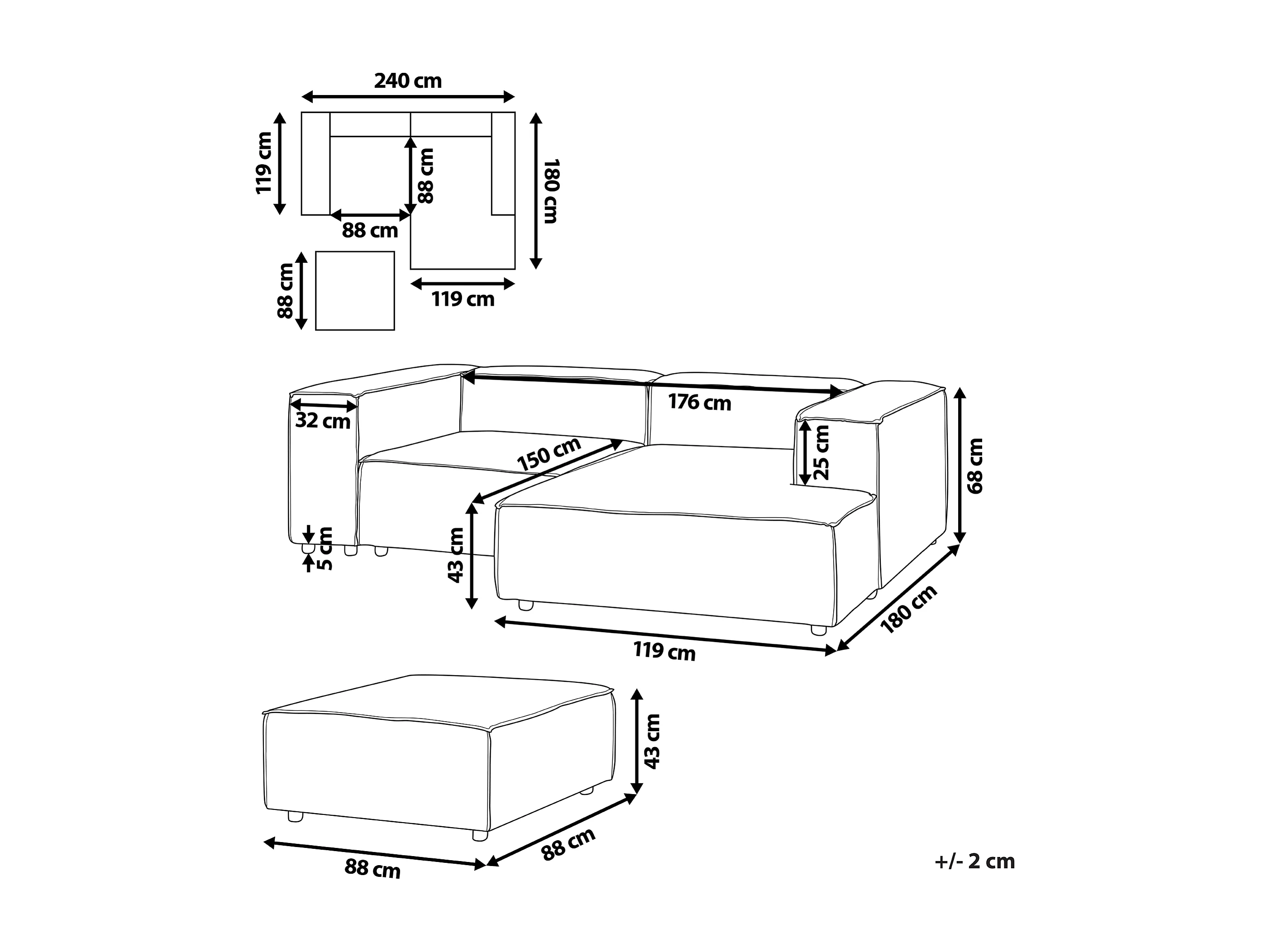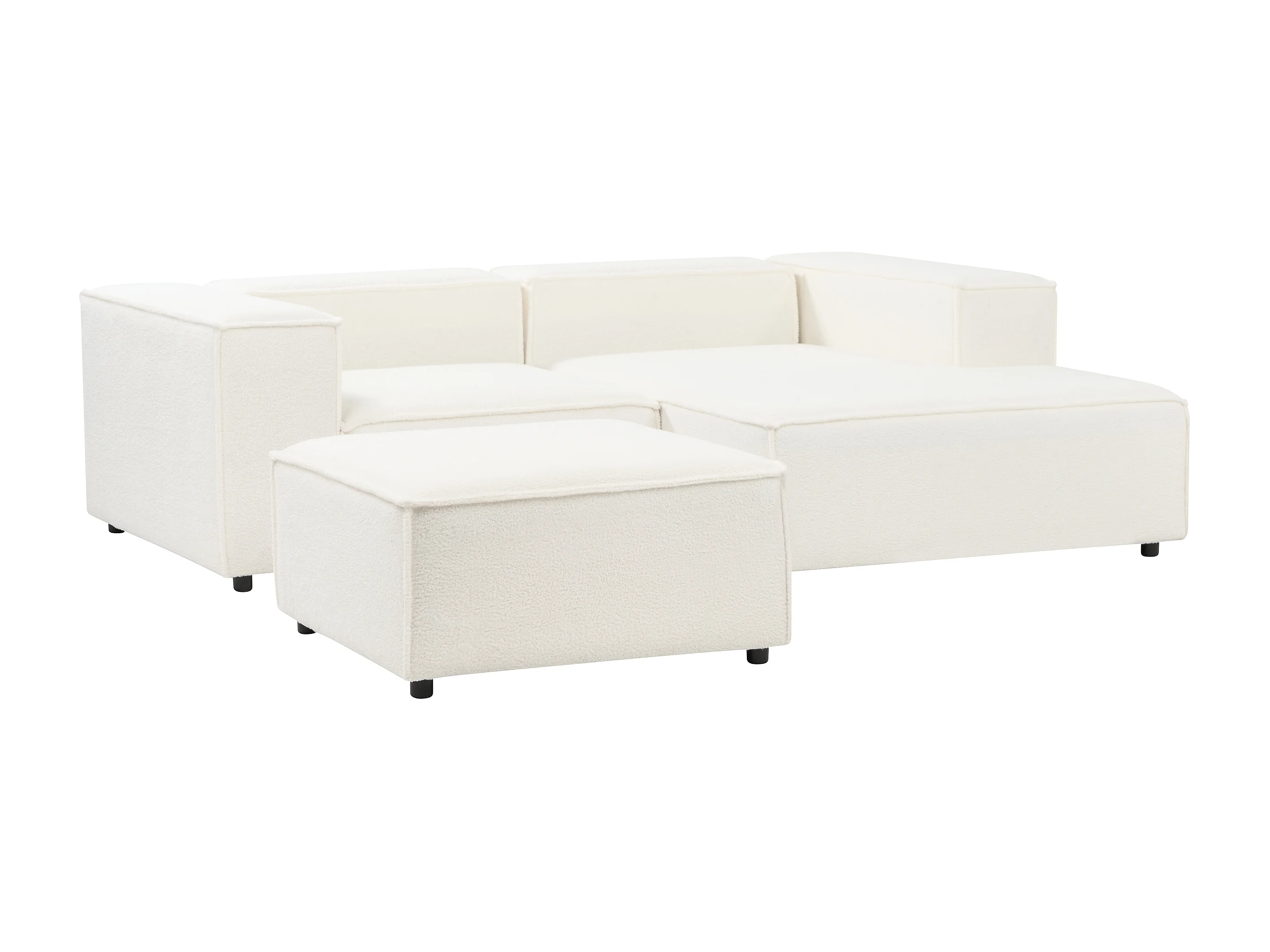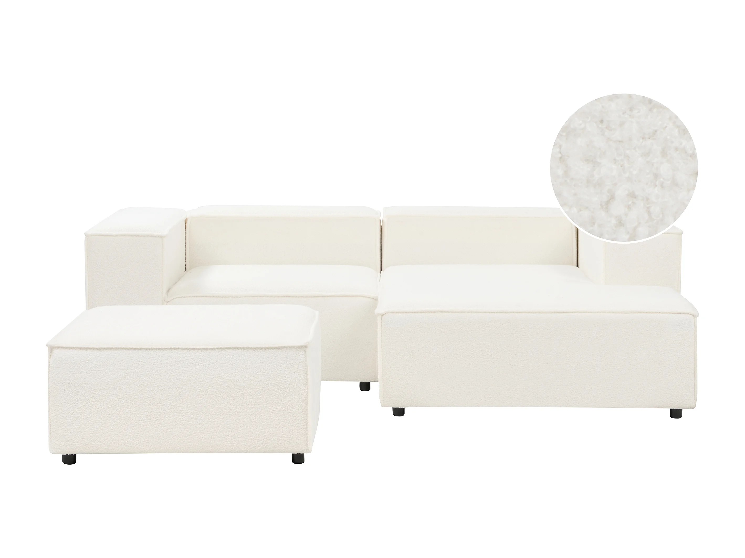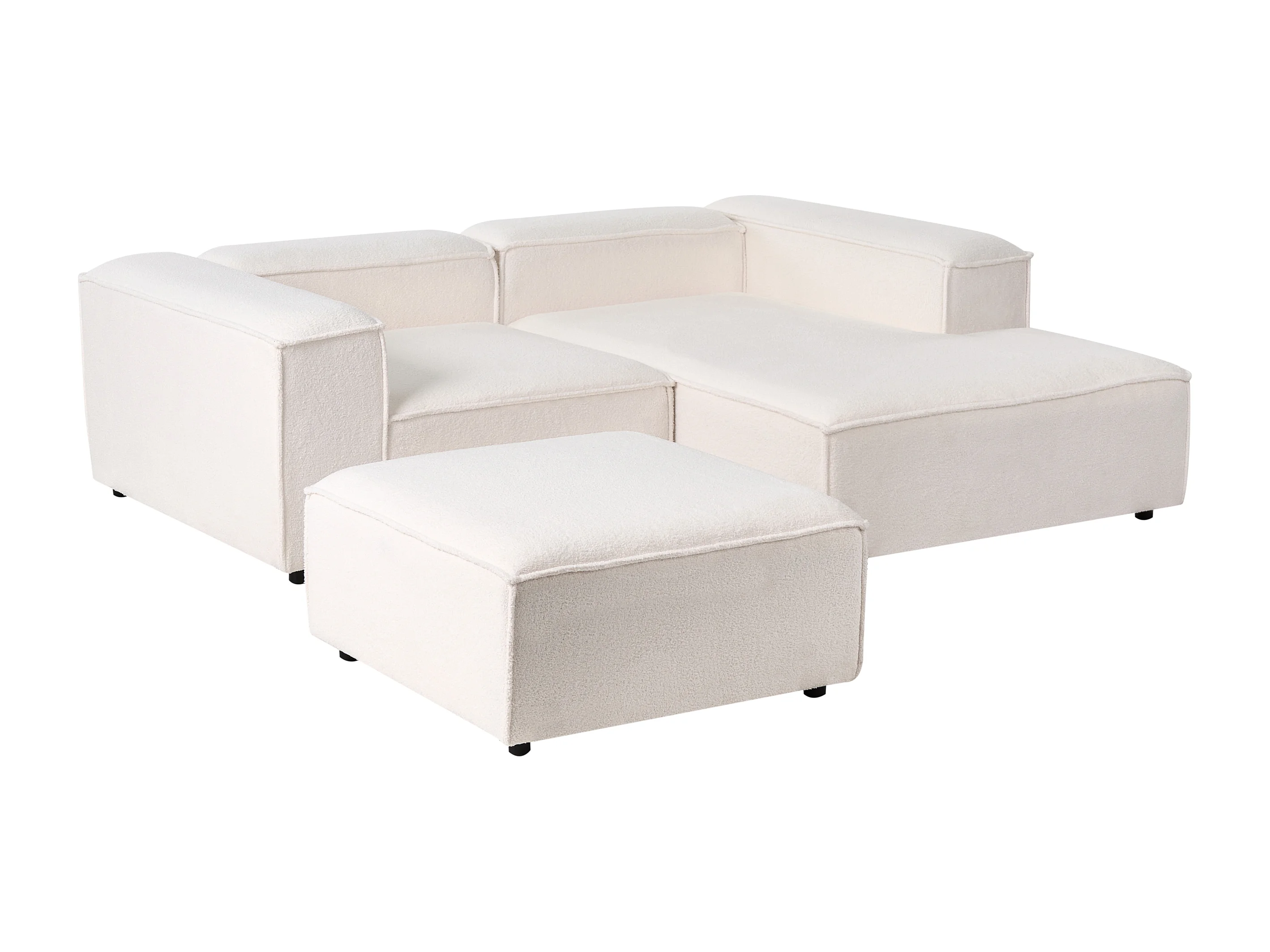Modulaire tweezitsbank met ottomaan bouclé wit linkszijdig APRICA