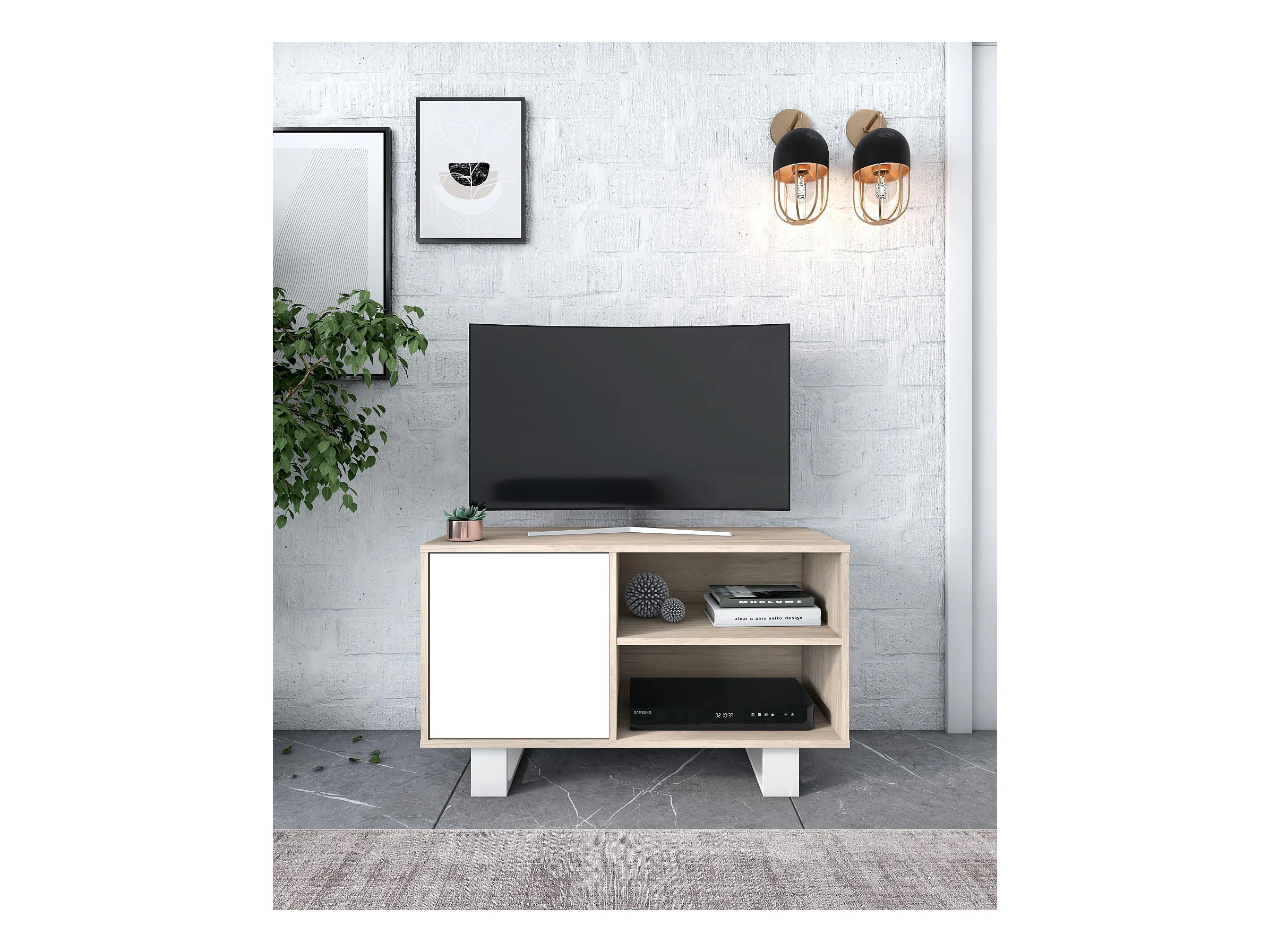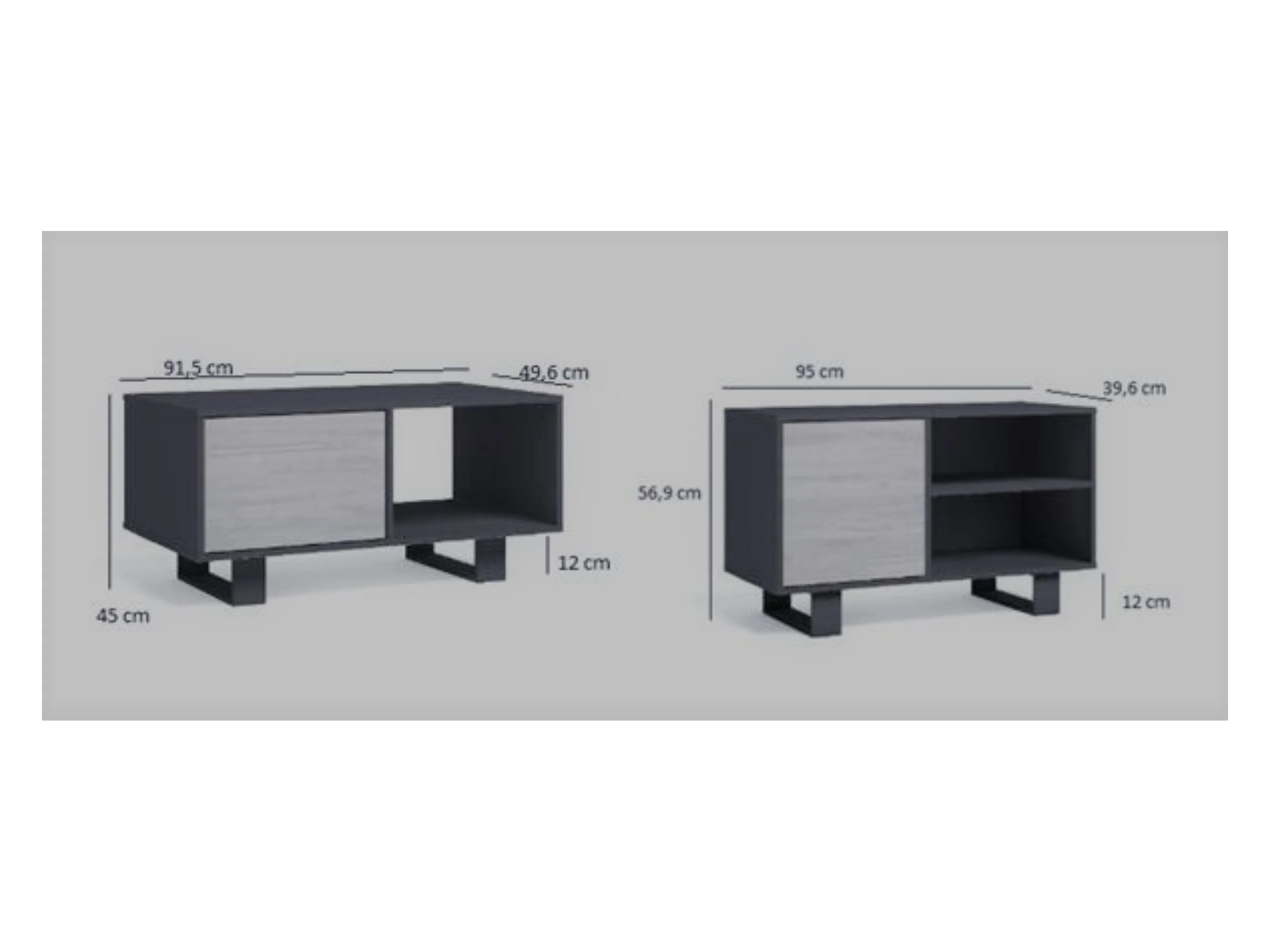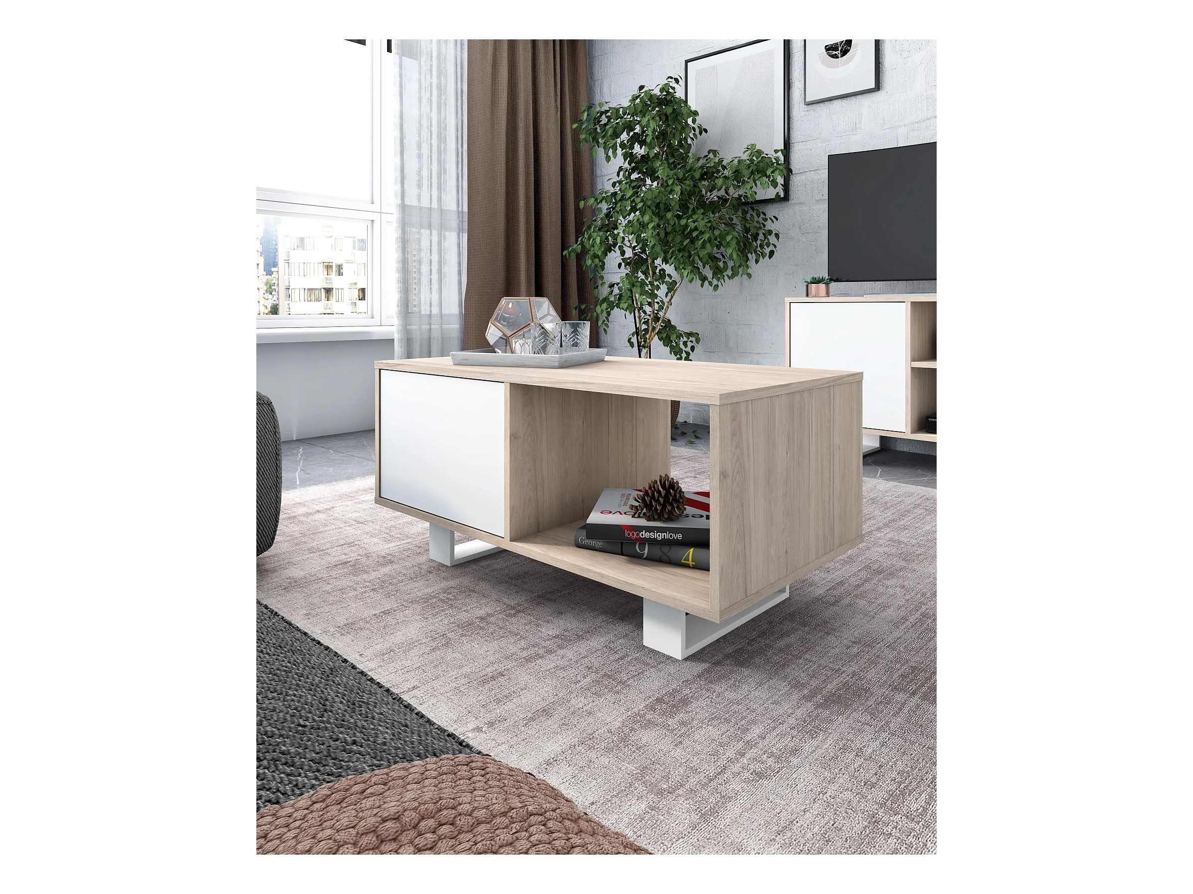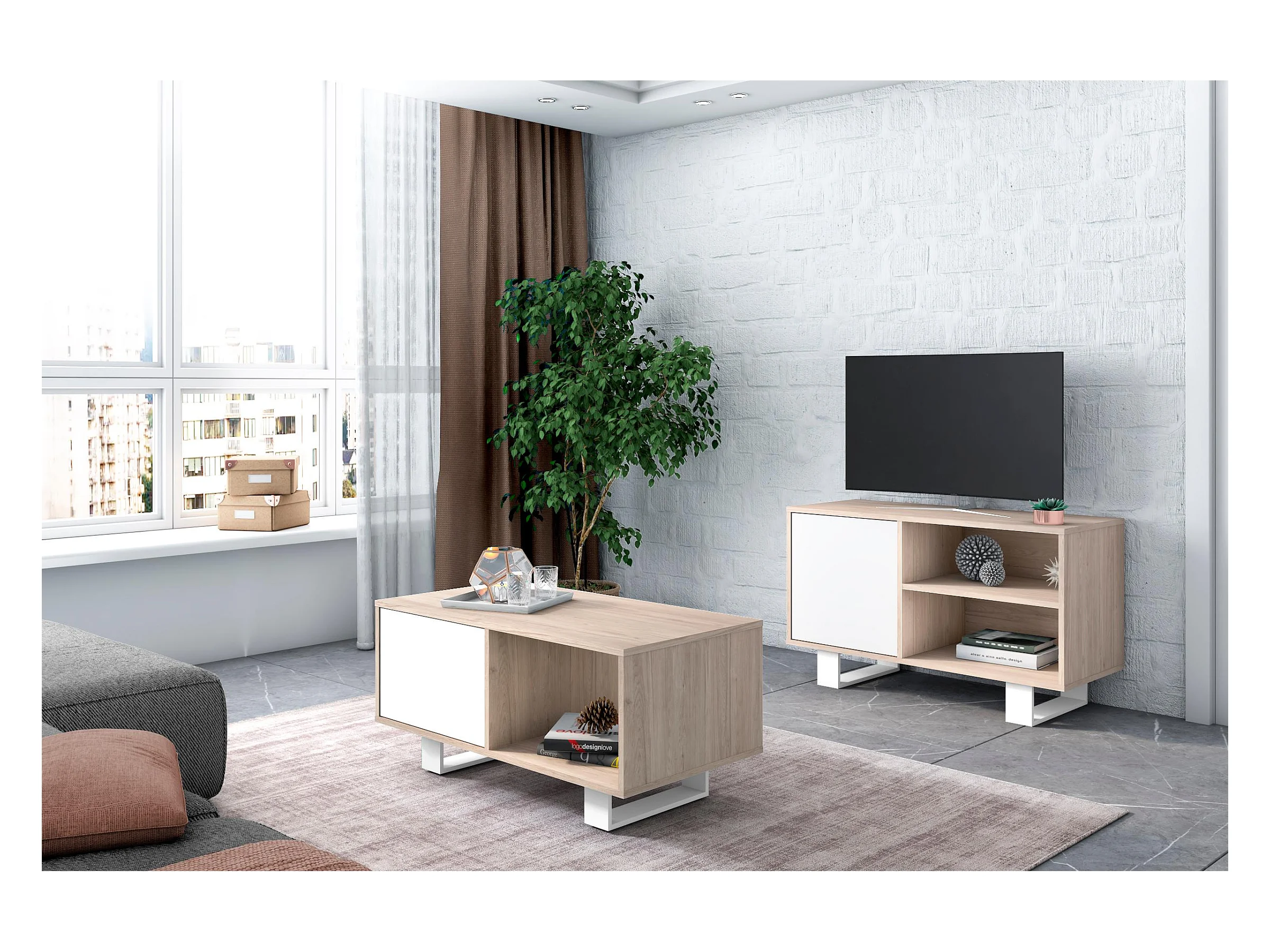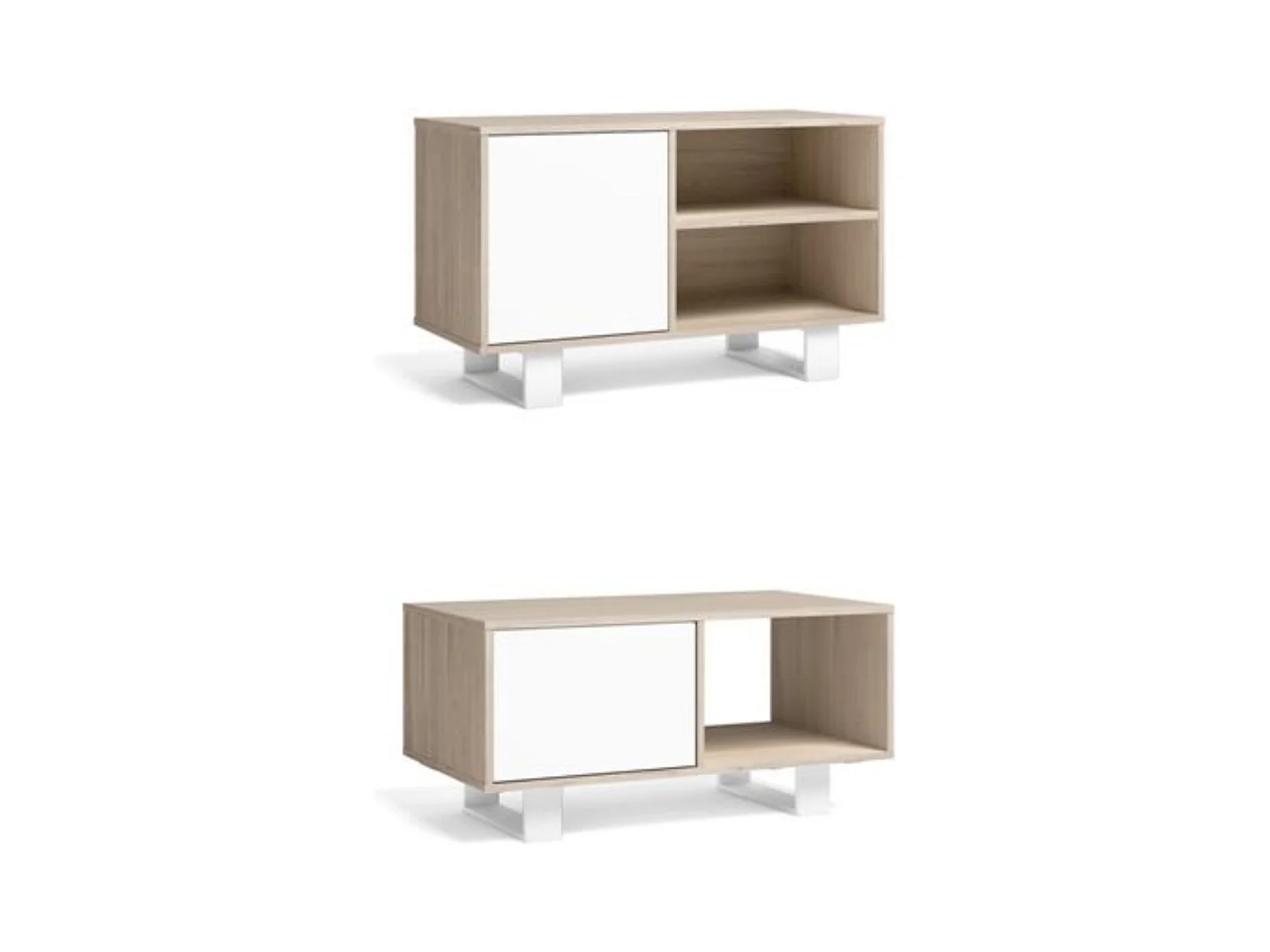 Modulaire woonkamer set, Windmodel, 92x50x45 cm / 95x40x57cm, 1 middentafel en 1 tv -meubels, Eik en wit, Noordse stijl