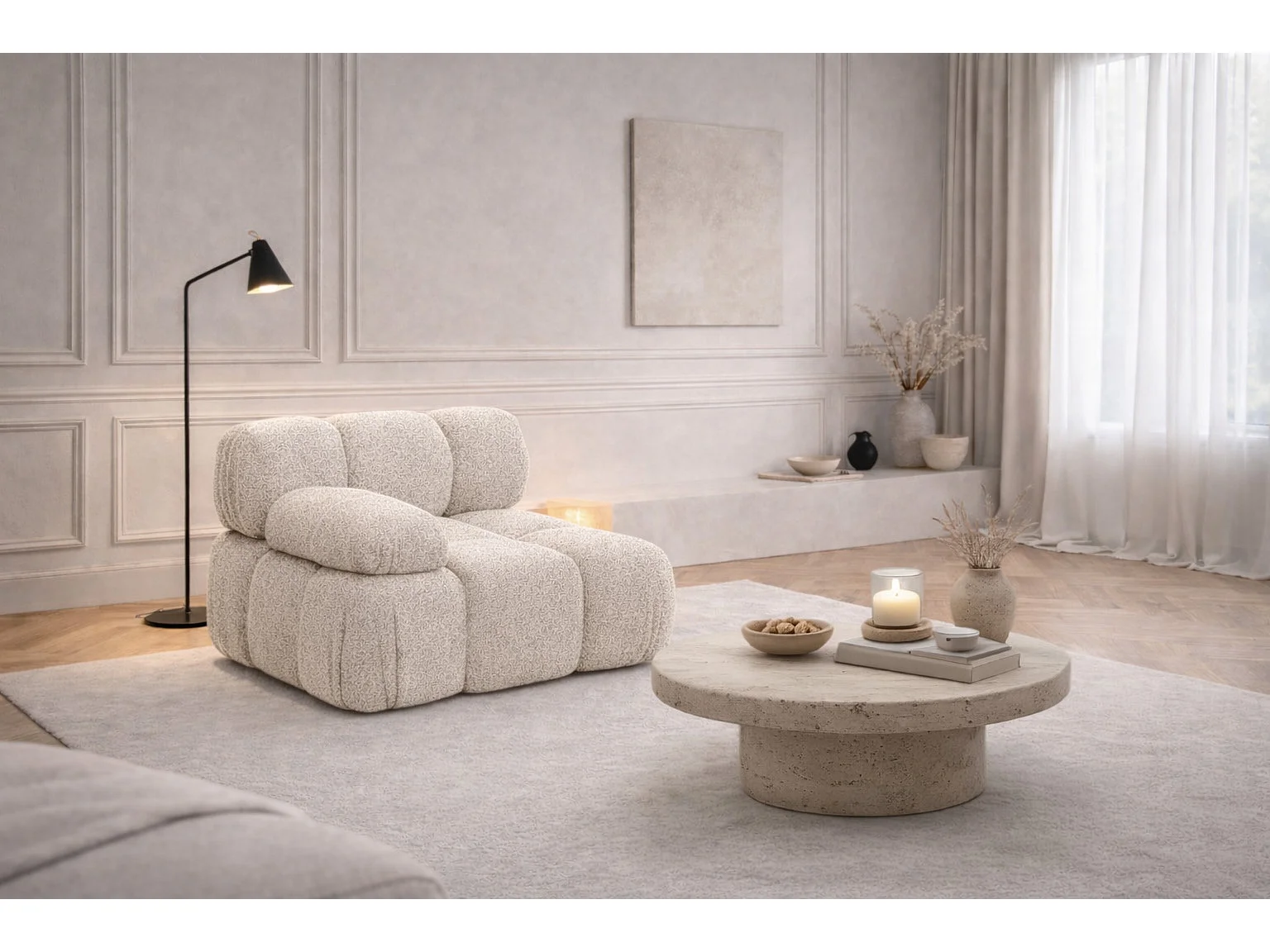 Module zijkant voor een modulair systeem, stof Abriamo, Beige, Links, Selia
