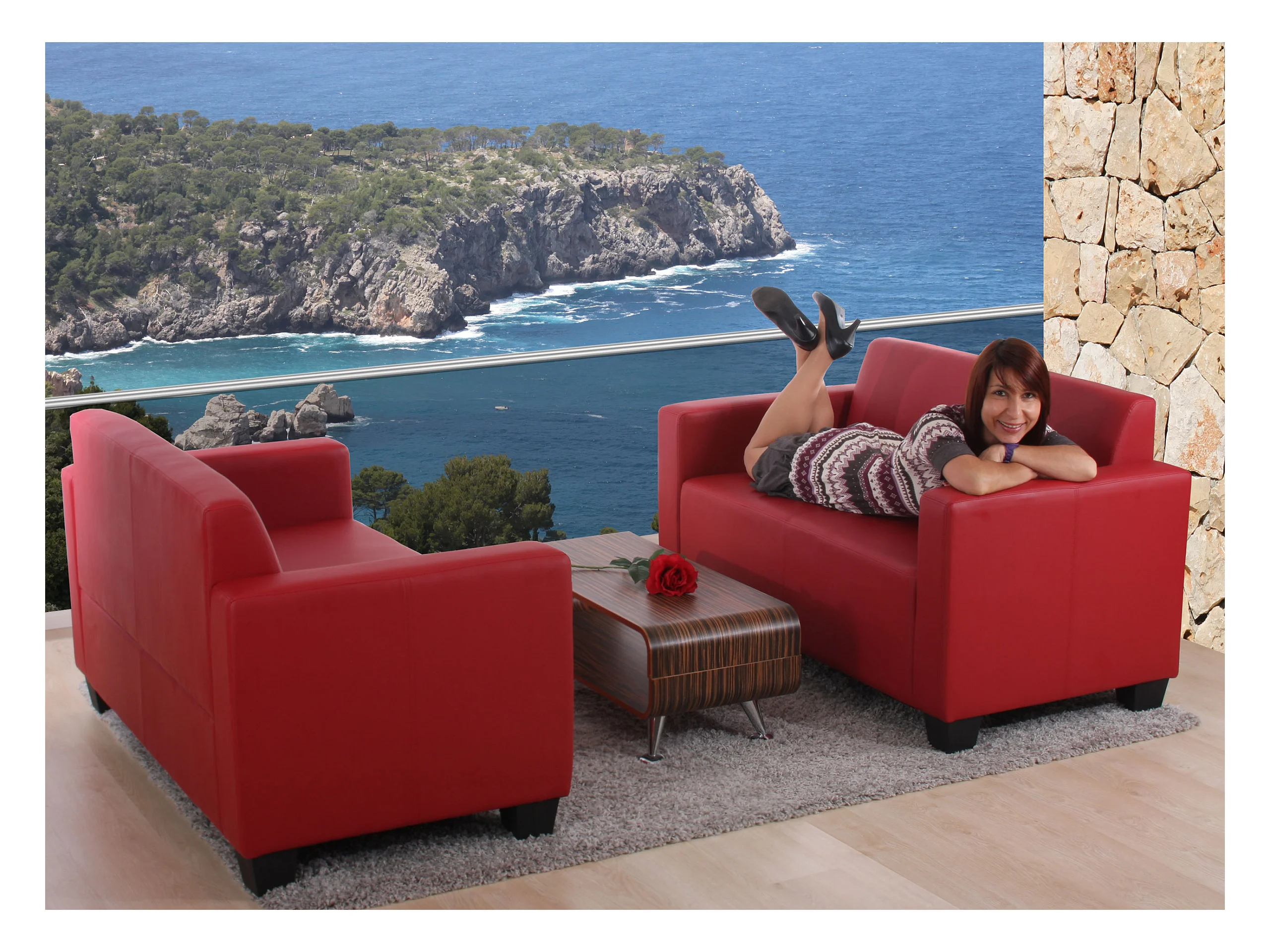 Moncalieri bankstel (set van 2), rood