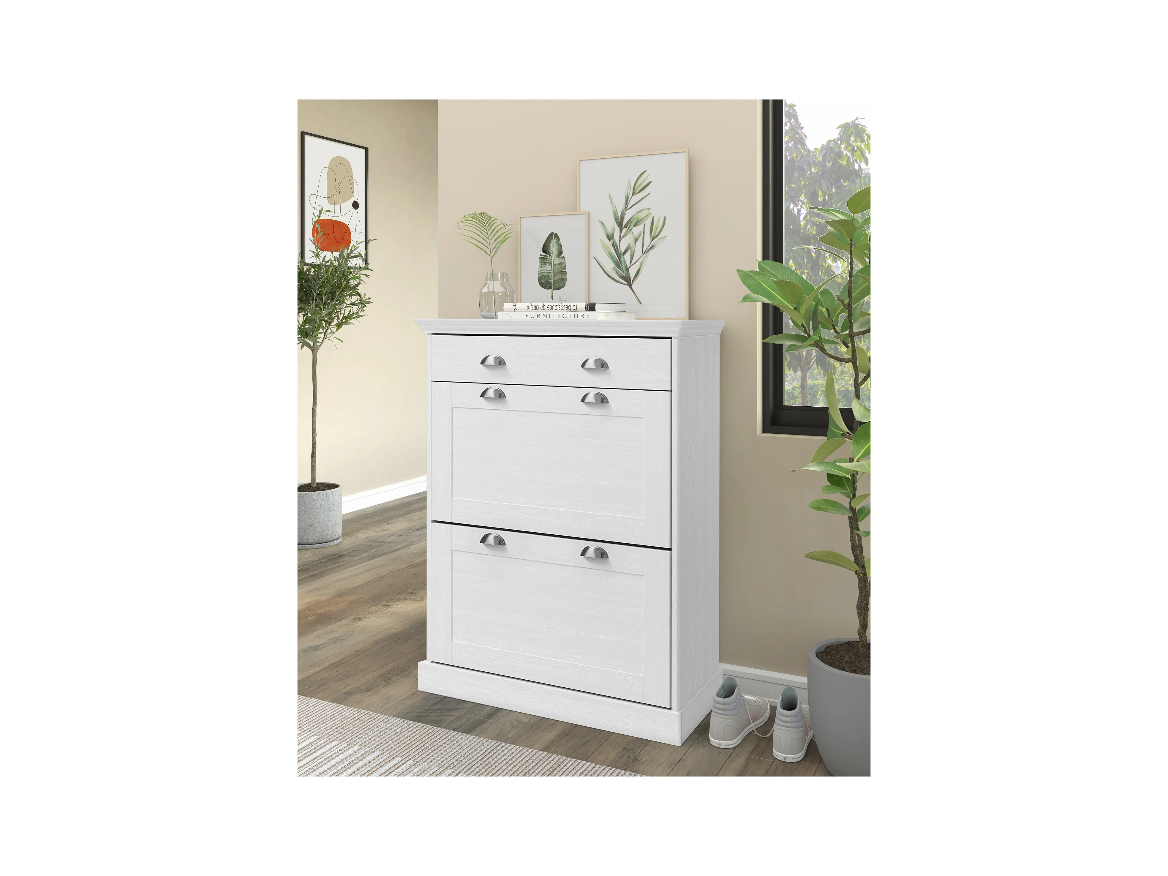 Motala | Schoenenopberger met 2 klepdeuren en 1 lade in dennenwit