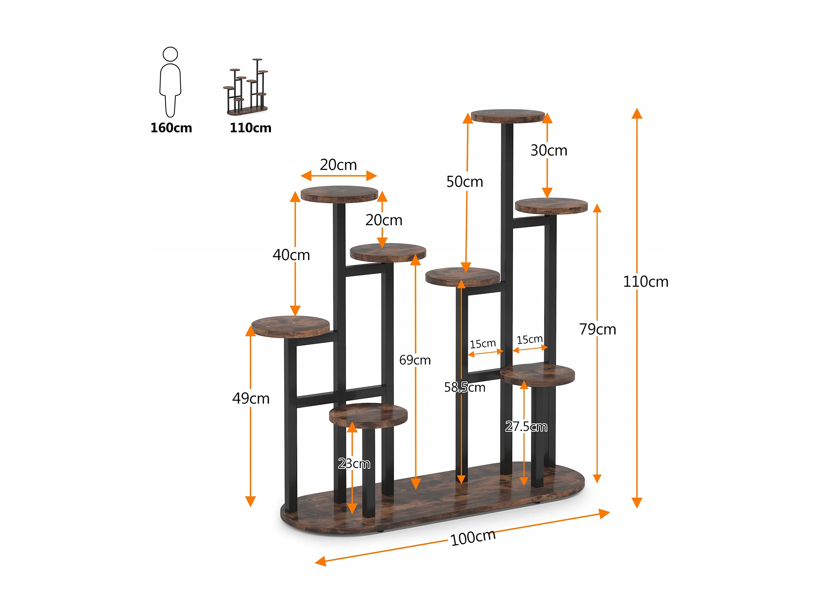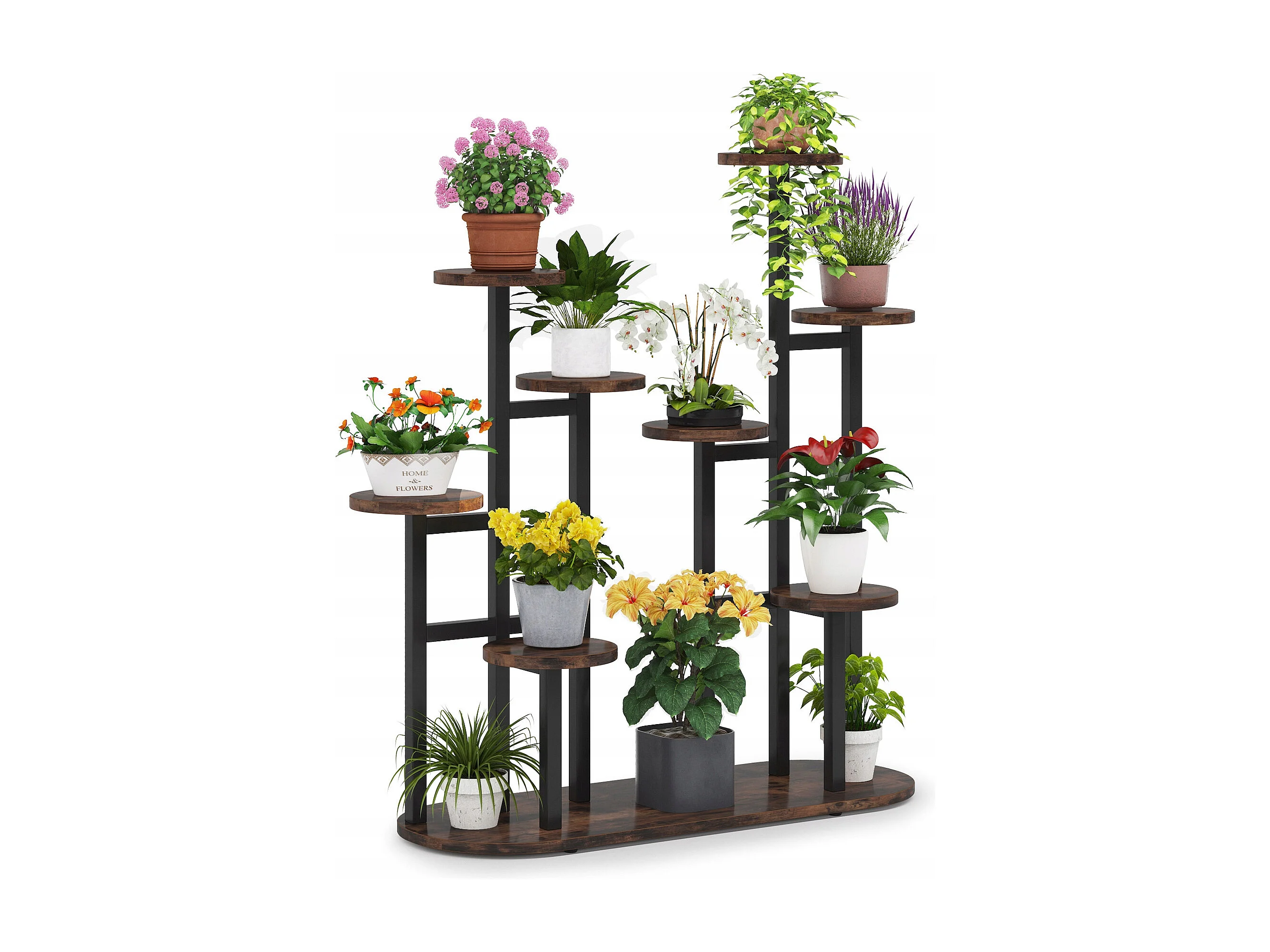 Multi-Tier Indoor Plantenstandaard voor 11 Bloempotten, Opbergrek voor Tuin, Balkon, Woonkamer, Rustiek Bruin