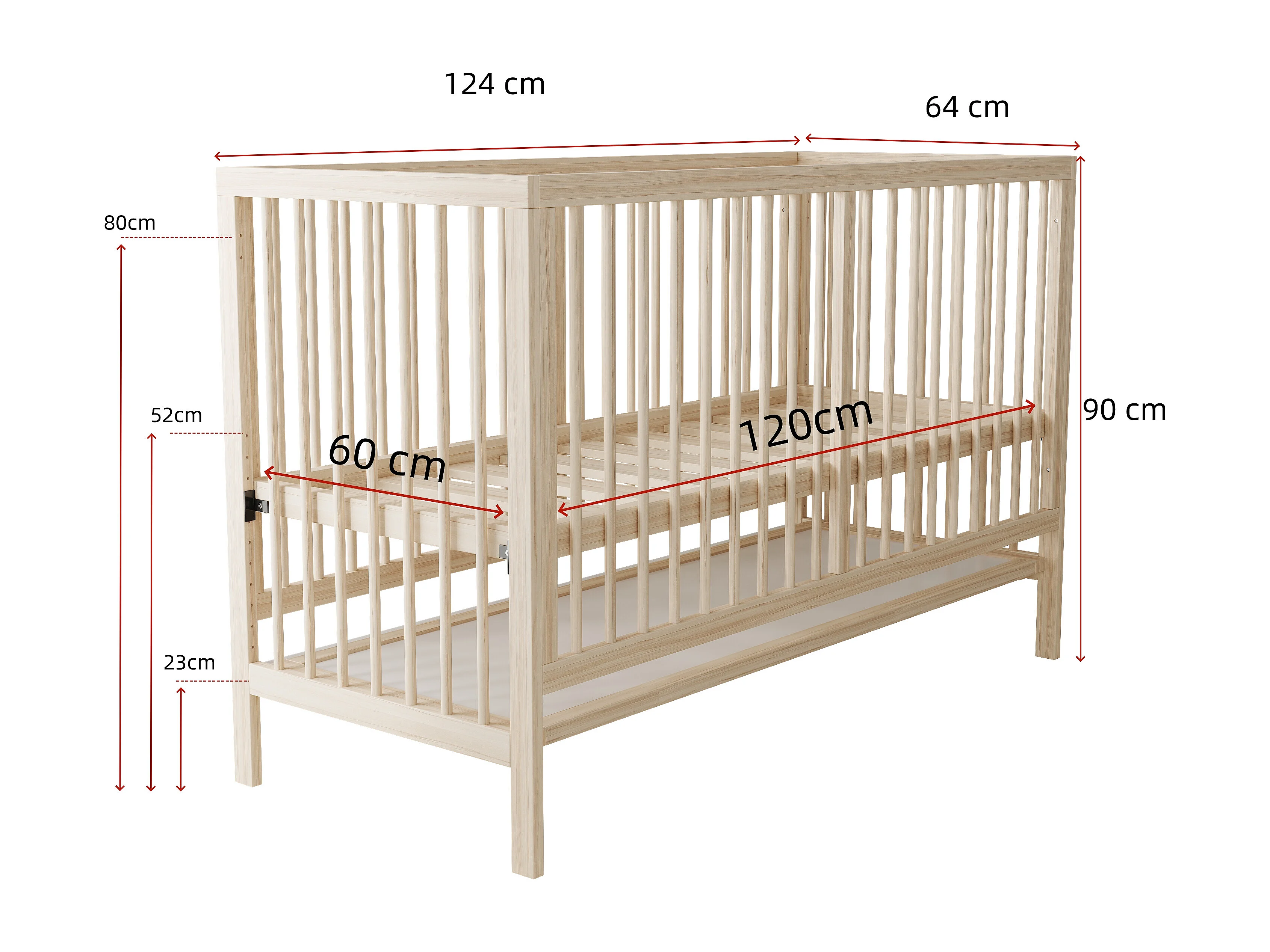 Multifunctioneel houten babybedje - 120 x 60 x 90 cm - ombouwbaar - zonder matras - naturel