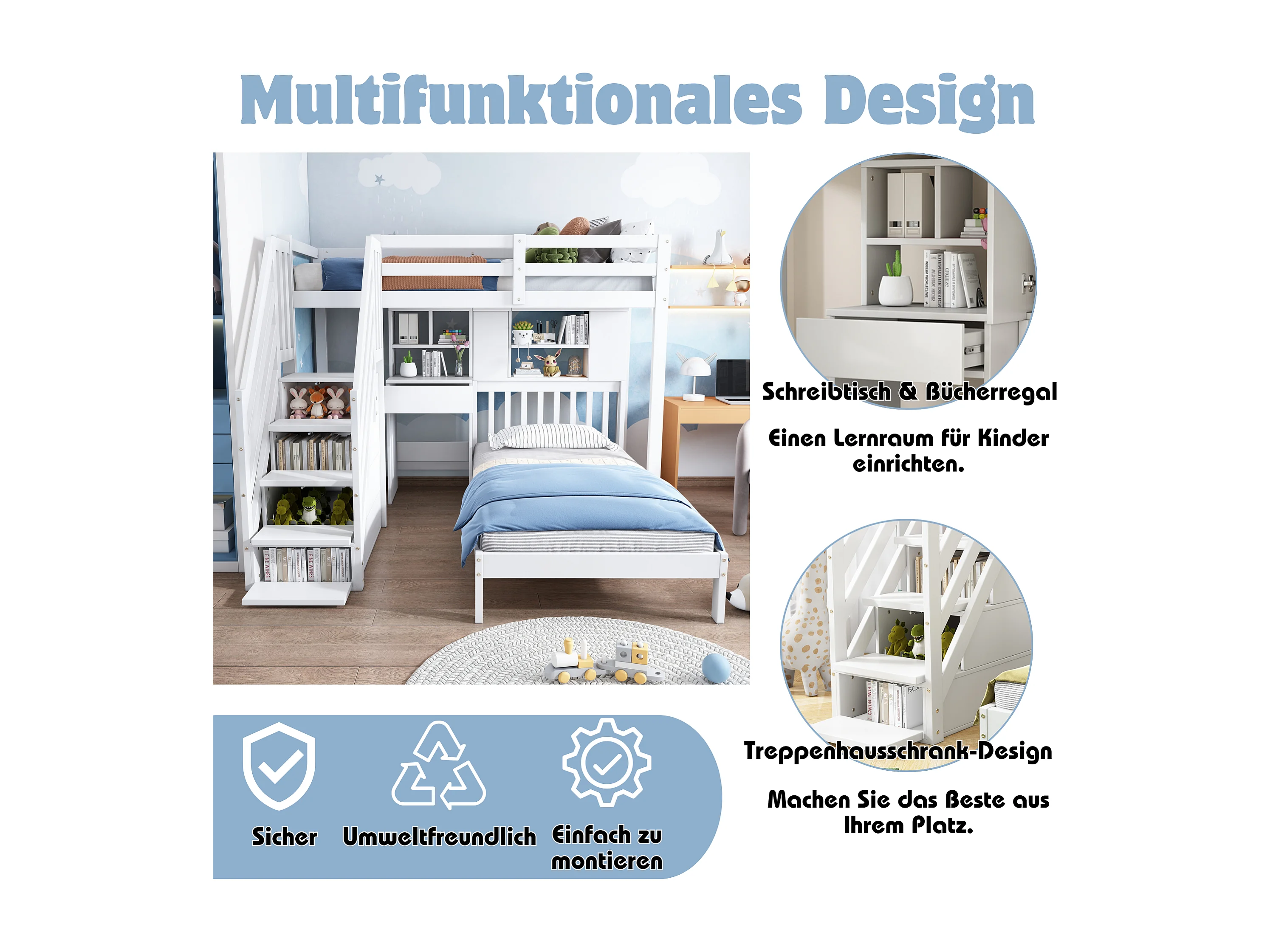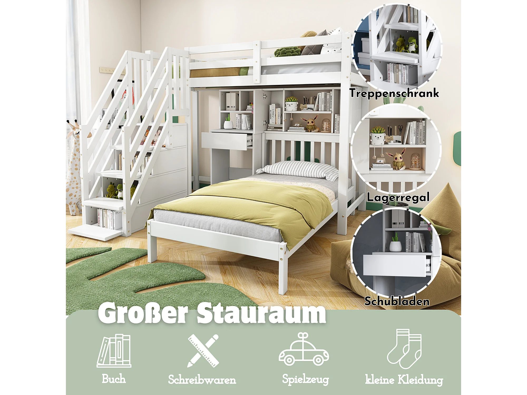 Multifunctioneel kinderstapelbed - 90 x 200 - met opbergruimte - met bureau en planken - grenen - wit