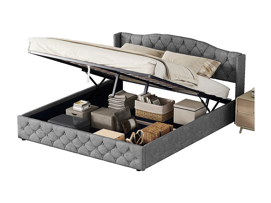 Multifunctioneel platformbed 180x200 cm met hydraulische opbergruimte, grijs (208,5x185,5x94 cm)