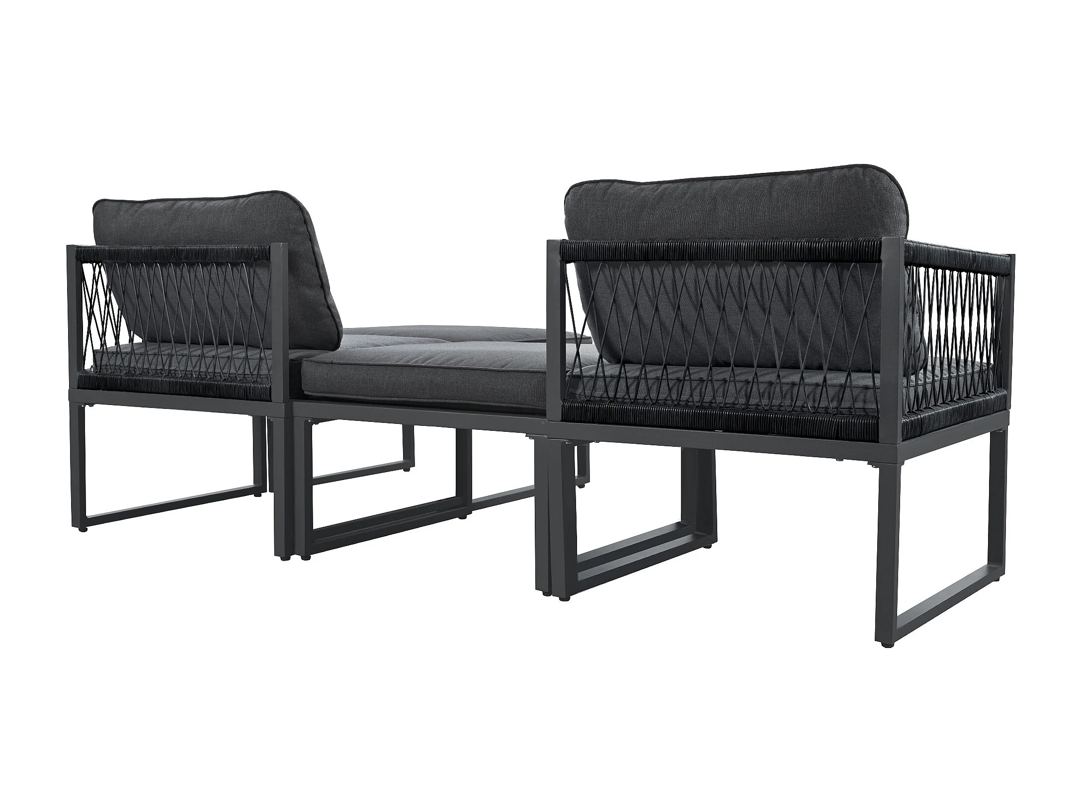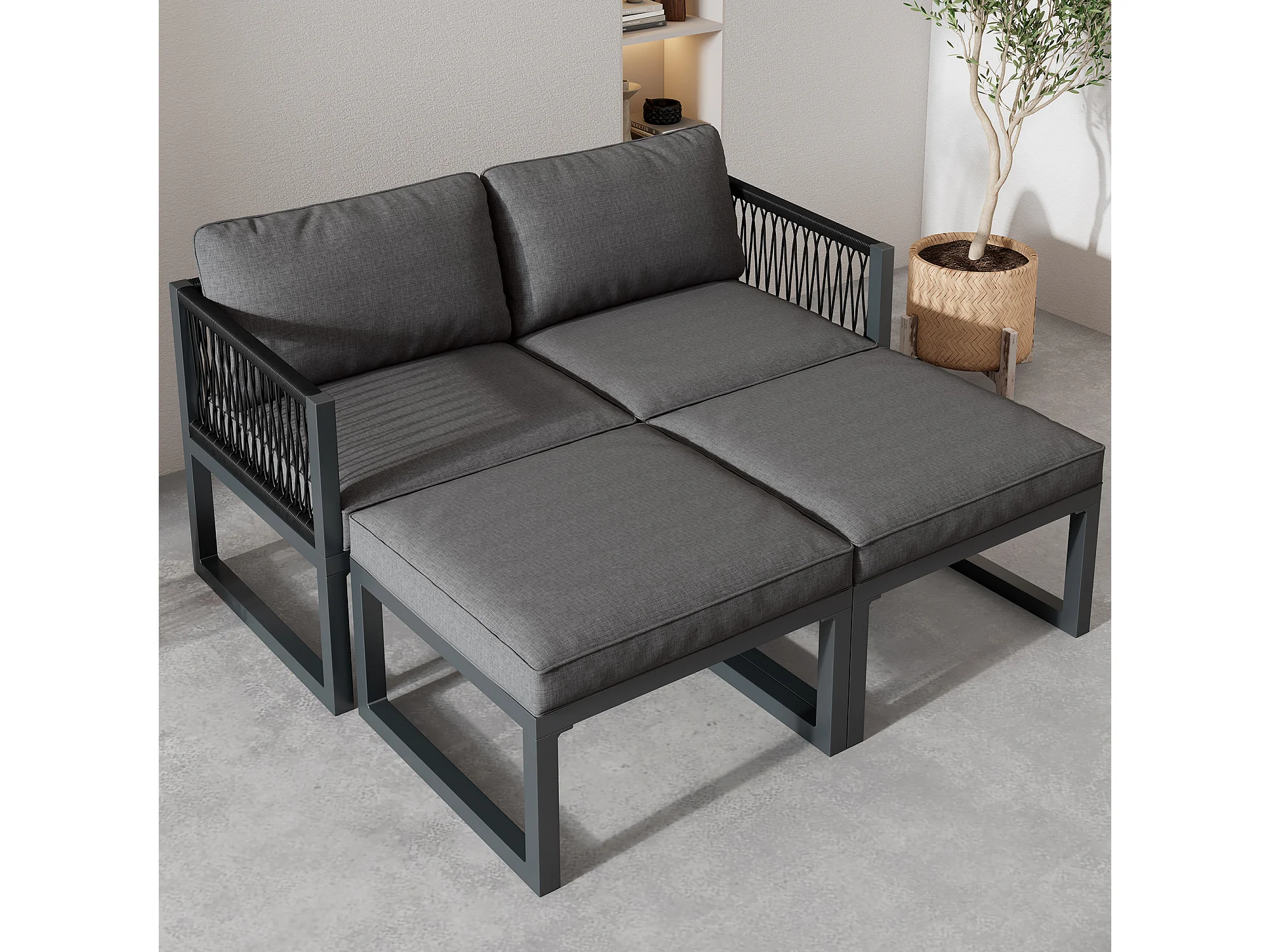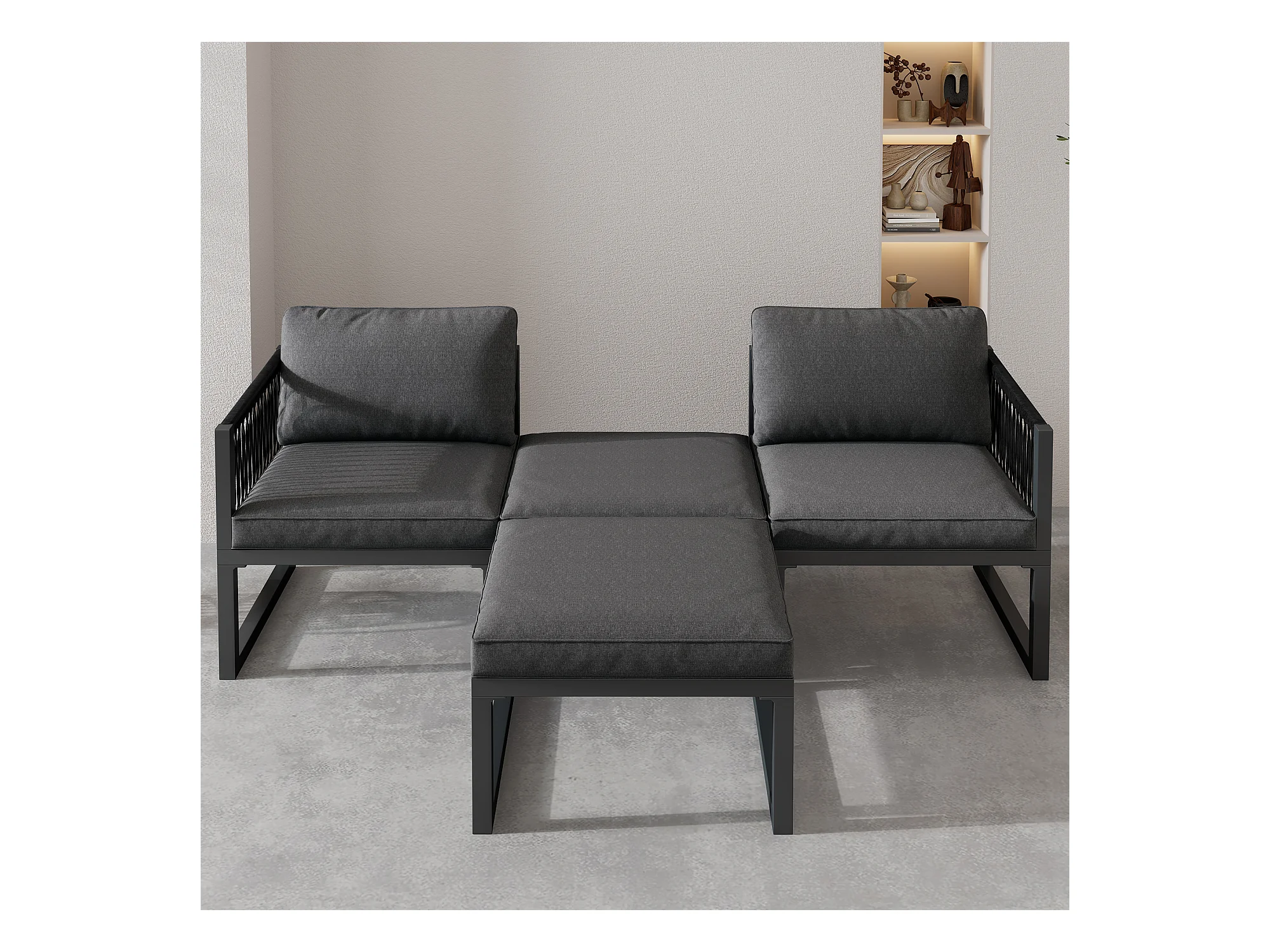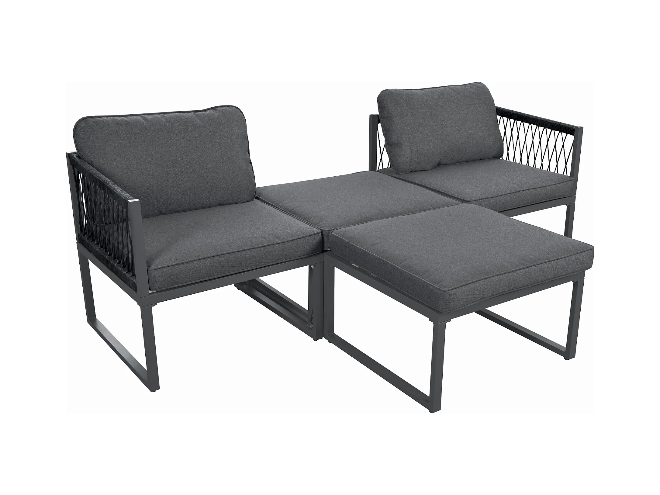 Multifunctionele aluminium tuinmeubelsets - 2 fauteuils, 2 krukken - Grijs
