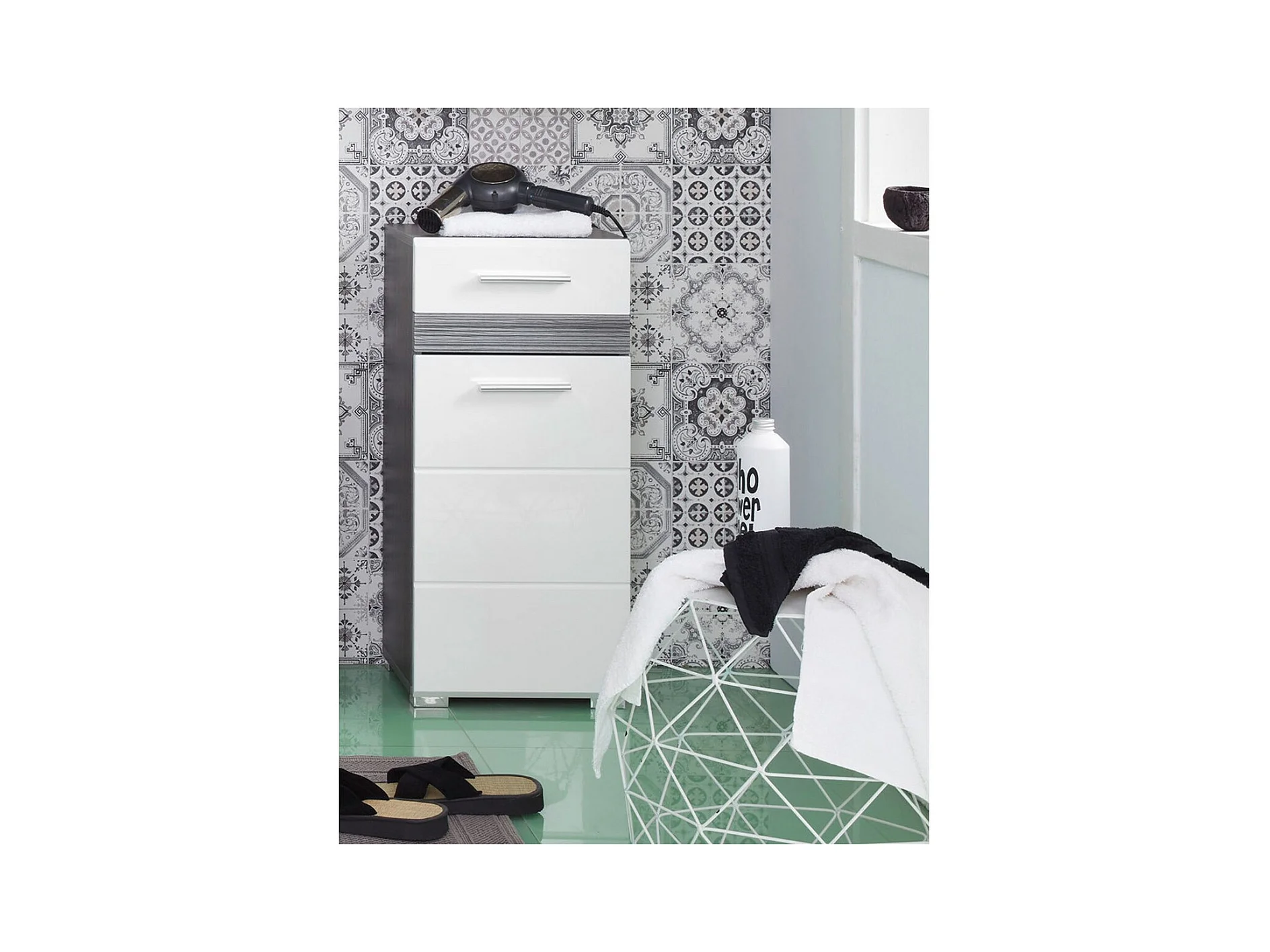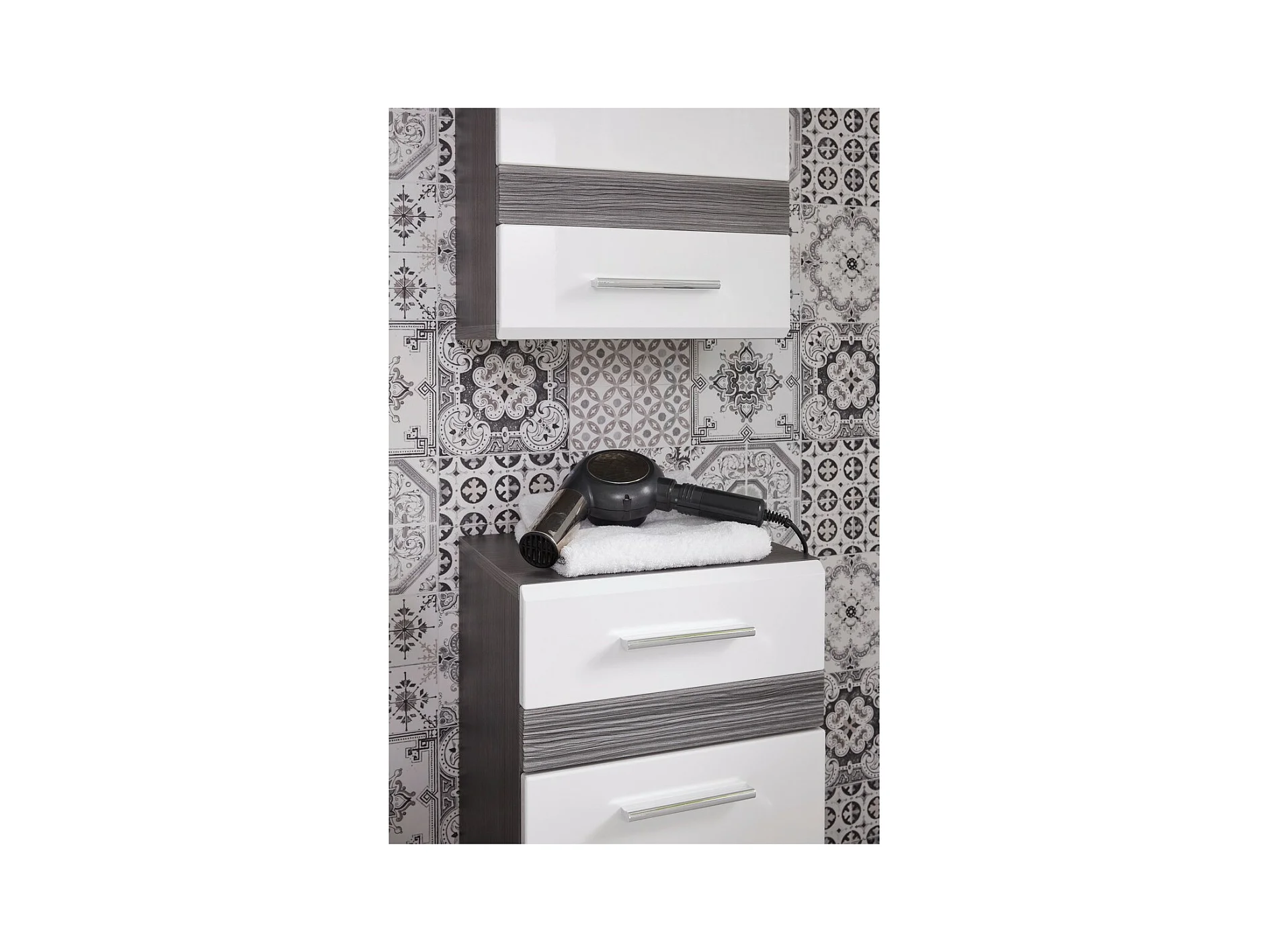 Dsalmas dressoir, Woonkamerbuffet, Woonkamerdressoir, Keukenkast, 121x50 h91 cm, Cement en Wit