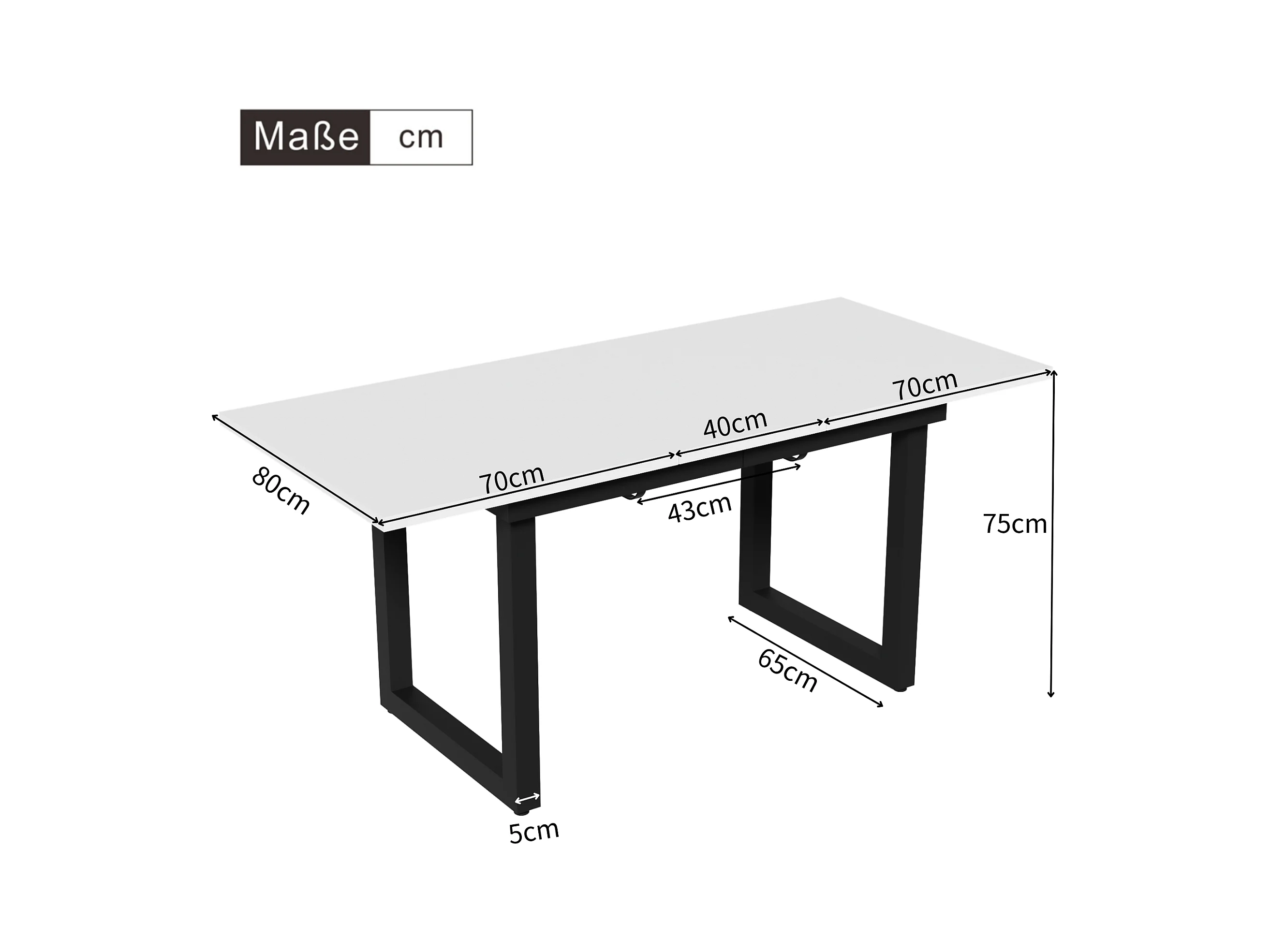 Multifunctionele uitschuifbare stalen eettafel - industriële stijl - Wit