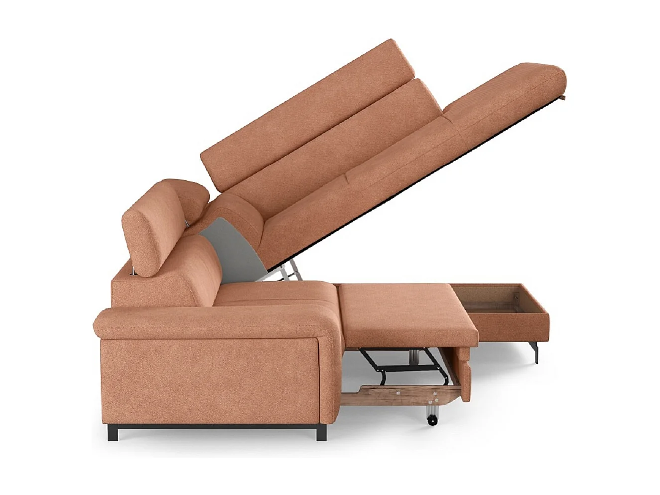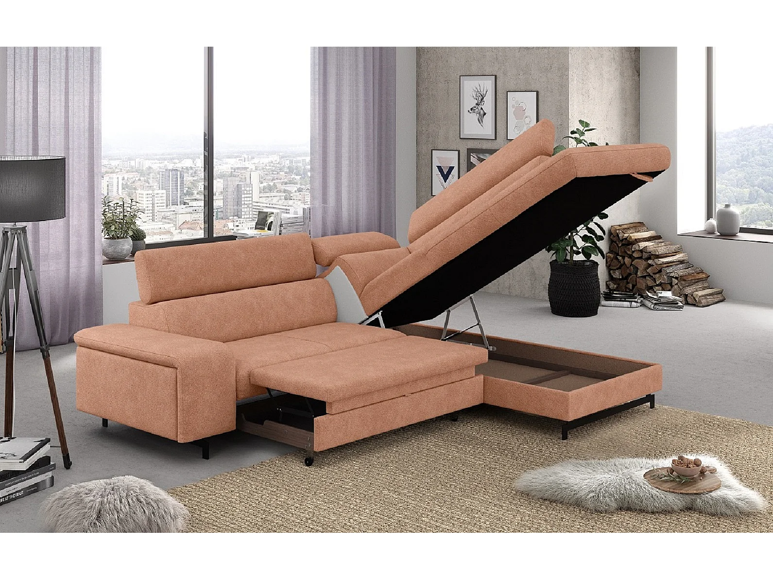 MYHOMELANDO Emma hoekbank – L-vorm met slaapfunctie en opbergruimte, verstelbare hoofdsteunen