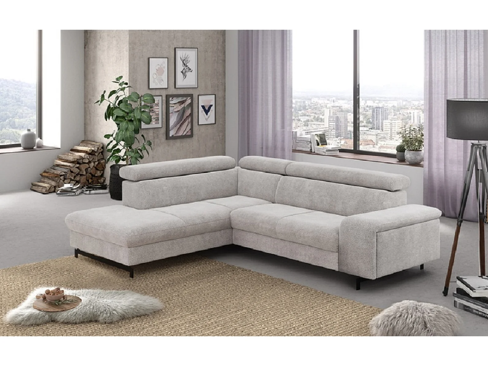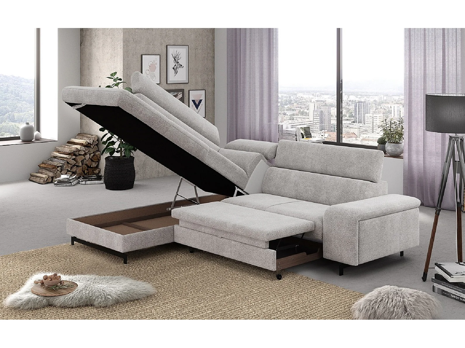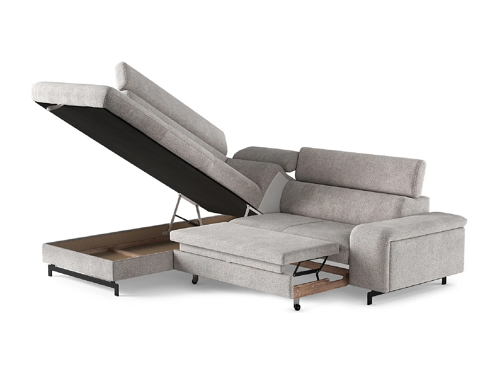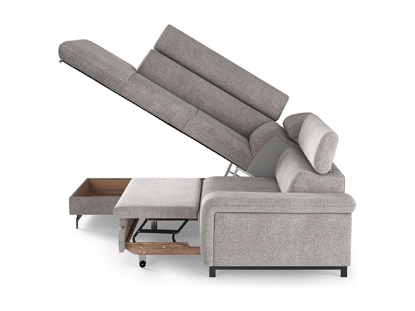 MYHOMELANDO Emma hoekbank – L-vorm met slaapfunctie en opbergruimte, verstelbare hoofdsteunen