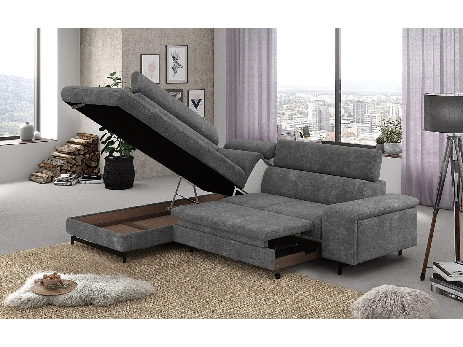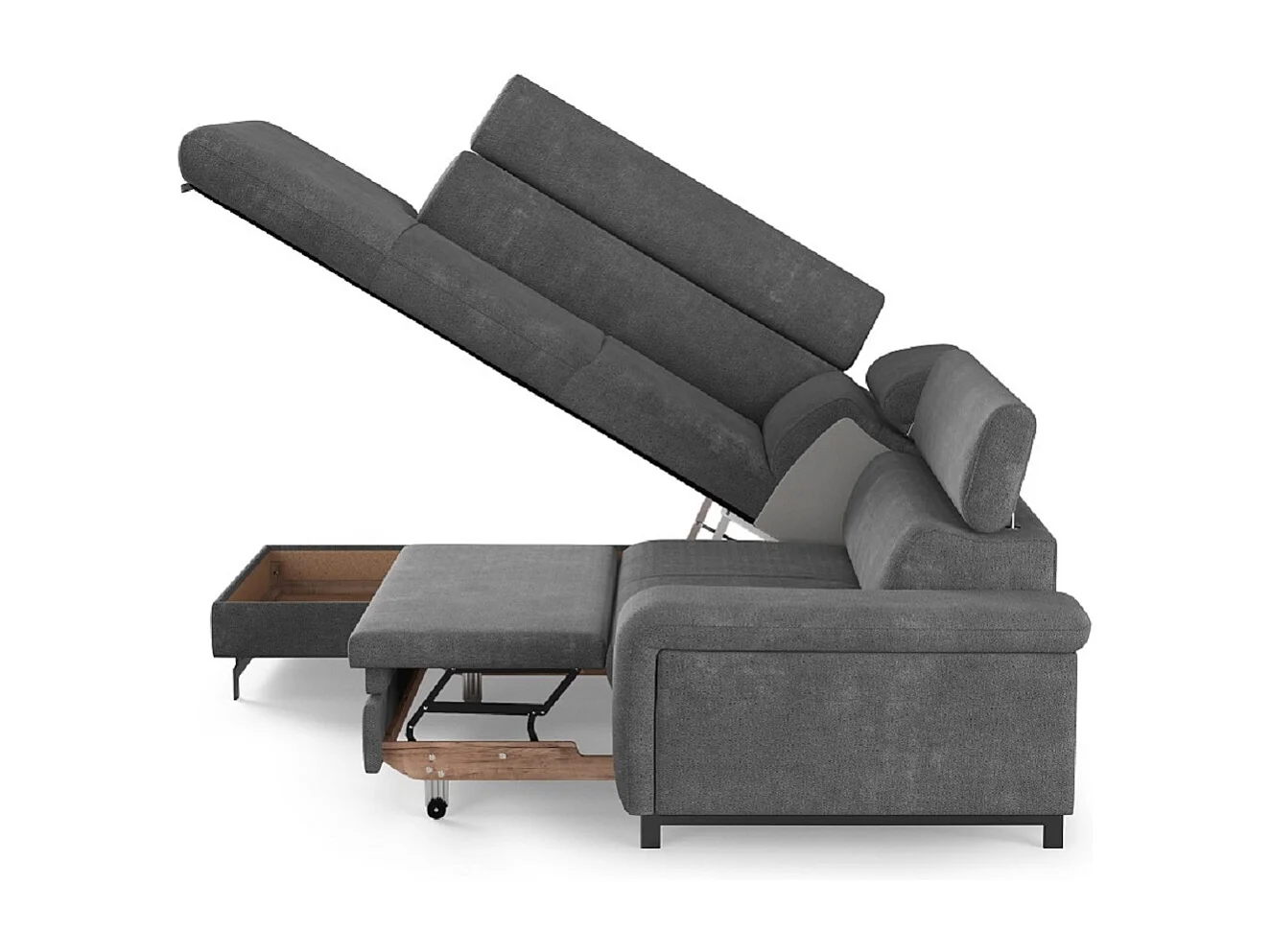 MYHOMELANDO Emma hoekbank – L-vorm met slaapfunctie en opbergruimte, verstelbare hoofdsteunen