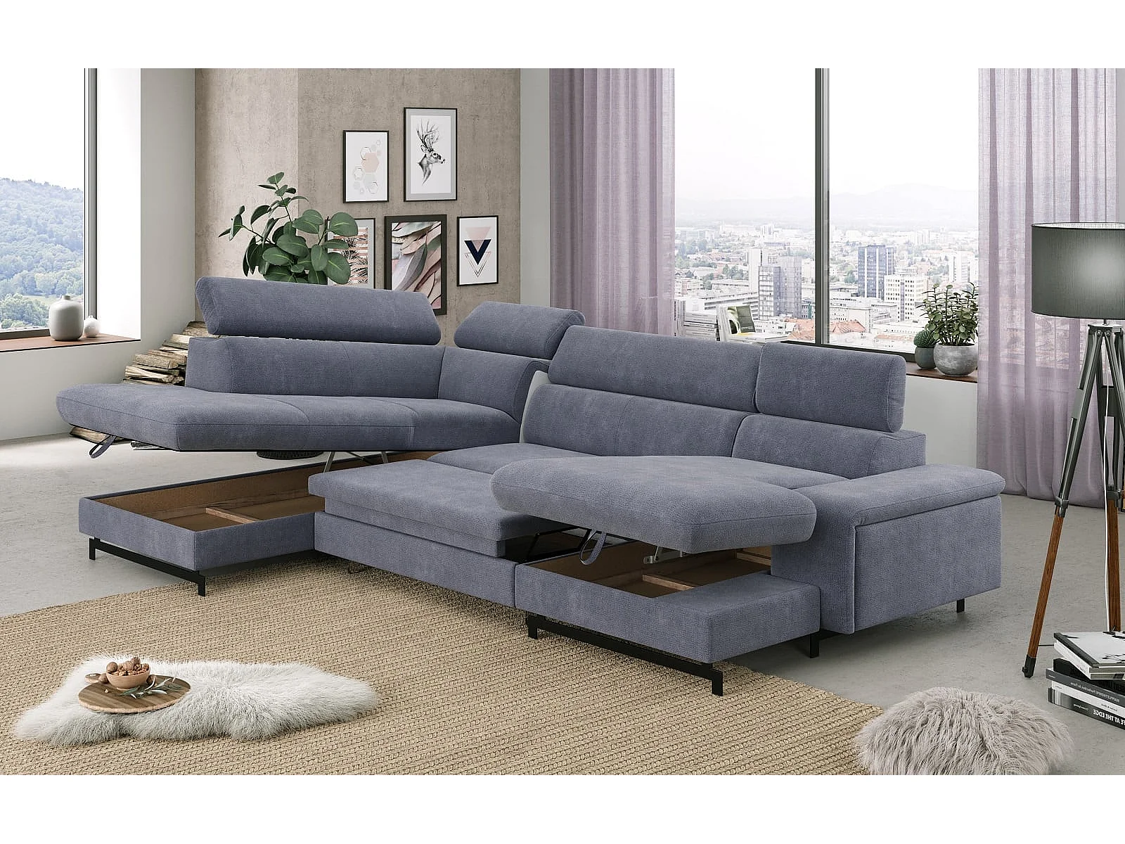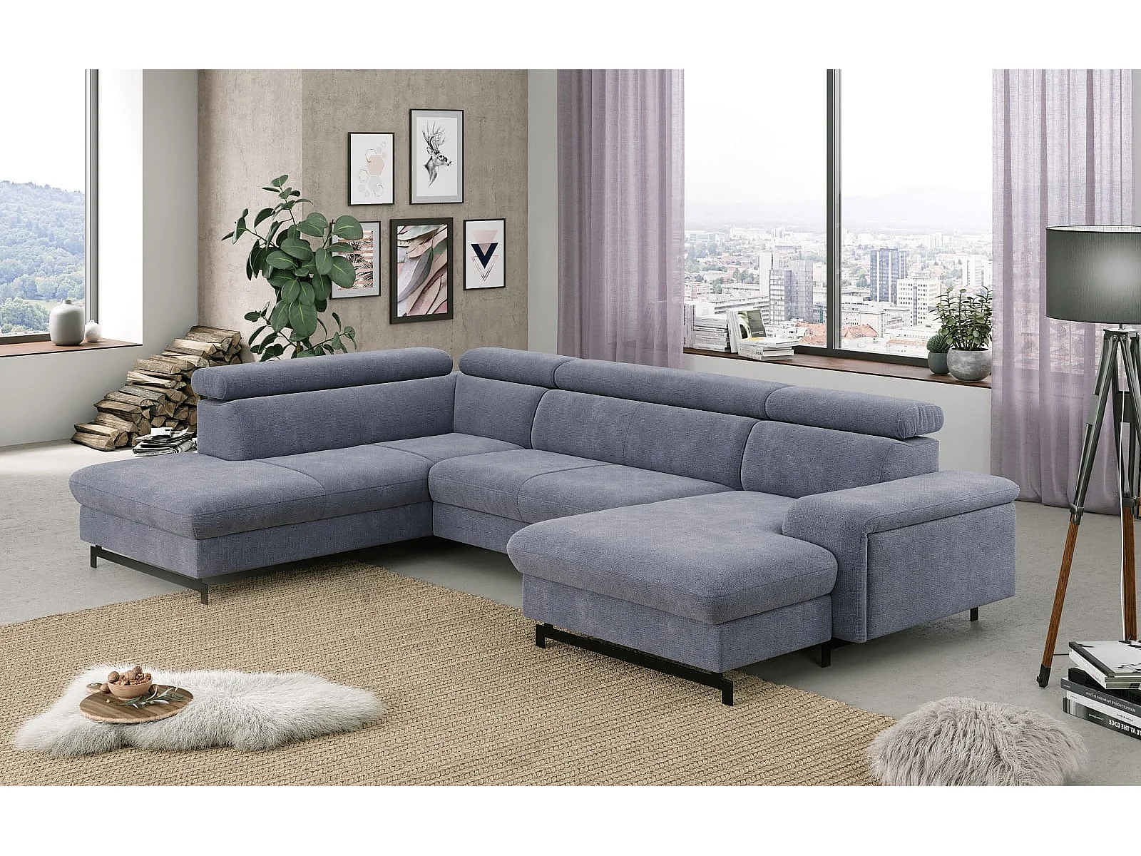 MYHOMELANDO Emma woonlandschap – U-vorm met slaapfunctie en opbergruimte, Orlando-stof