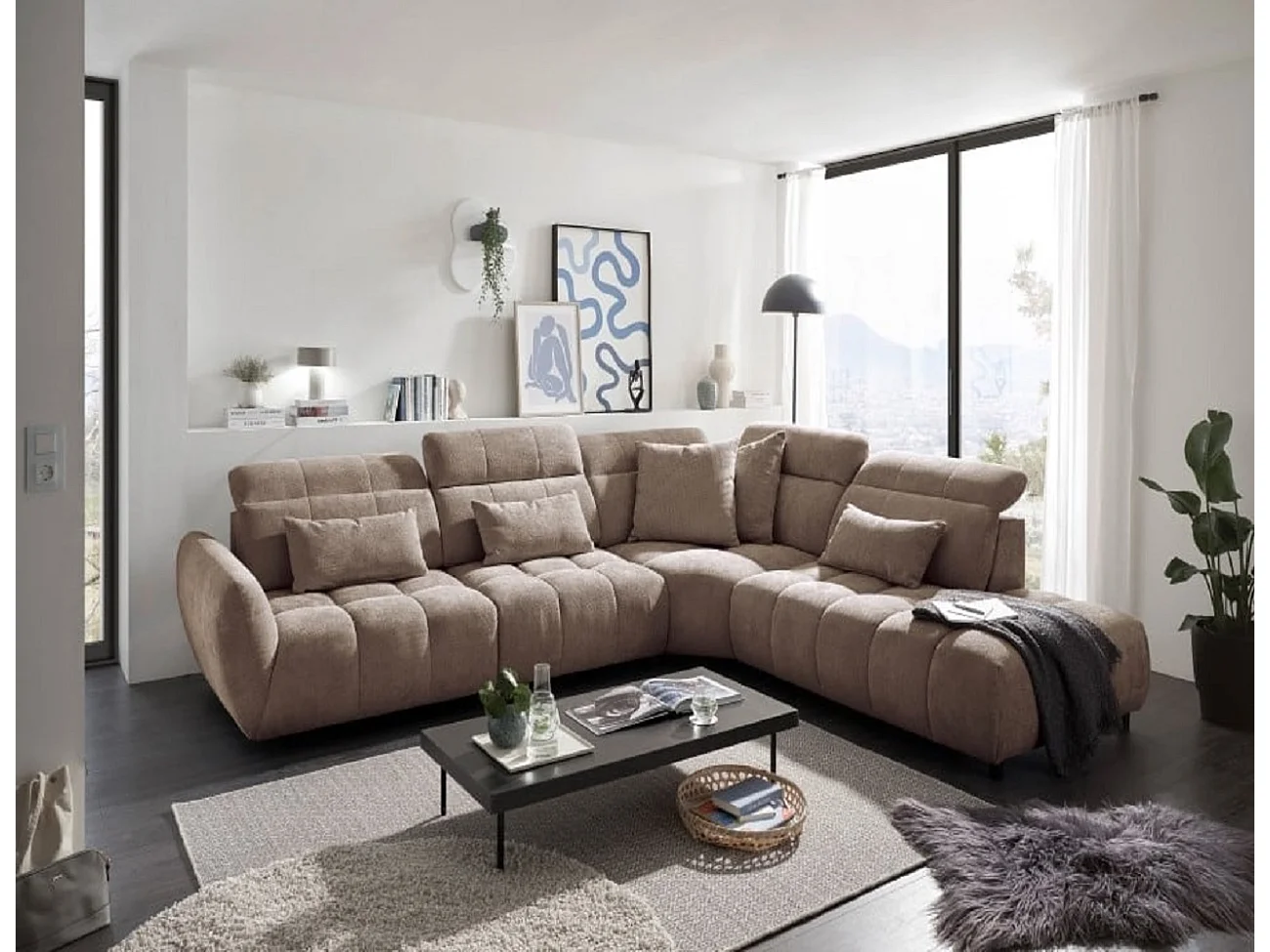 MYHOMELANDO Franklin hoekbank – L-vorm in microvezel-vlakweefsel, nosagvering en 5-voudig verstelbare hoofdsteunen